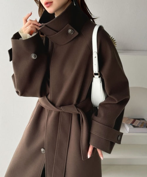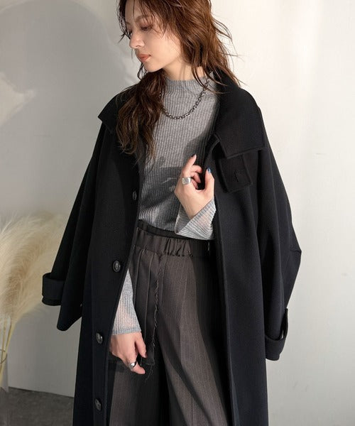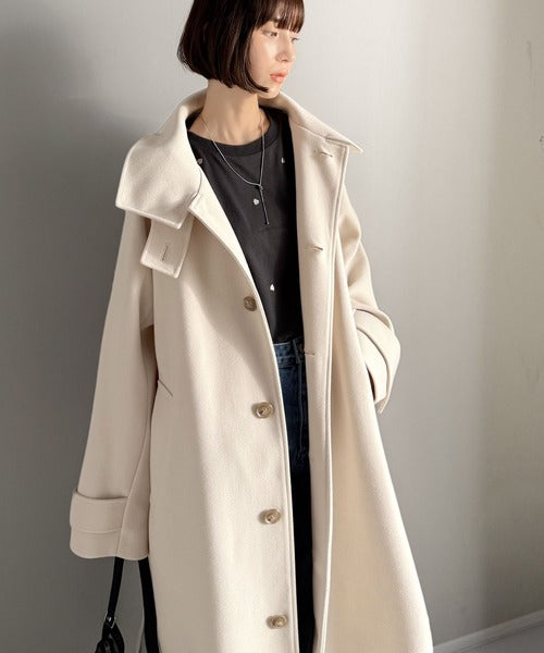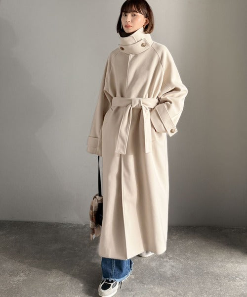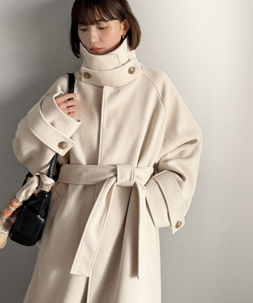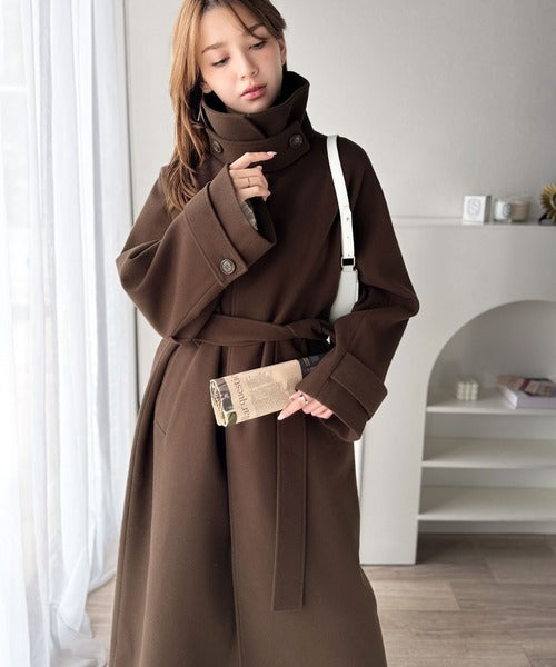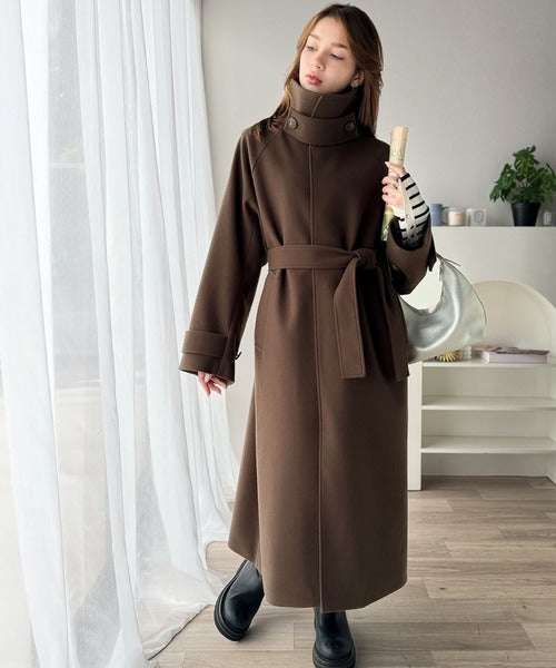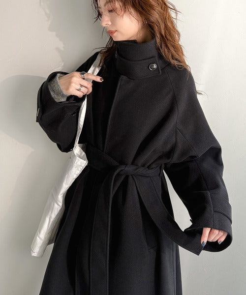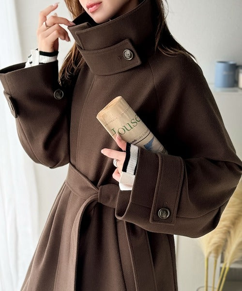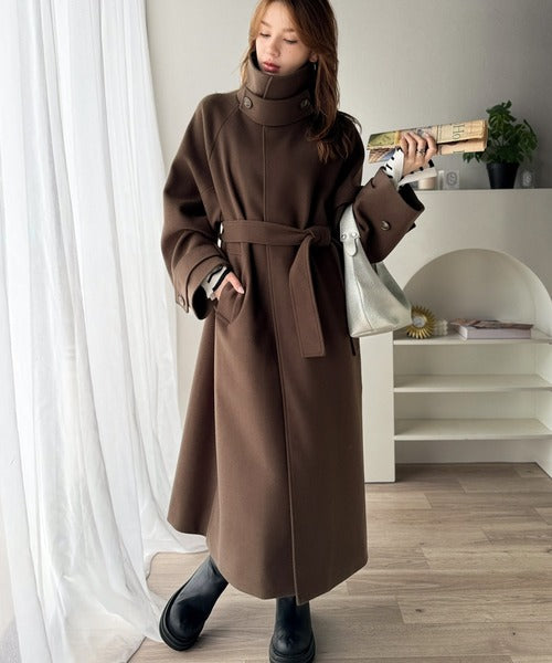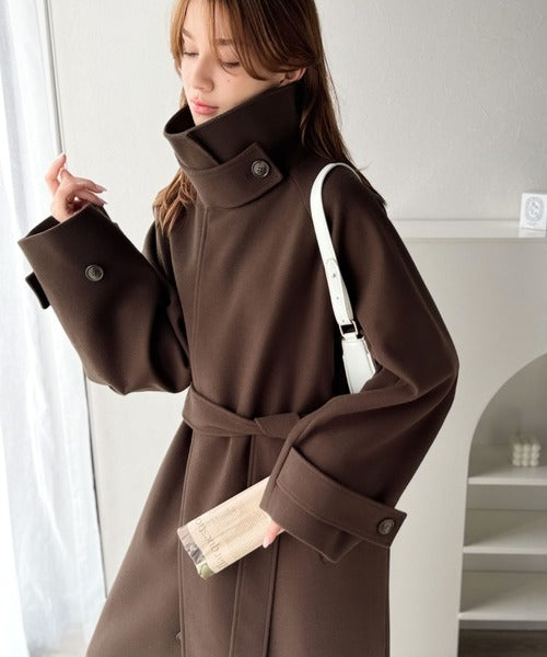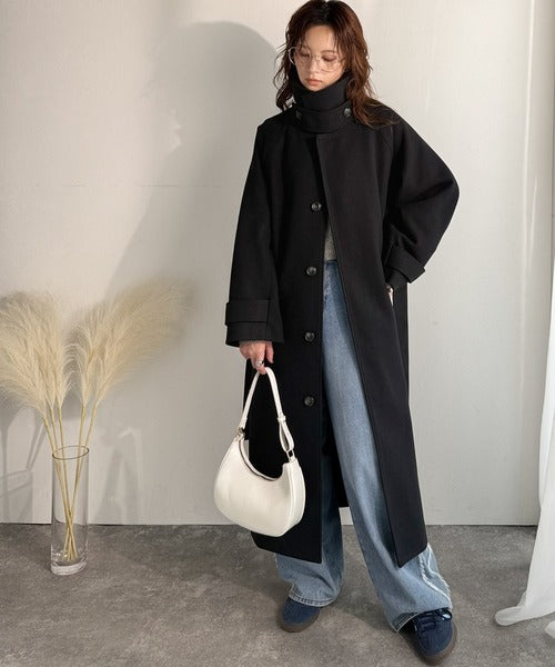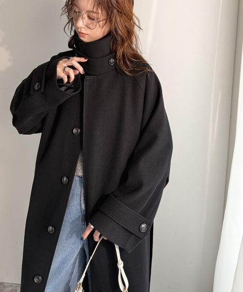 360度上品魅せ。衿2way比翼スタンドウール調ステンカラーコート(ロング丈) ce1070165
