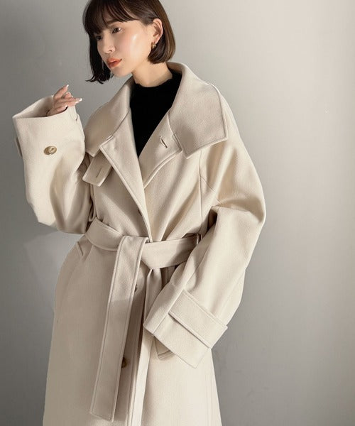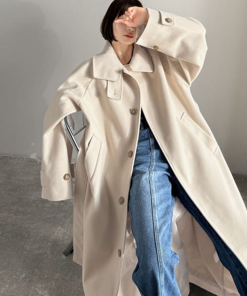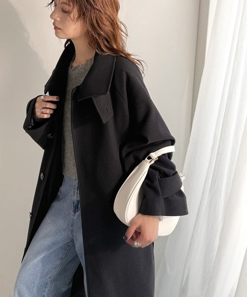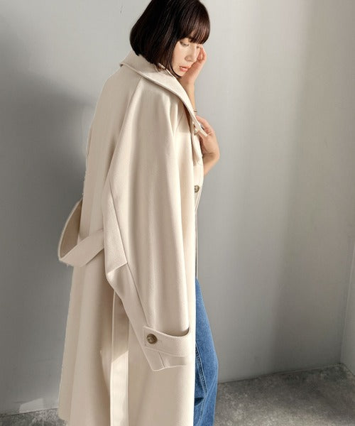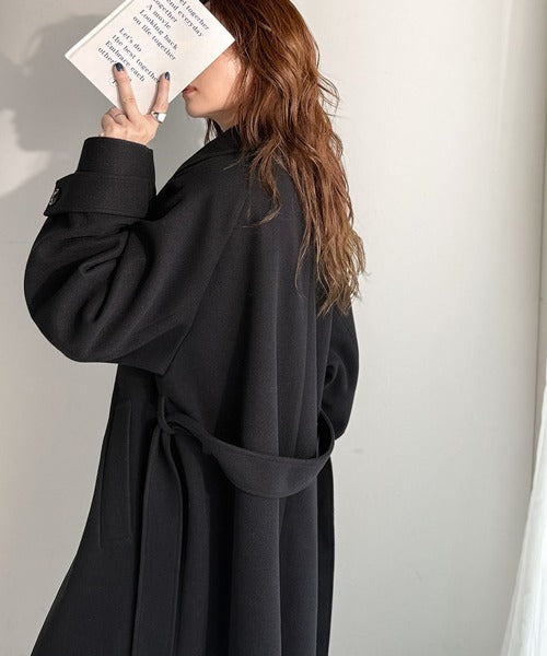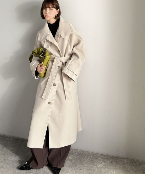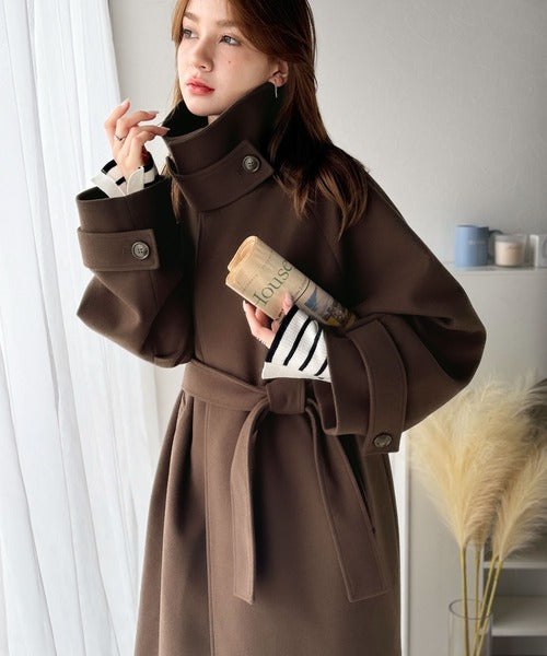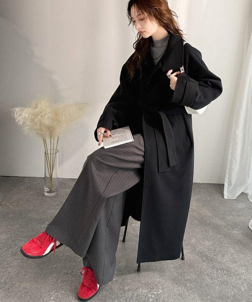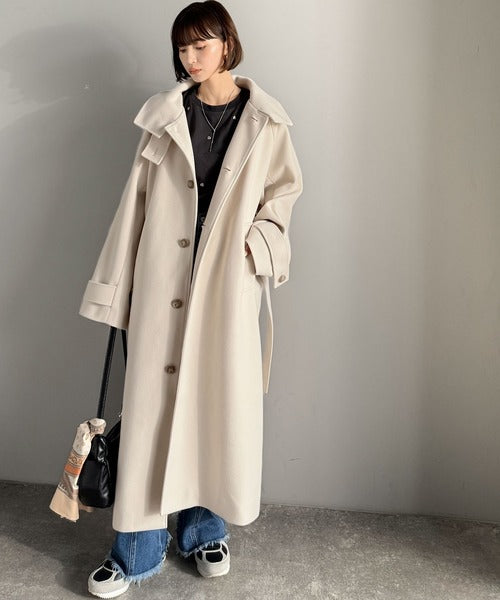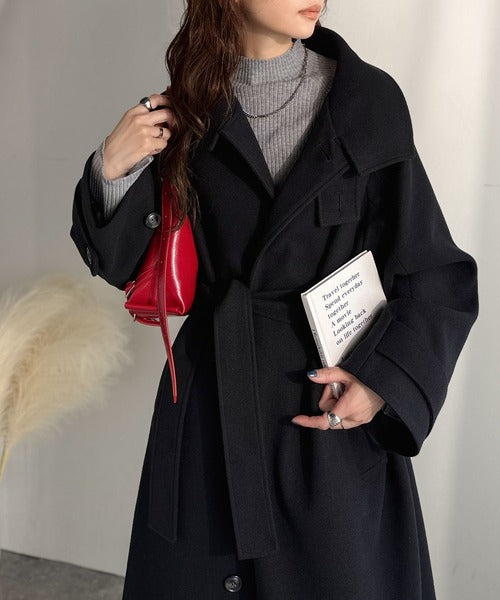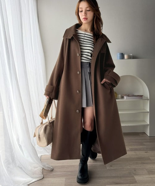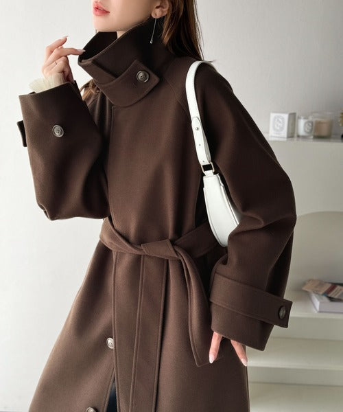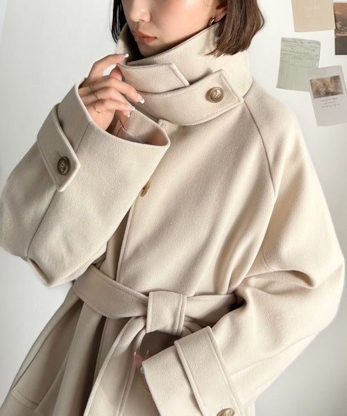 360度上品魅せ。衿2way比翼スタンドウール調ステンカラーコート(ロング丈) ce1070165
