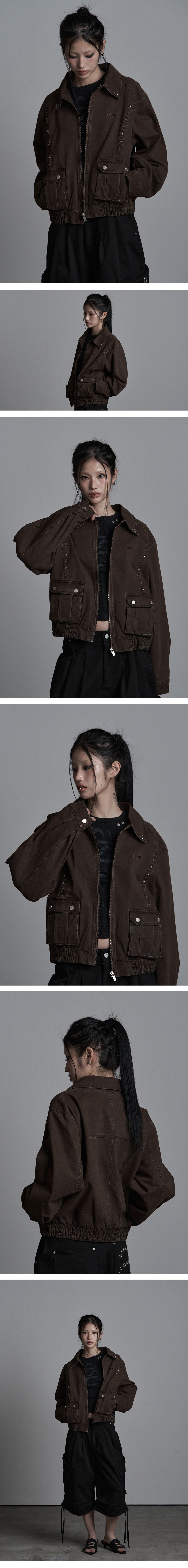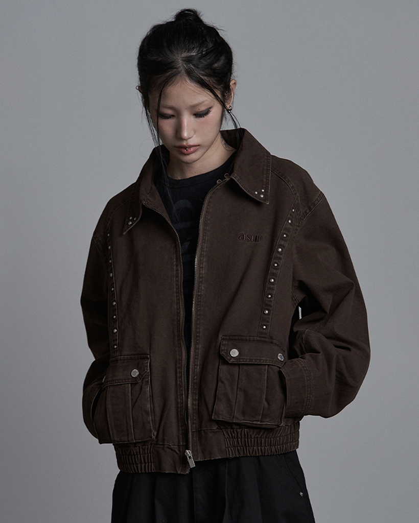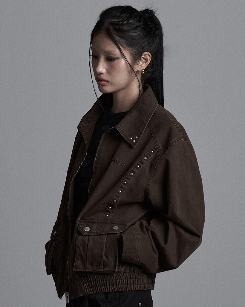 BUTTON WASHED BLOUSON BROWN