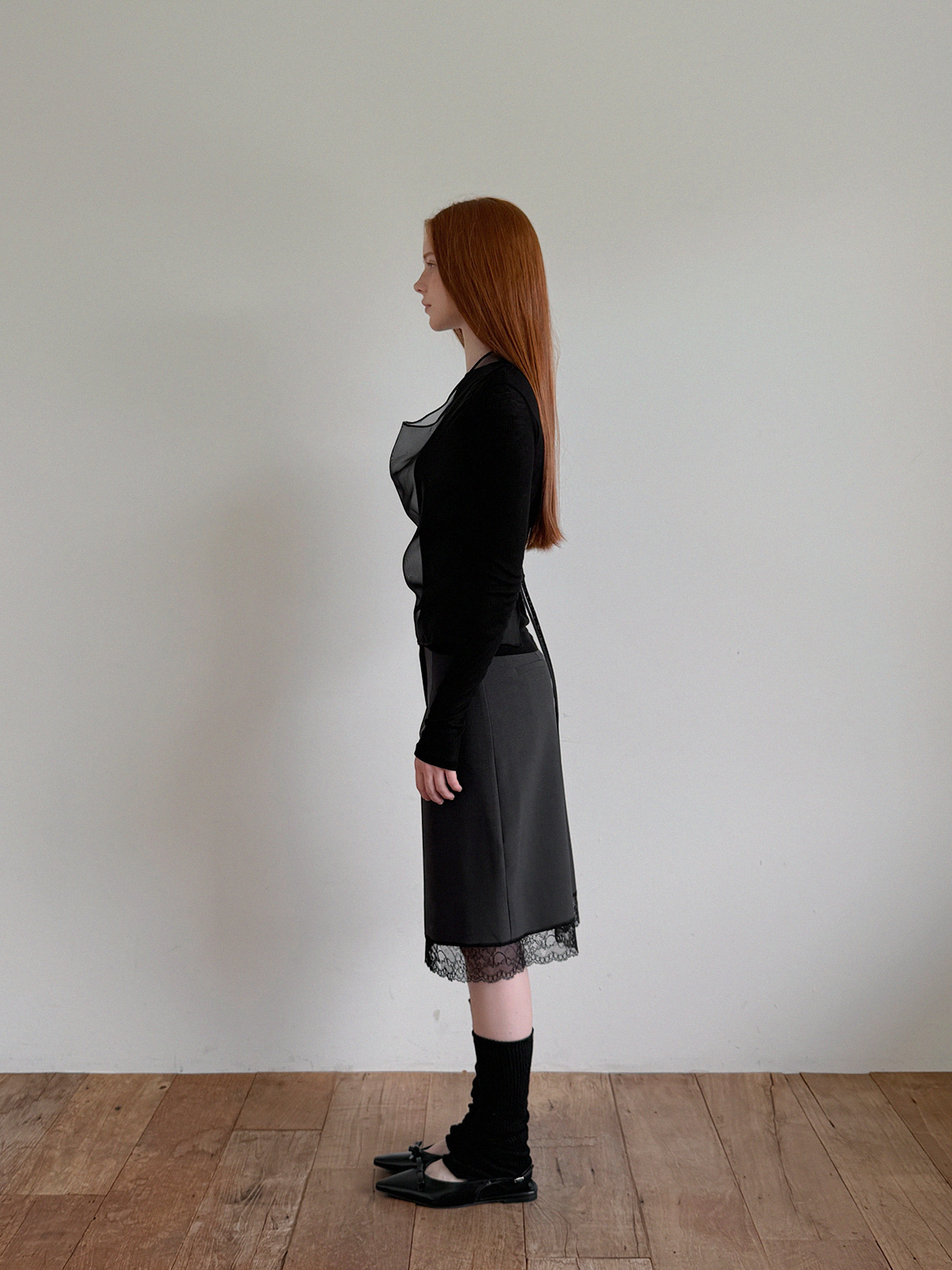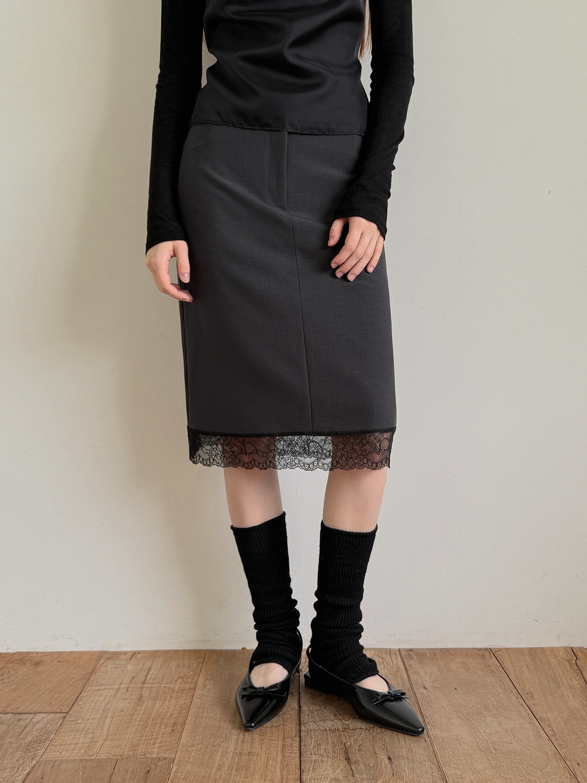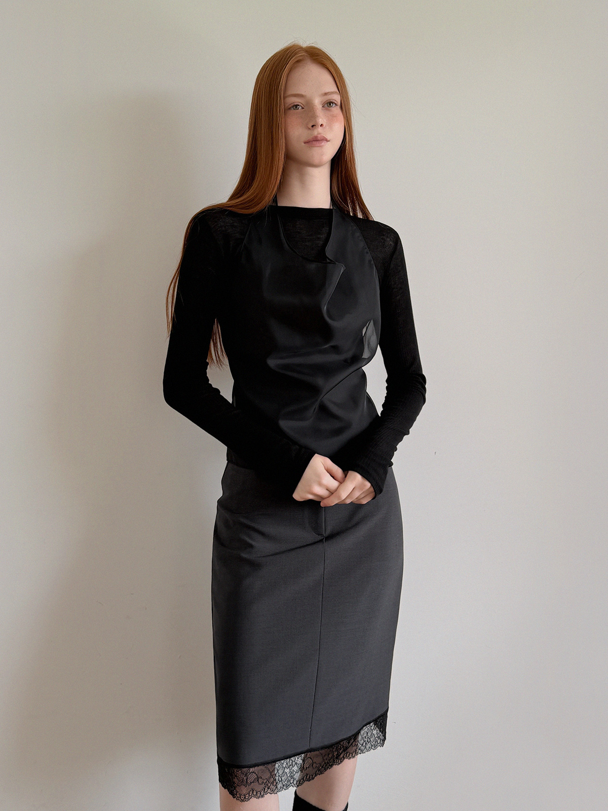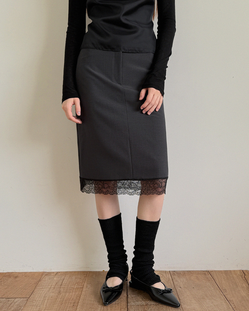 Rozn Layered Lace Midi Skirt