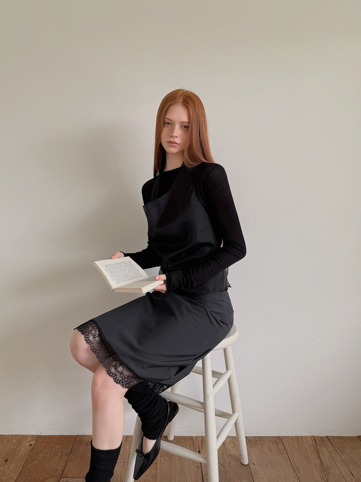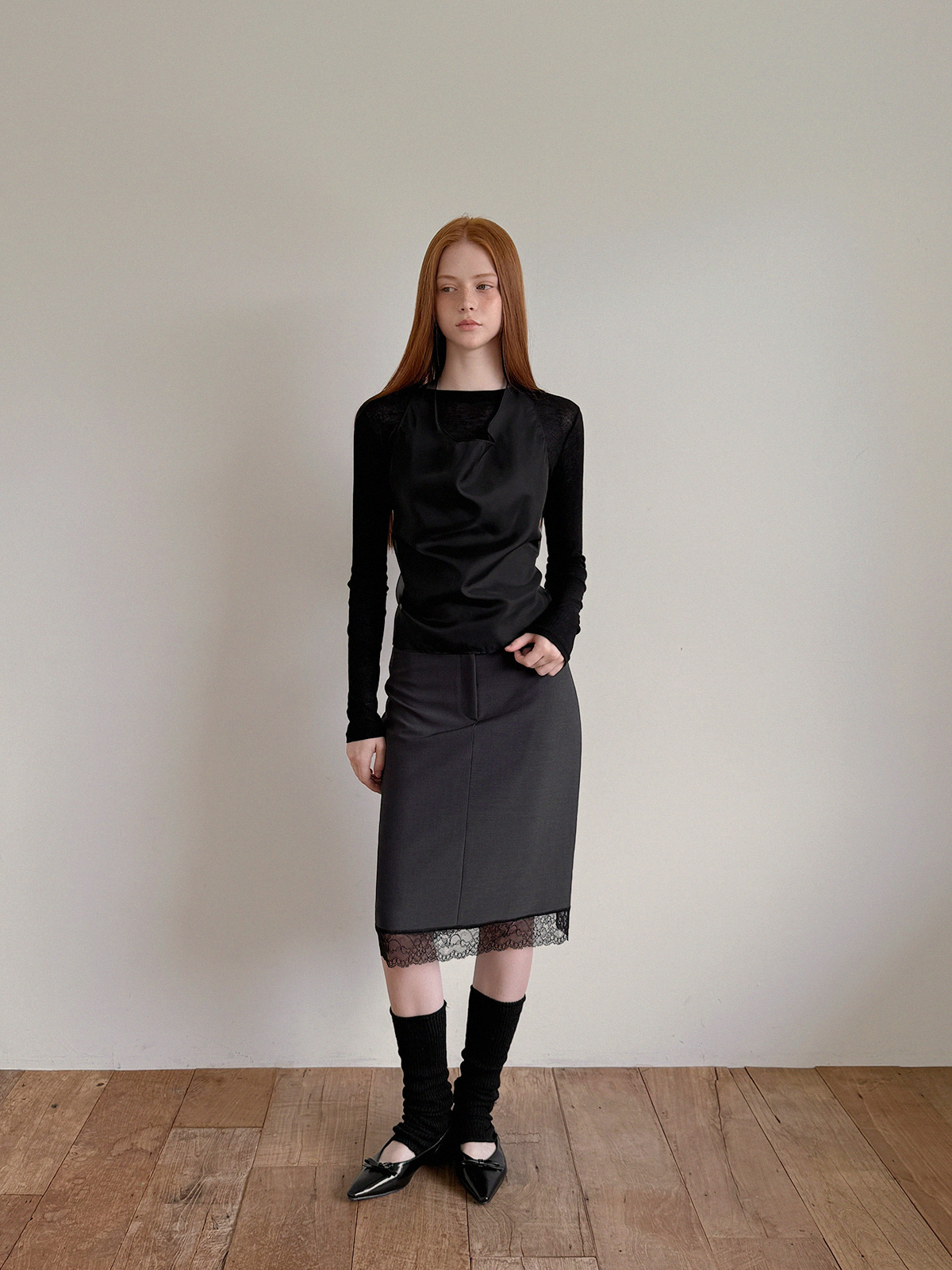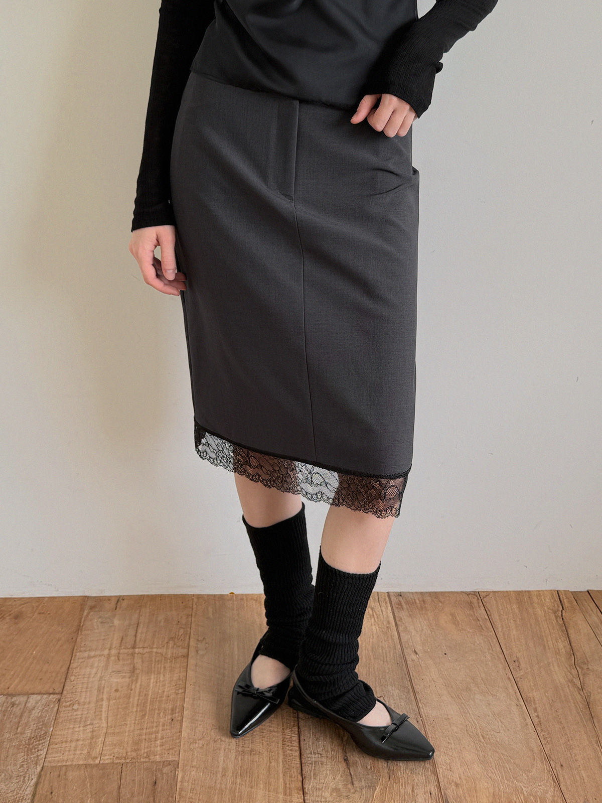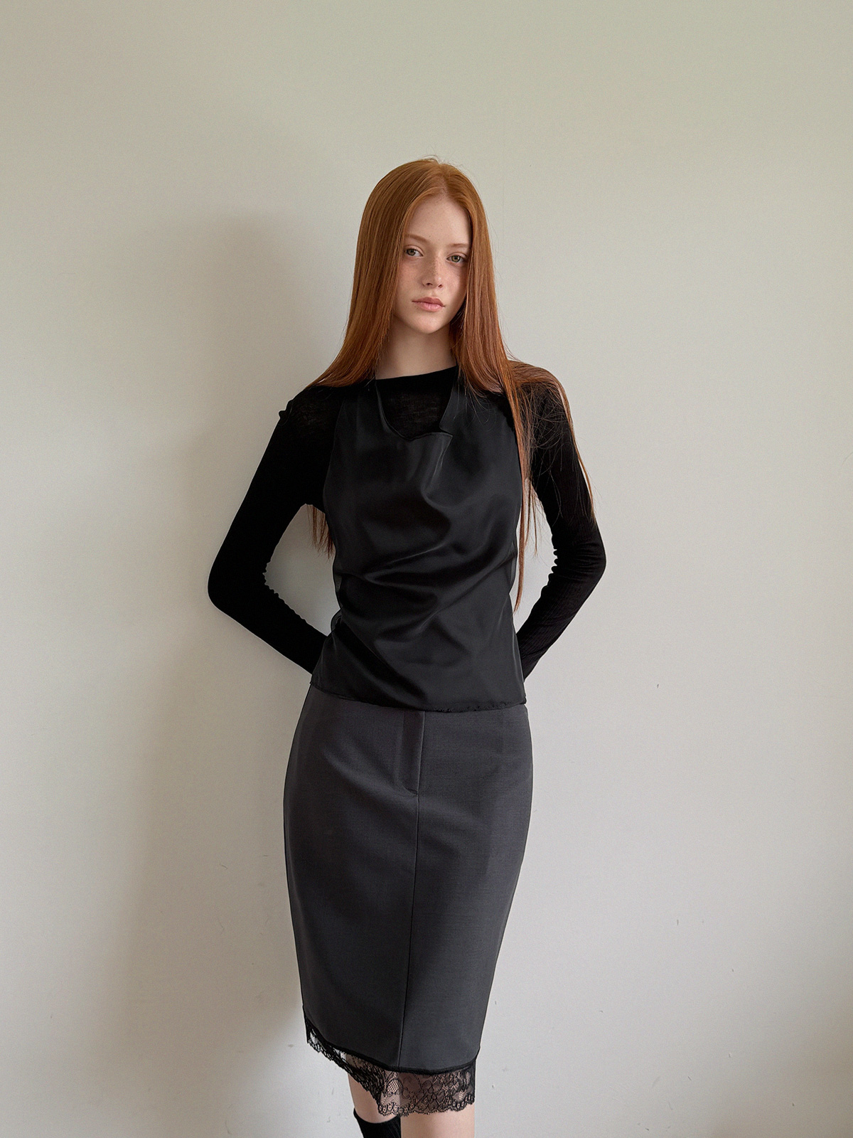 Rozn Layered Lace Midi Skirt