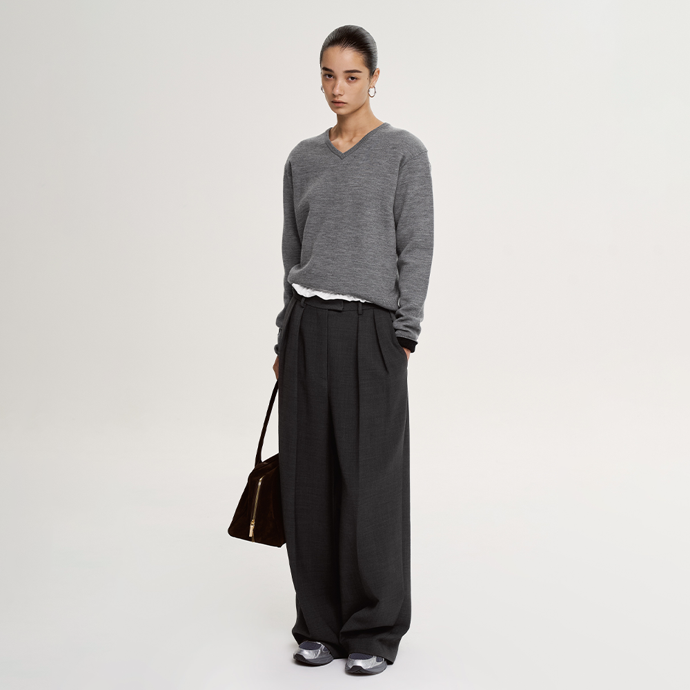 Merino Wool V-neck Sweater - Gray