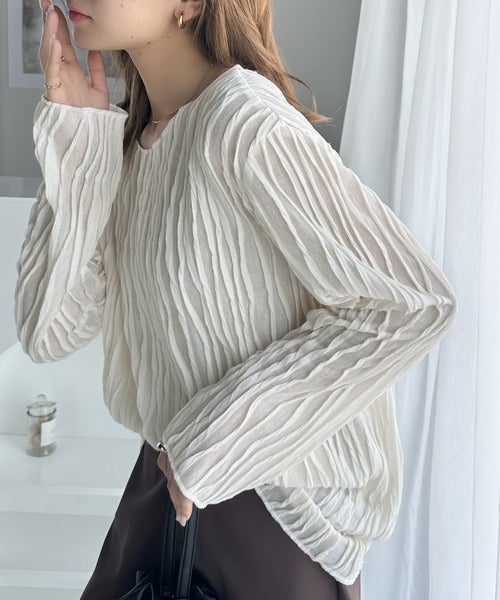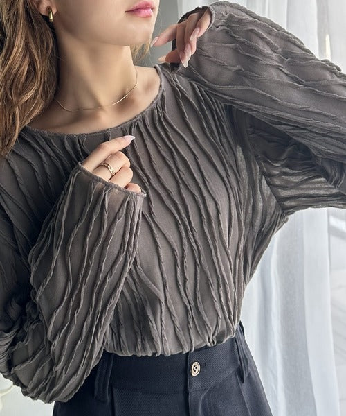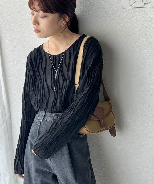 凹凸感が目を惹く。3Dウェーブカットソー ce1240019