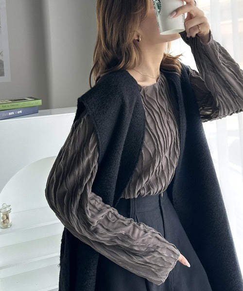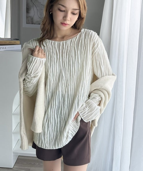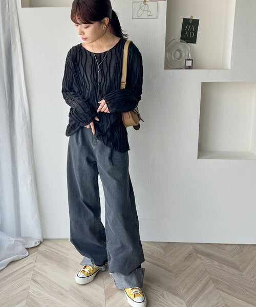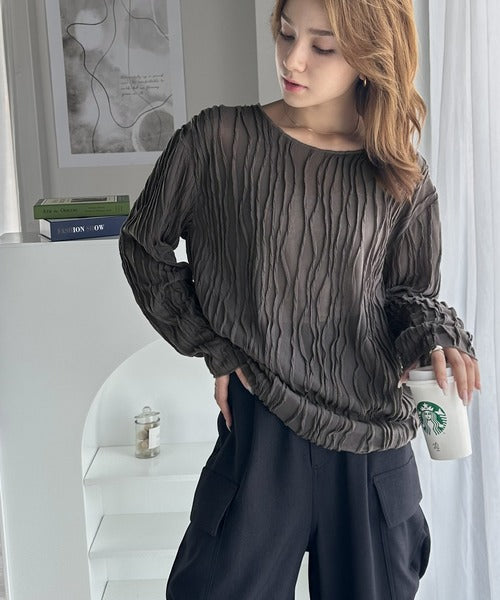 3Dウェーブのシワ加工を施したとろみのあるカットソー素材です。