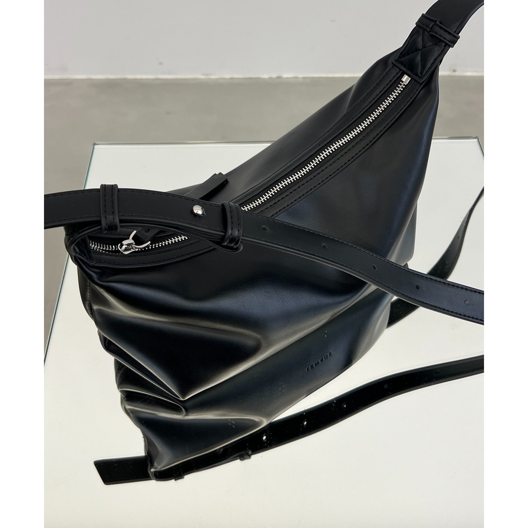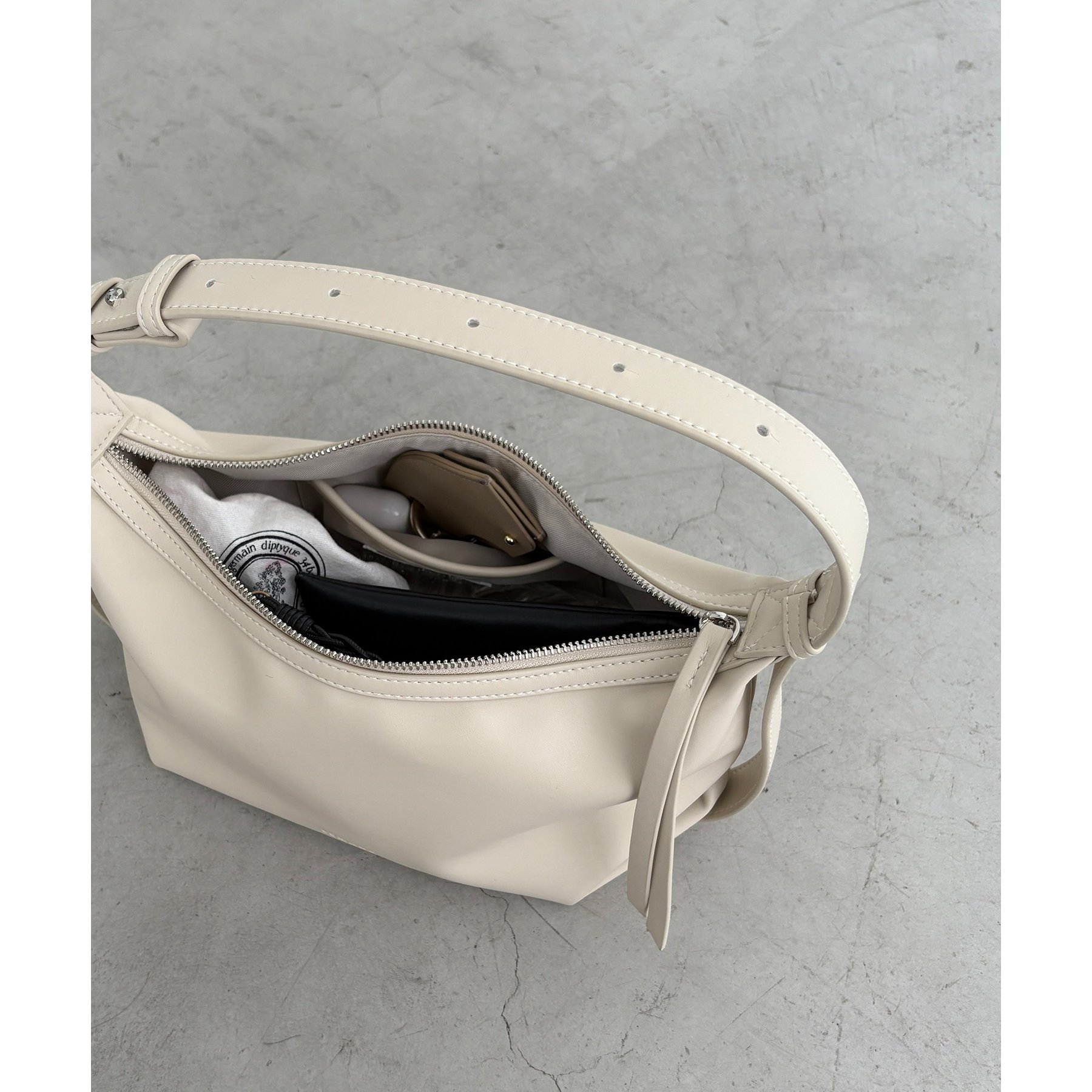 ・横長シルエットで500mlのペットボトルや長財布も収納可能