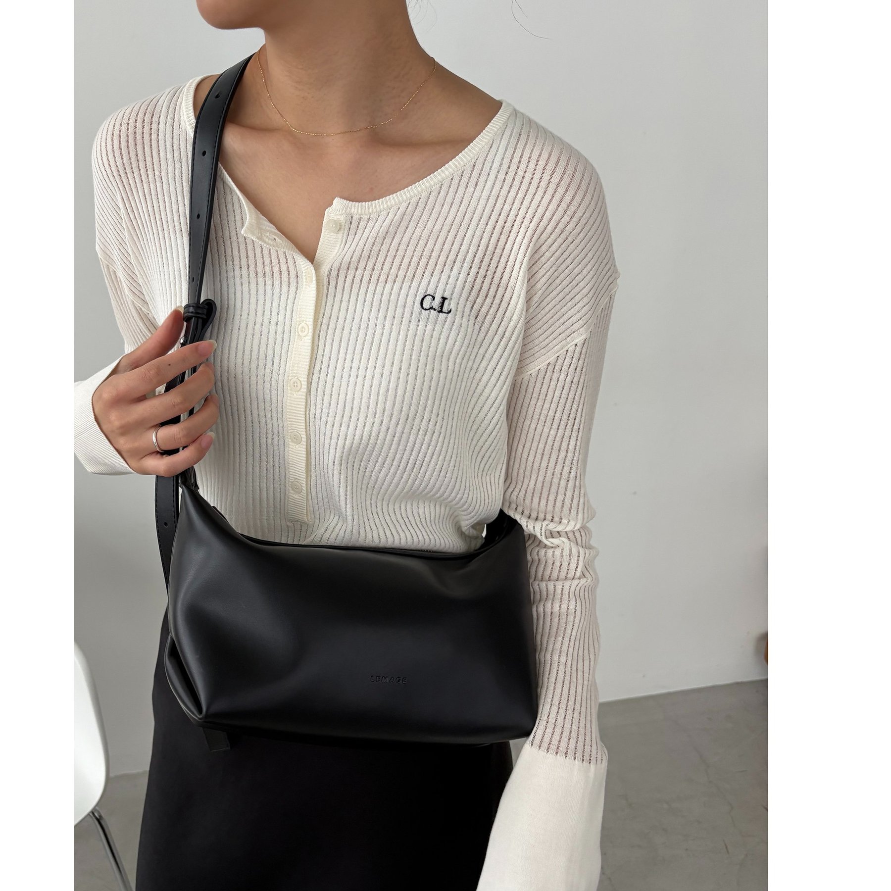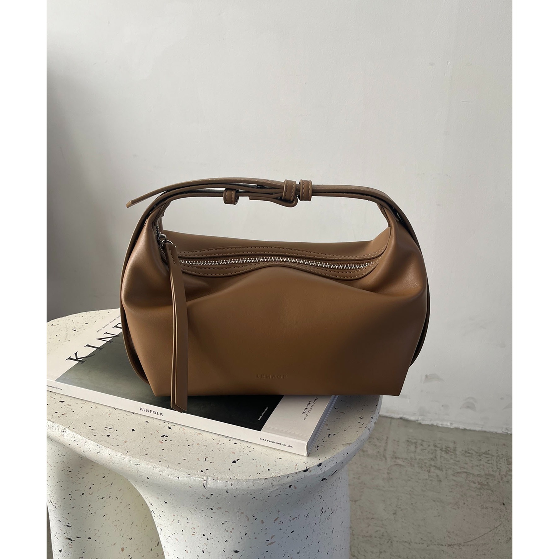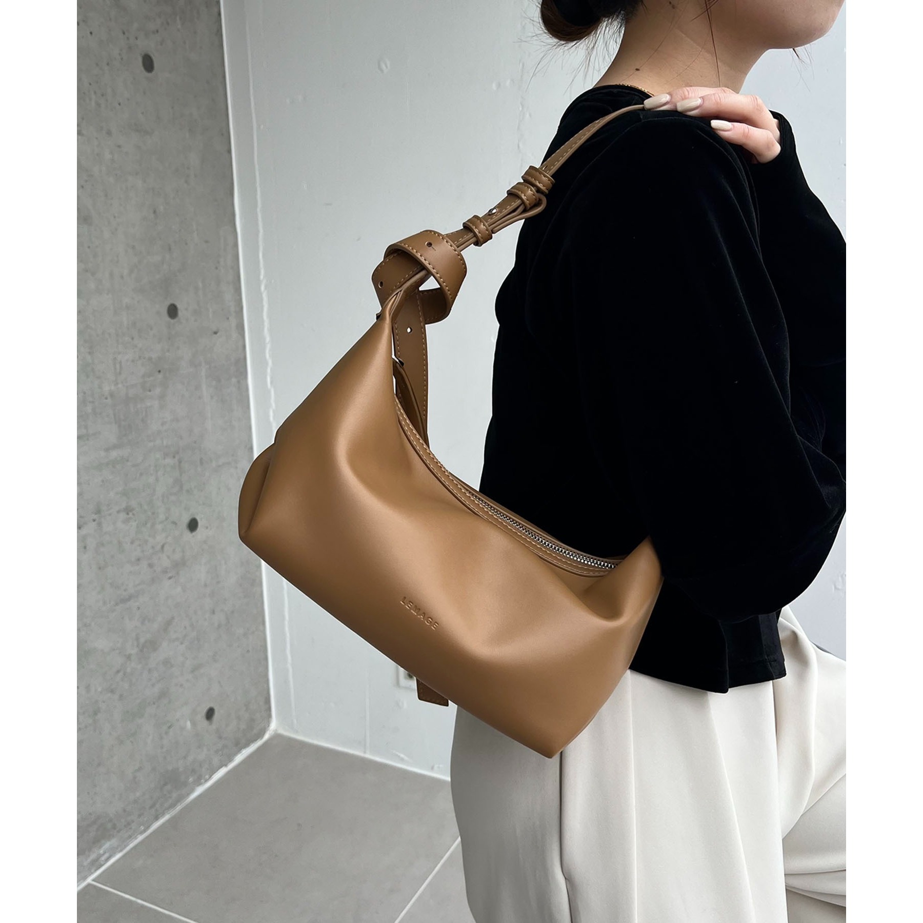 ・LEMAGEの型押しロゴがさりげないポイント