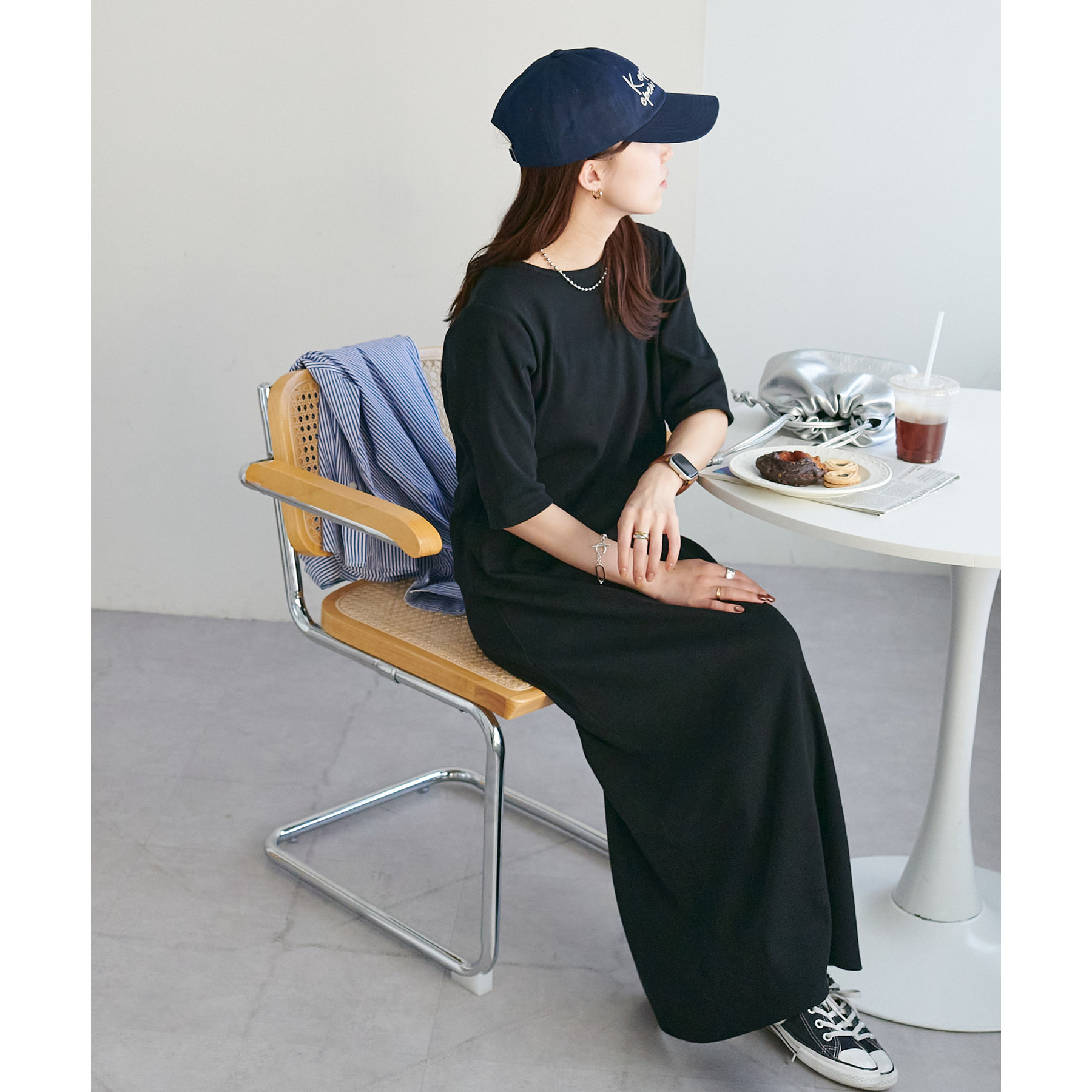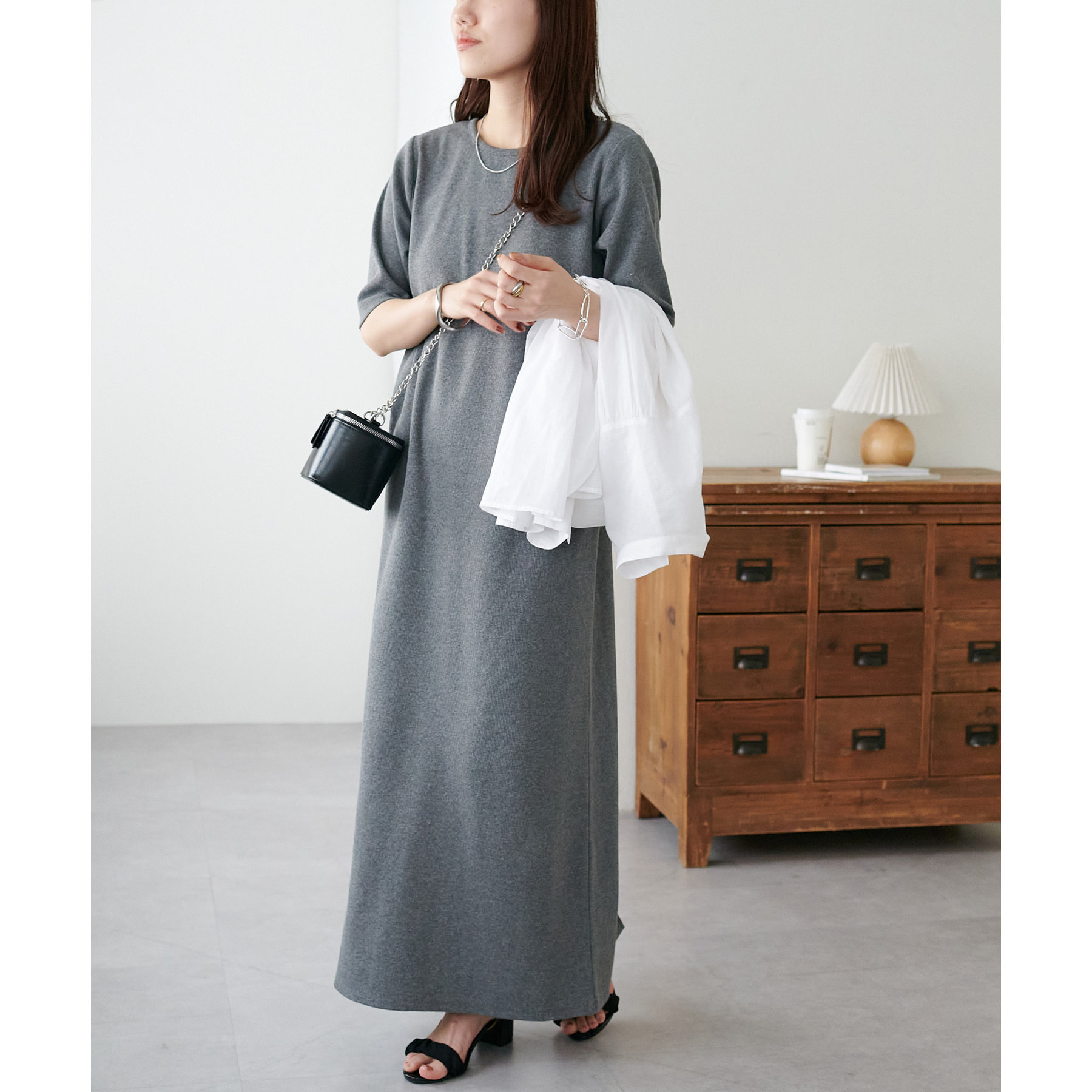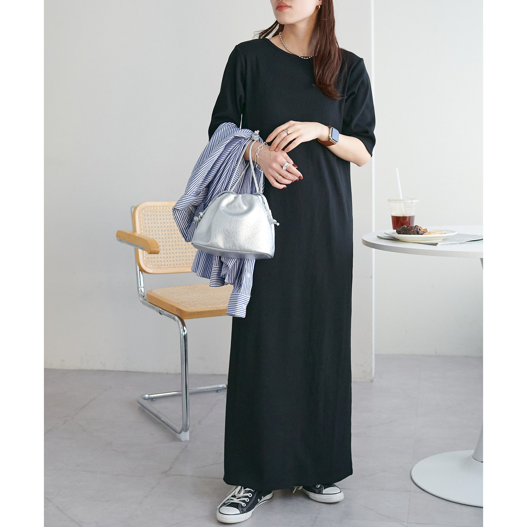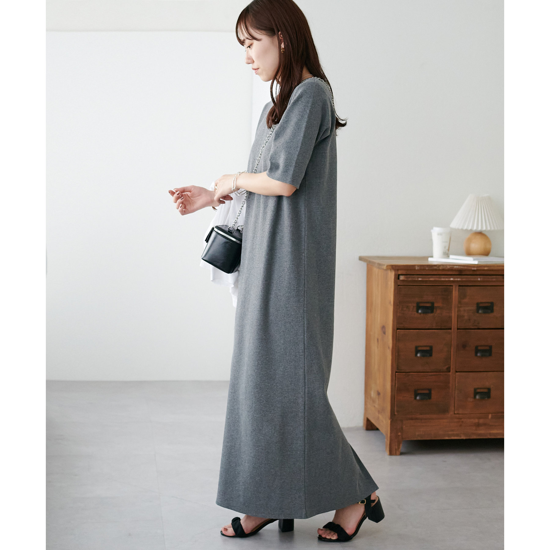 程よくフィットしつつ、ボディラインを拾いすぎない絶妙なシルエットのロングワンピース。