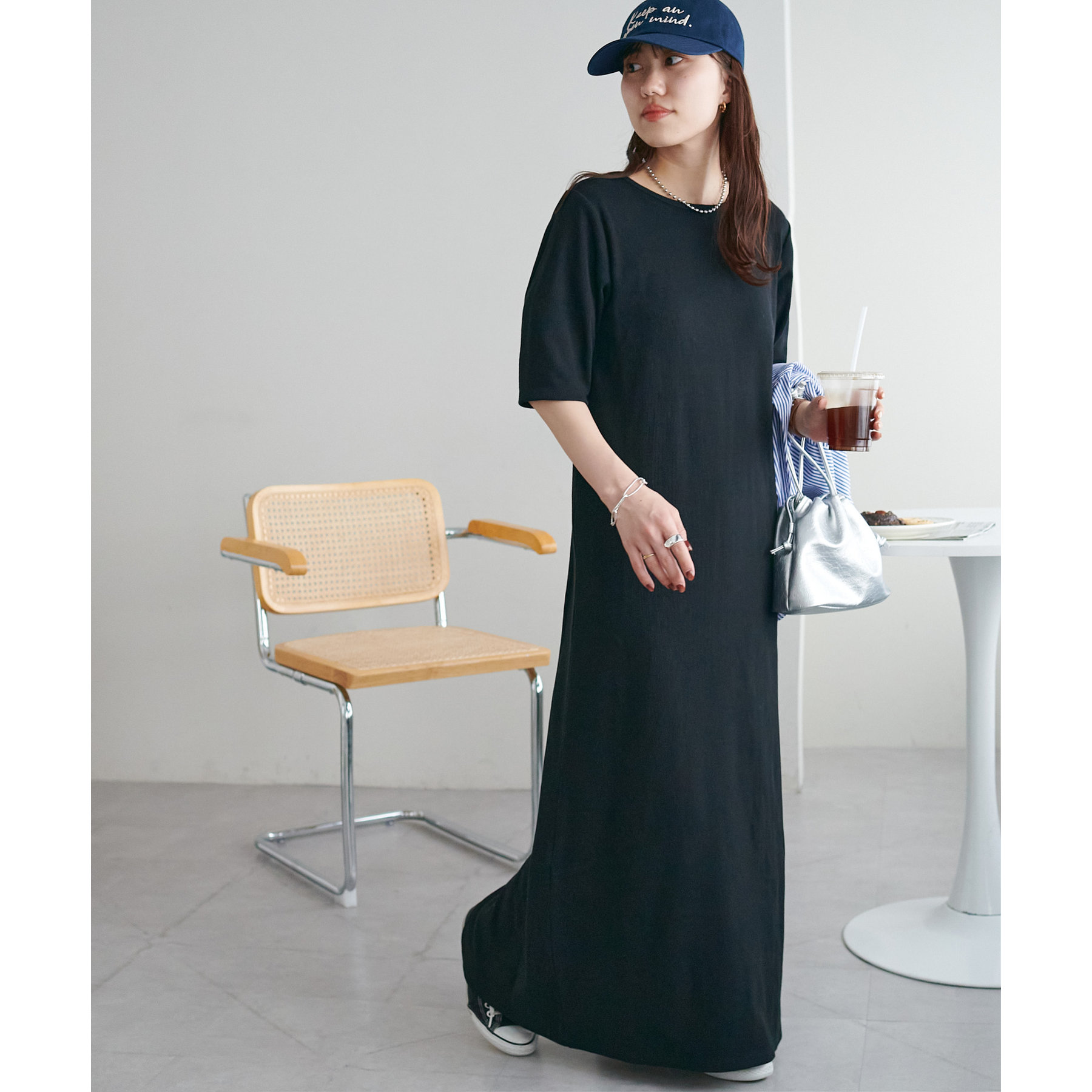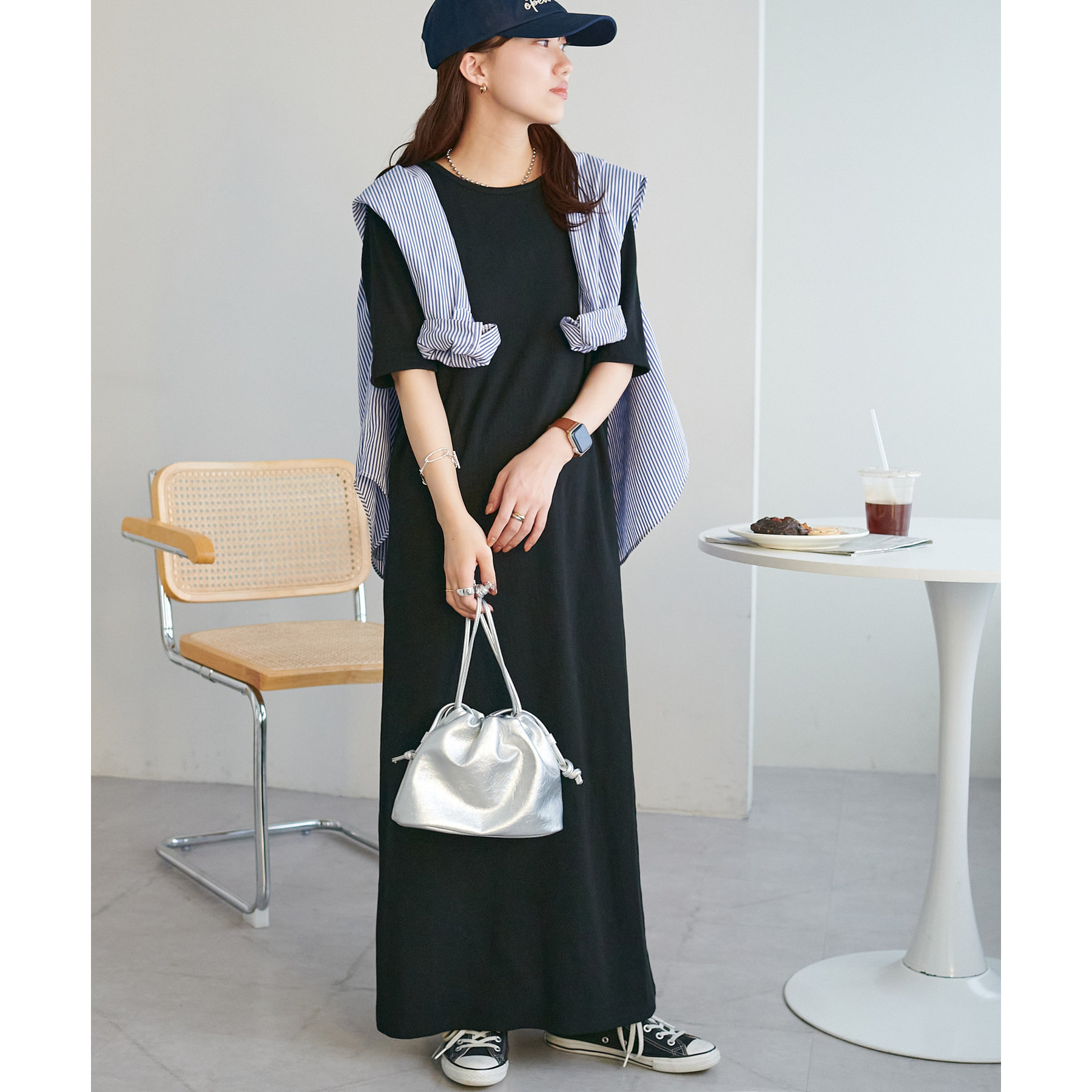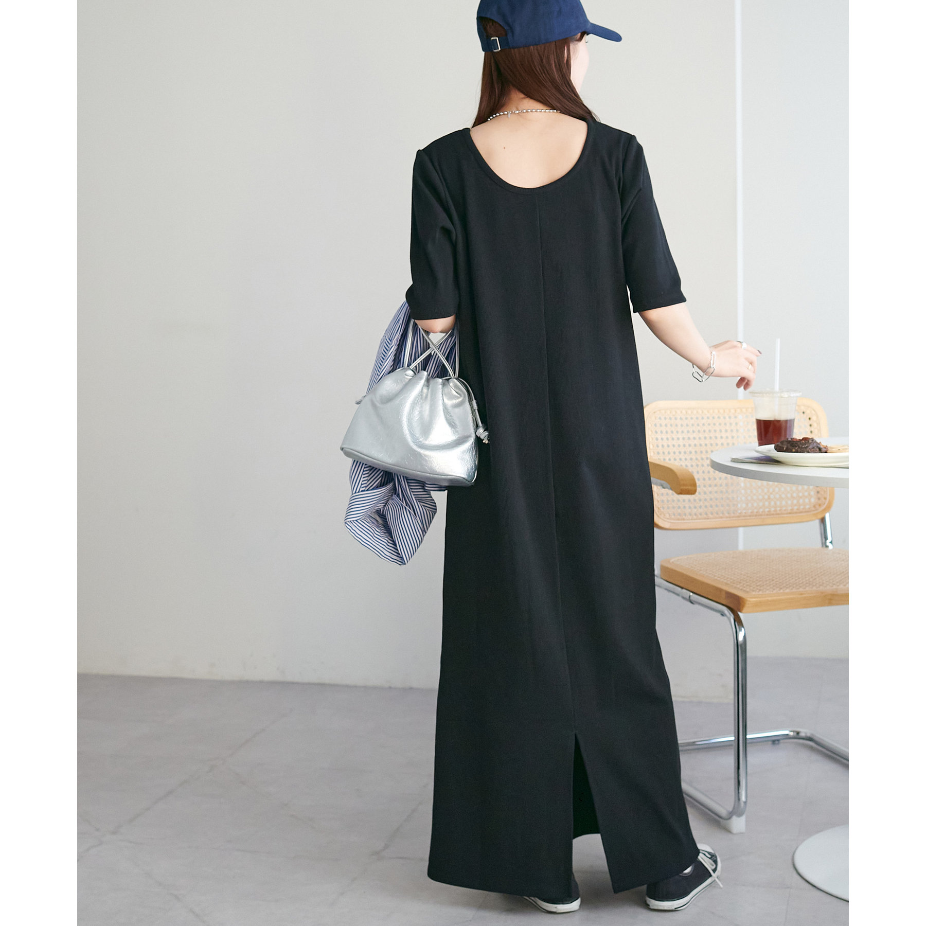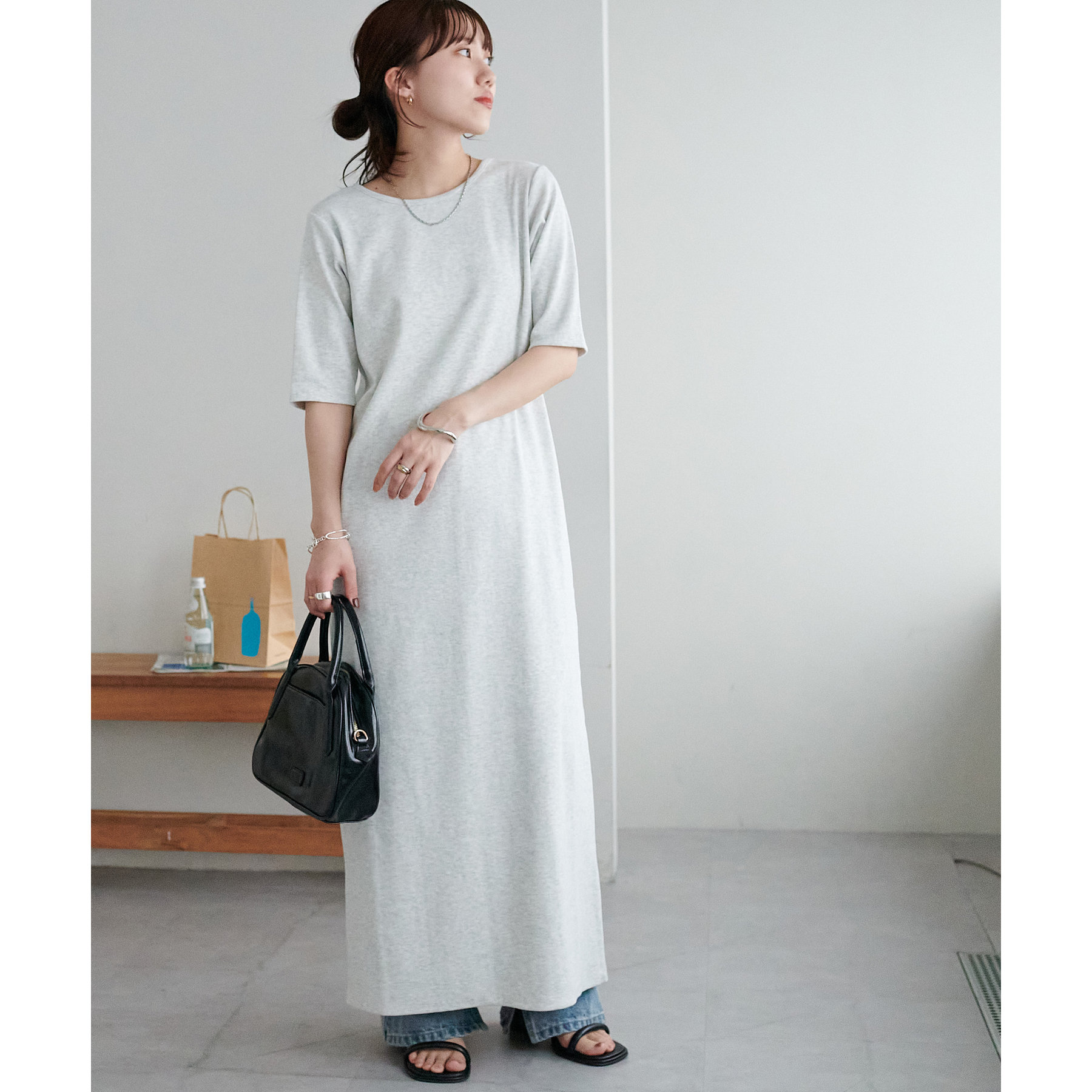 程よくフィットしつつ、ボディラインを拾いすぎない絶妙なシルエットのロングワンピース。