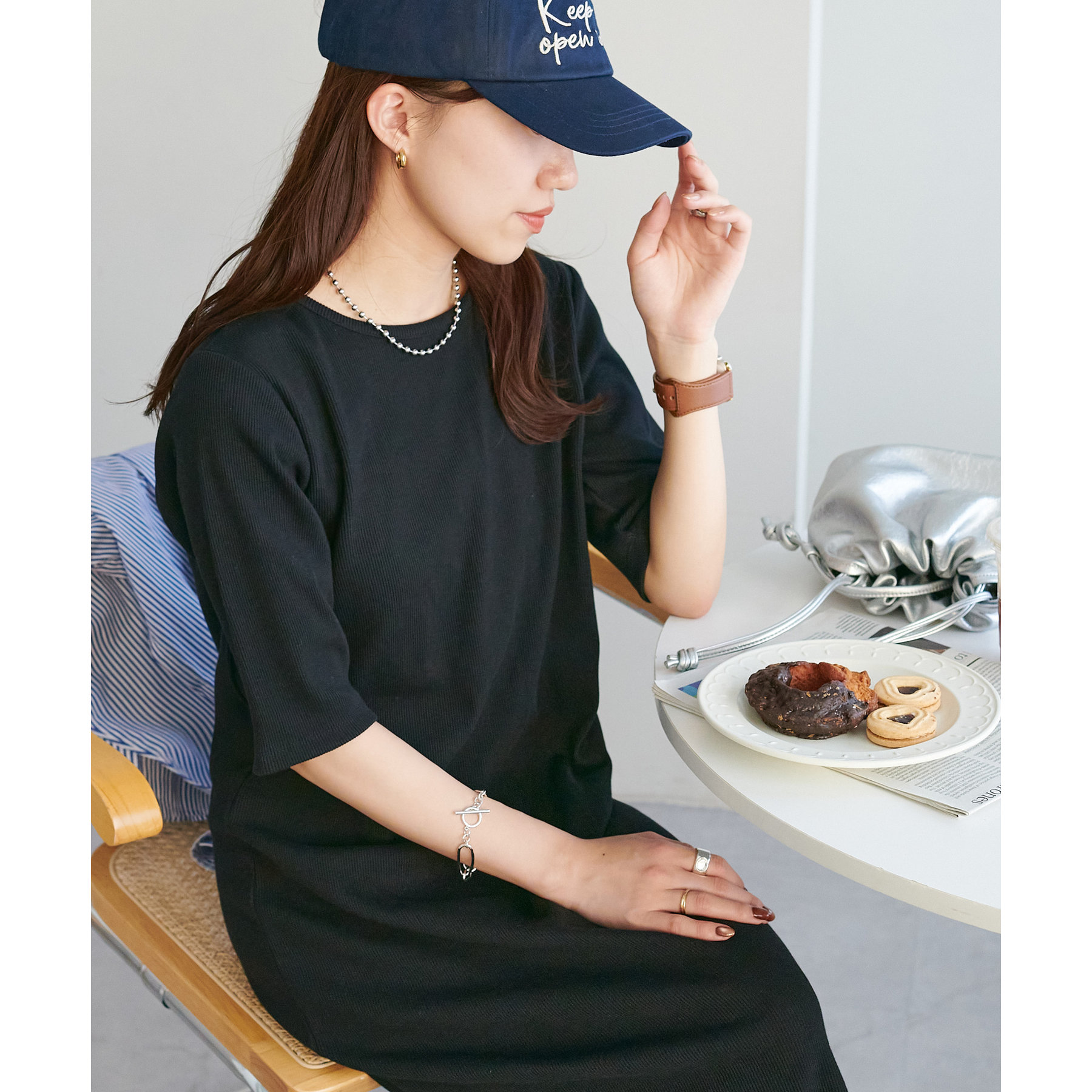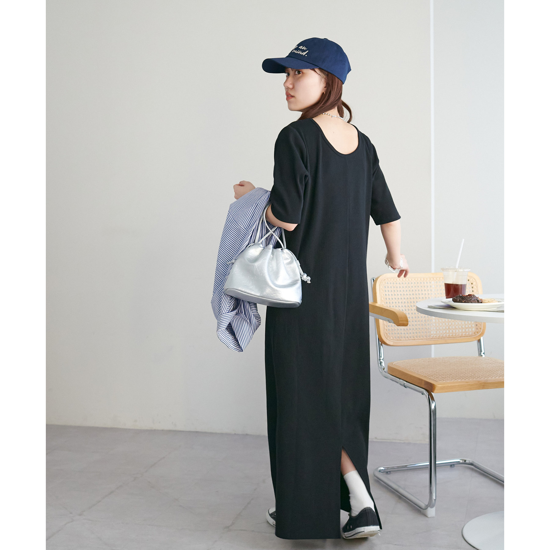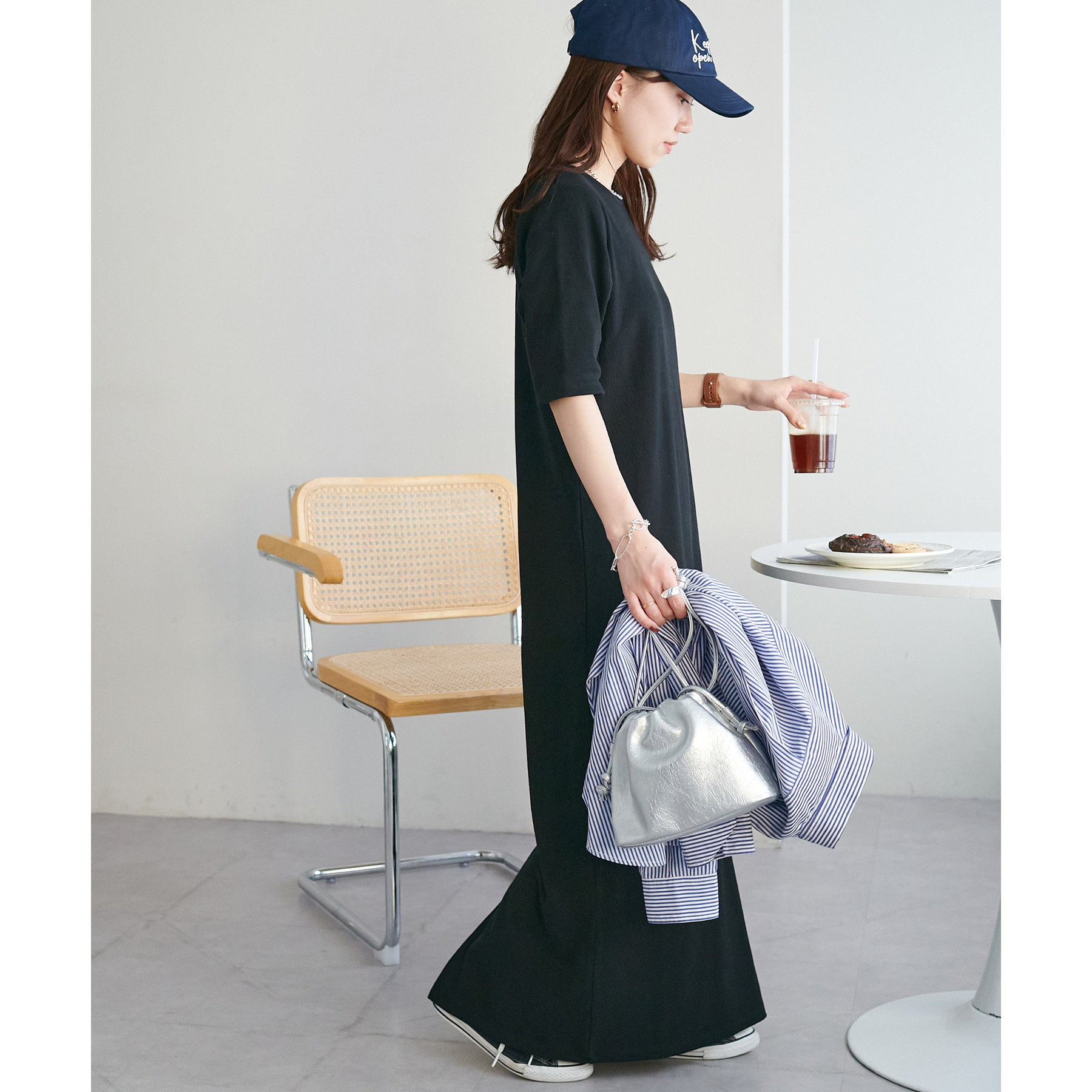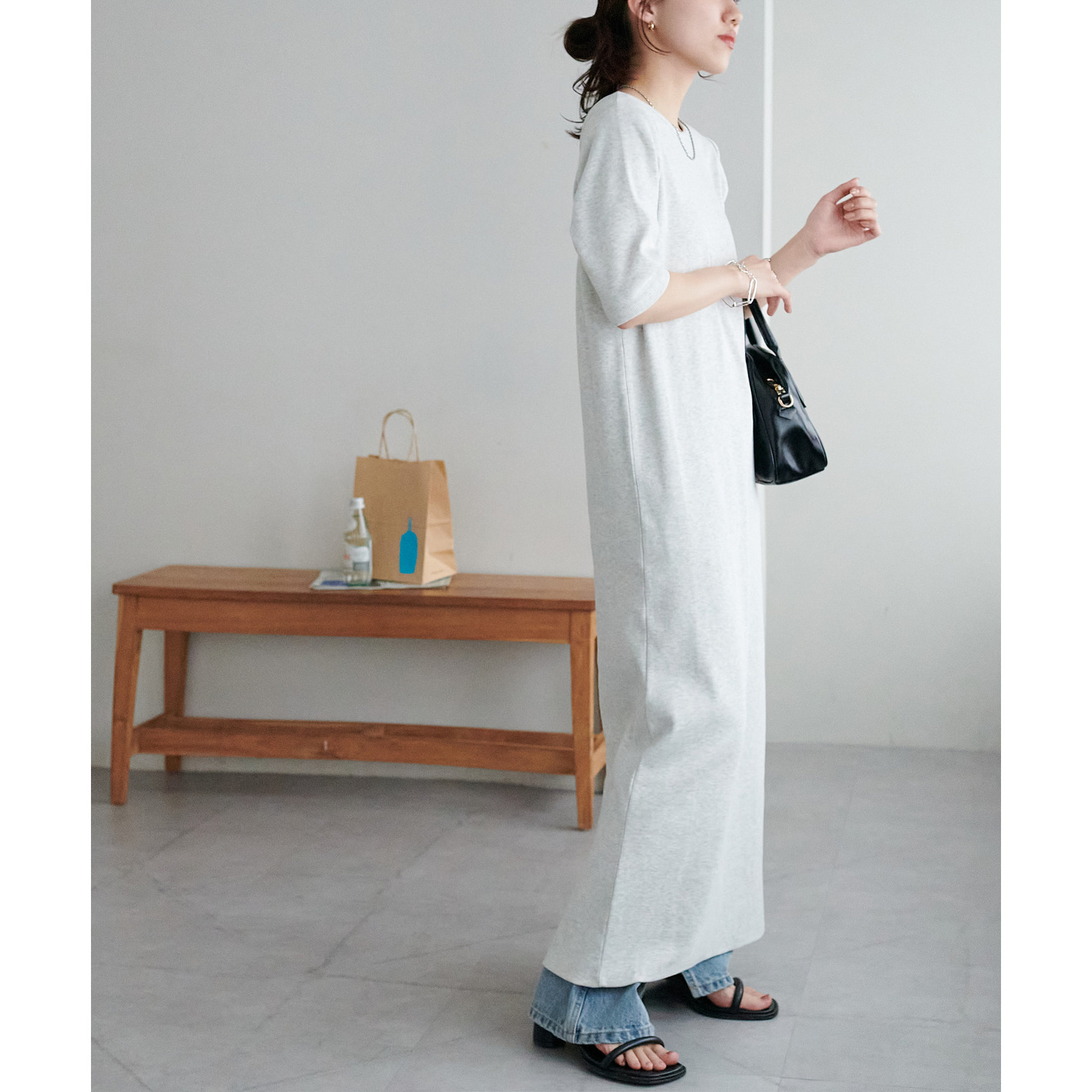 程よくフィットしつつ、ボディラインを拾いすぎない絶妙なシルエットのロングワンピース。