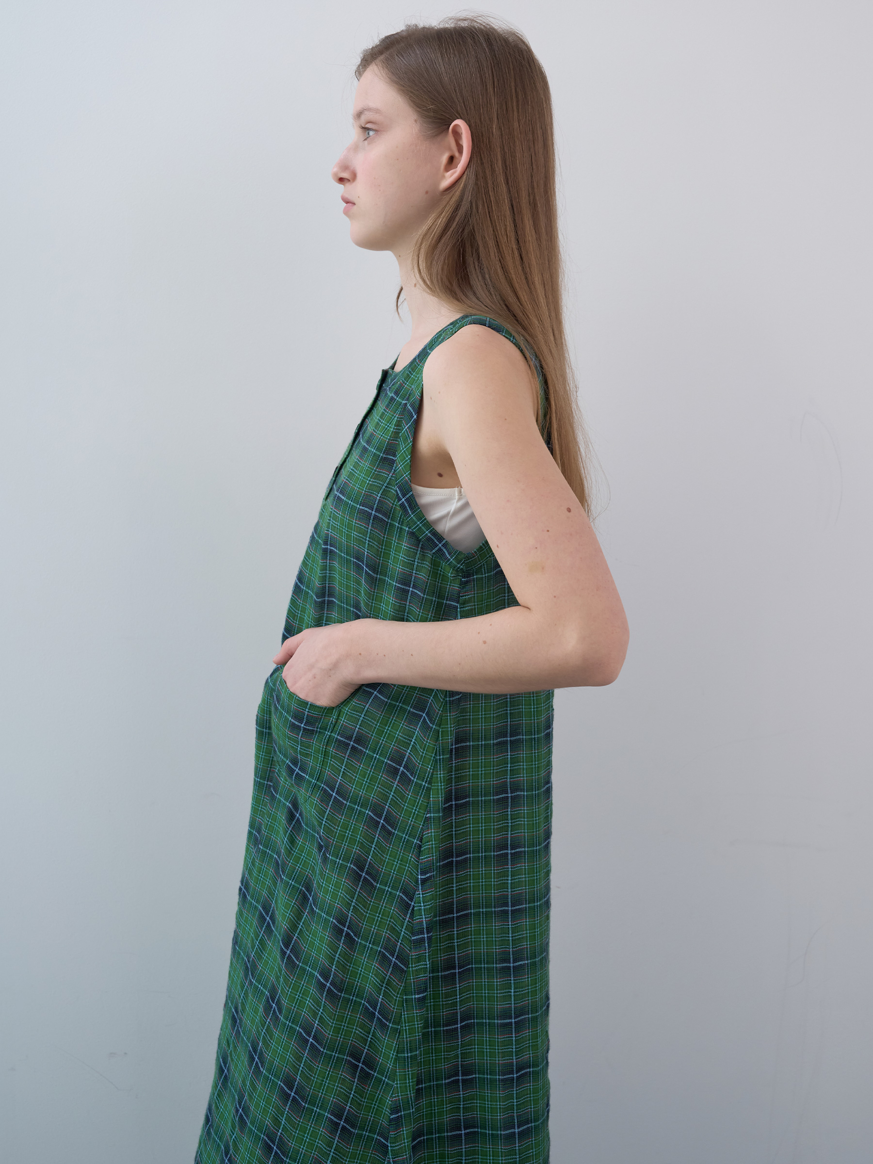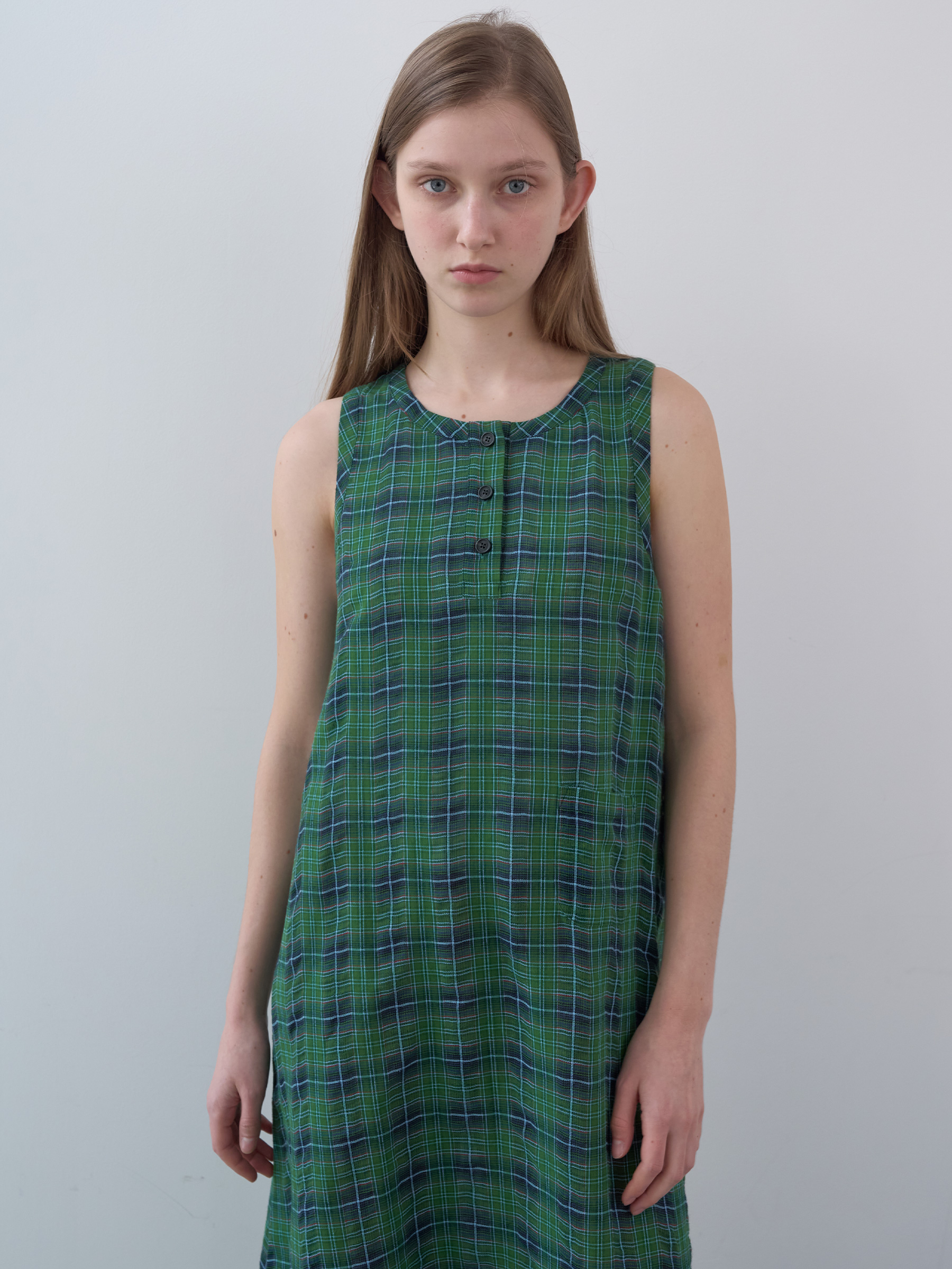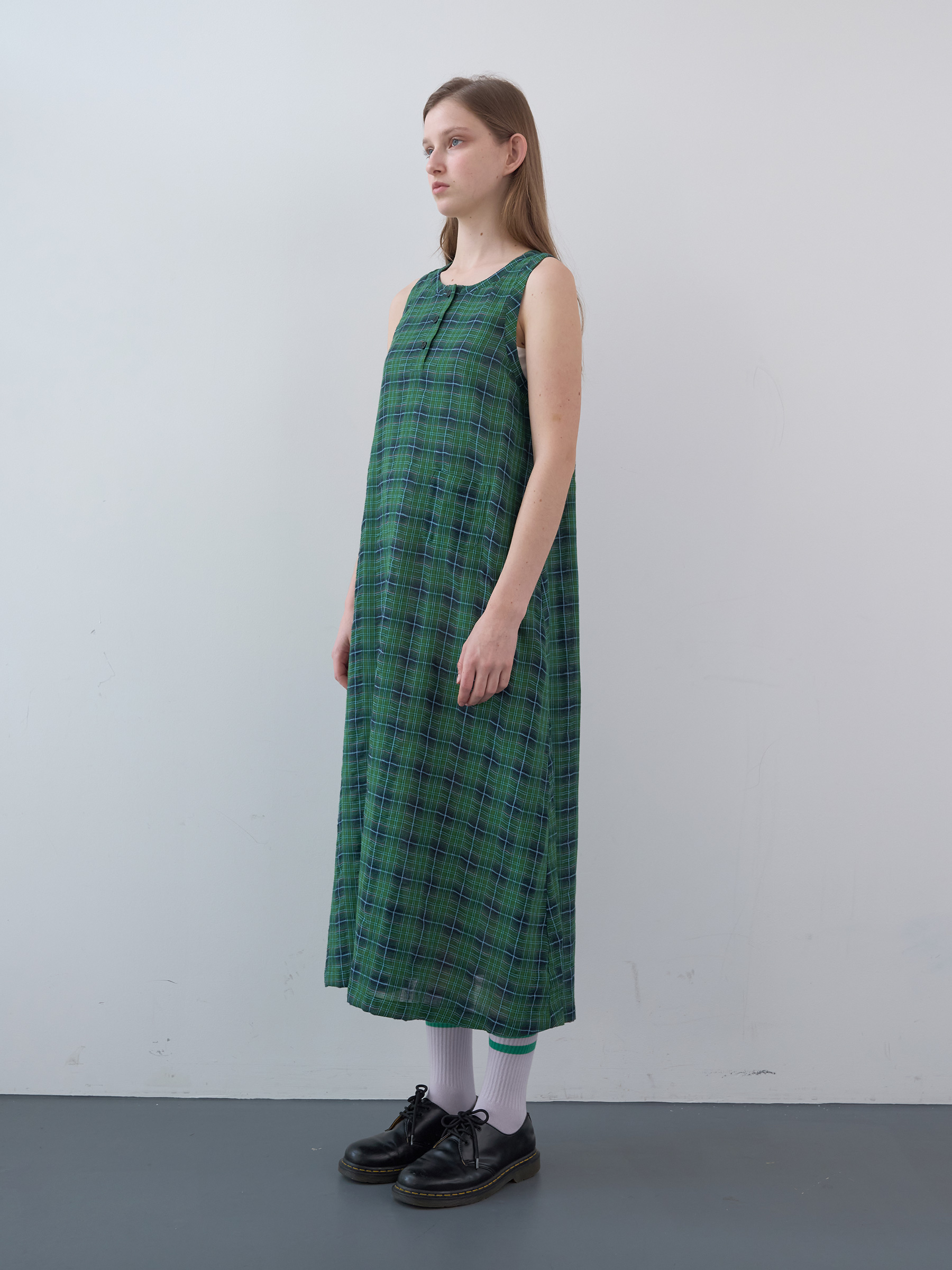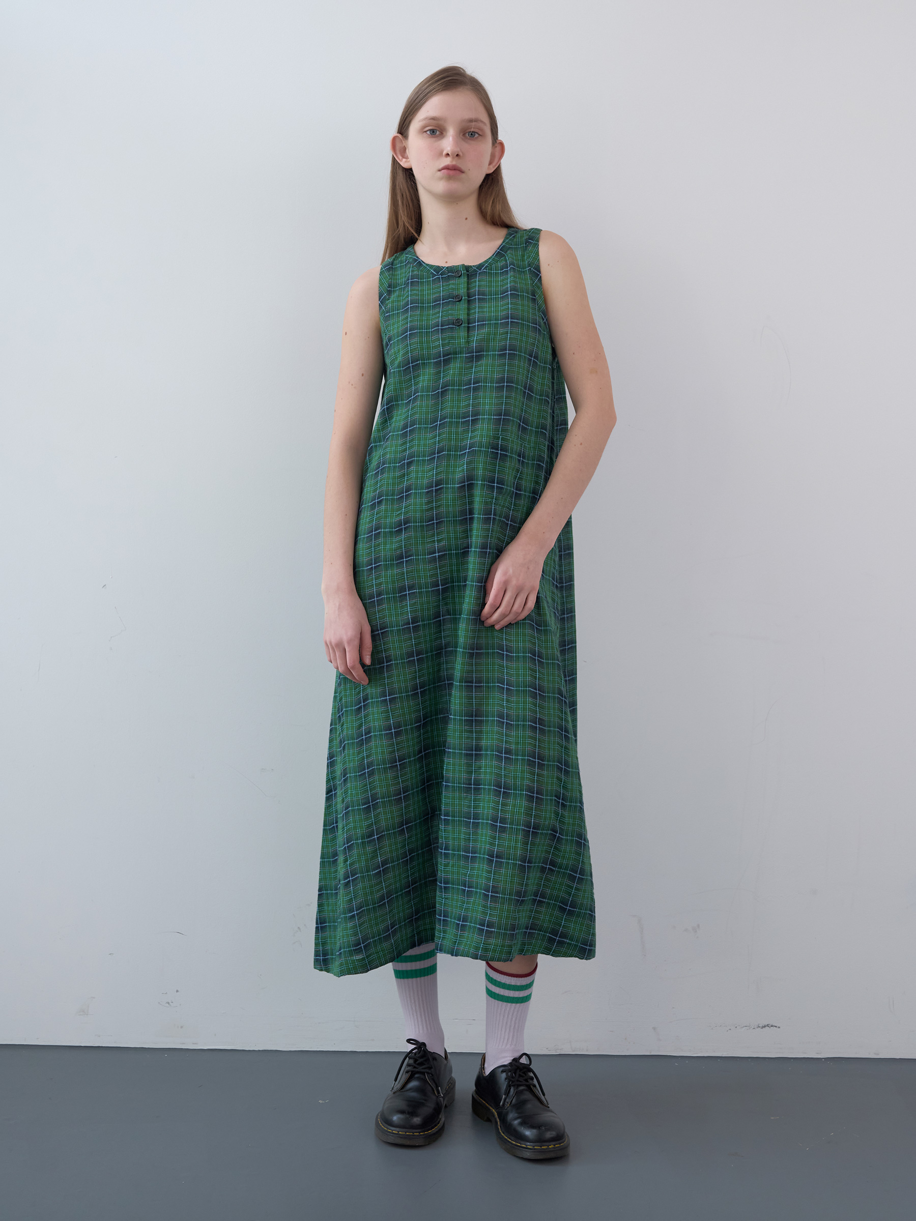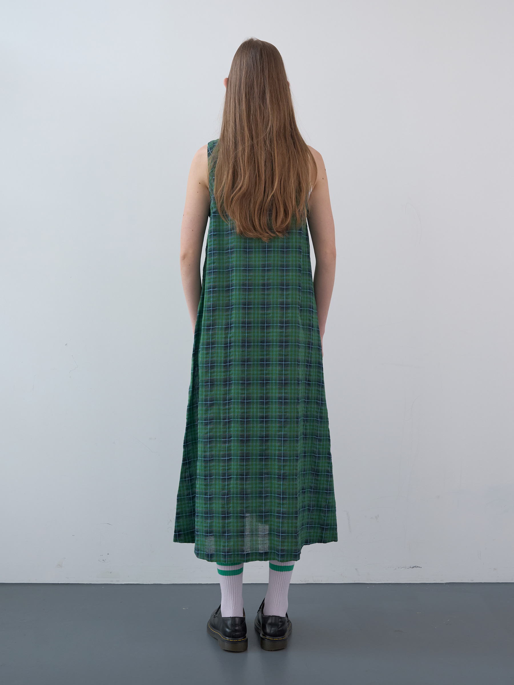 Cotton Tartan Checked Long Dress (Green)