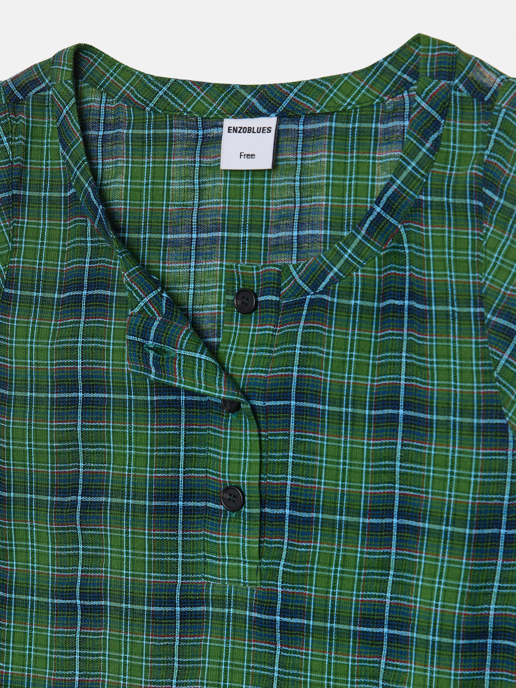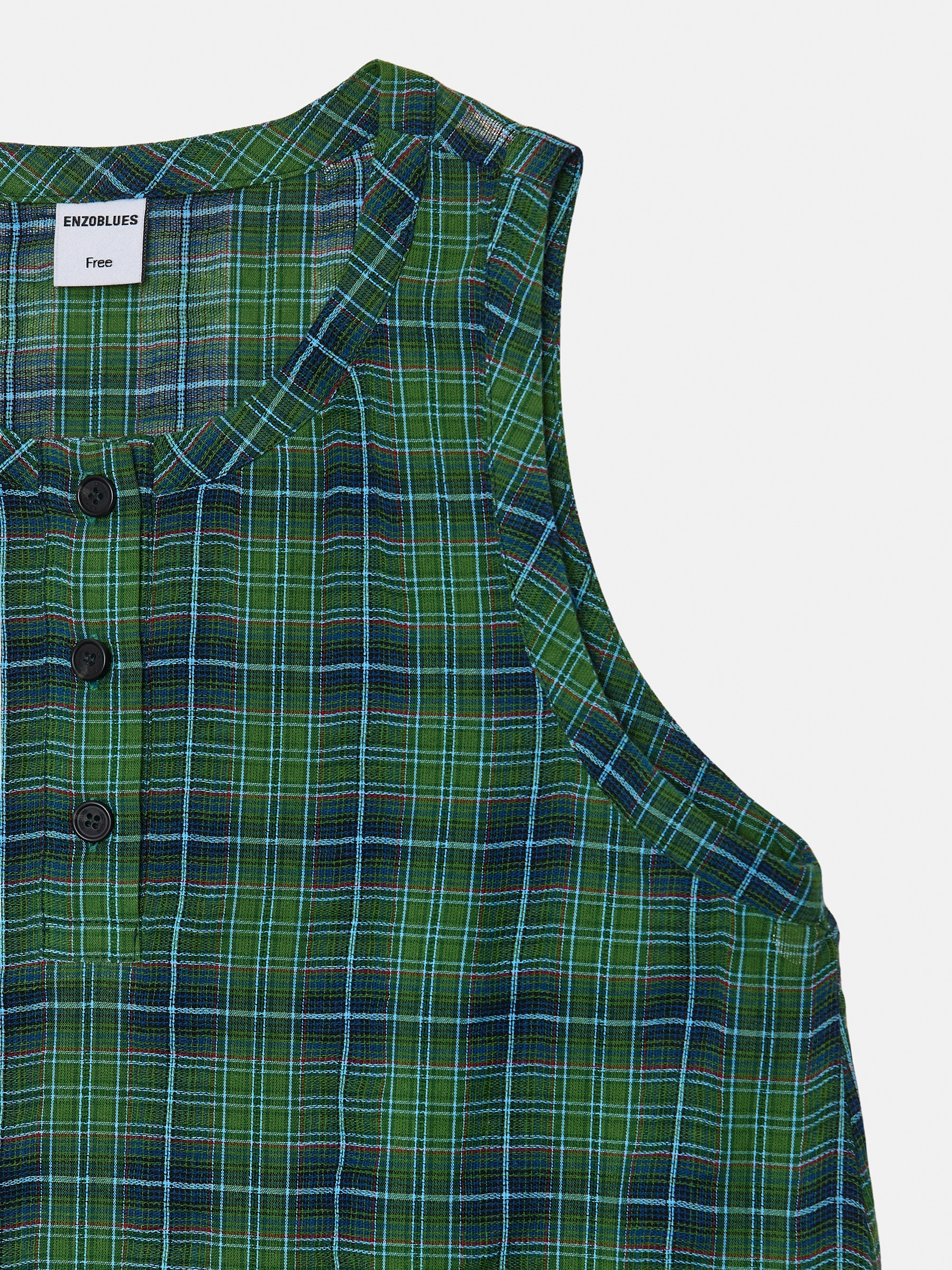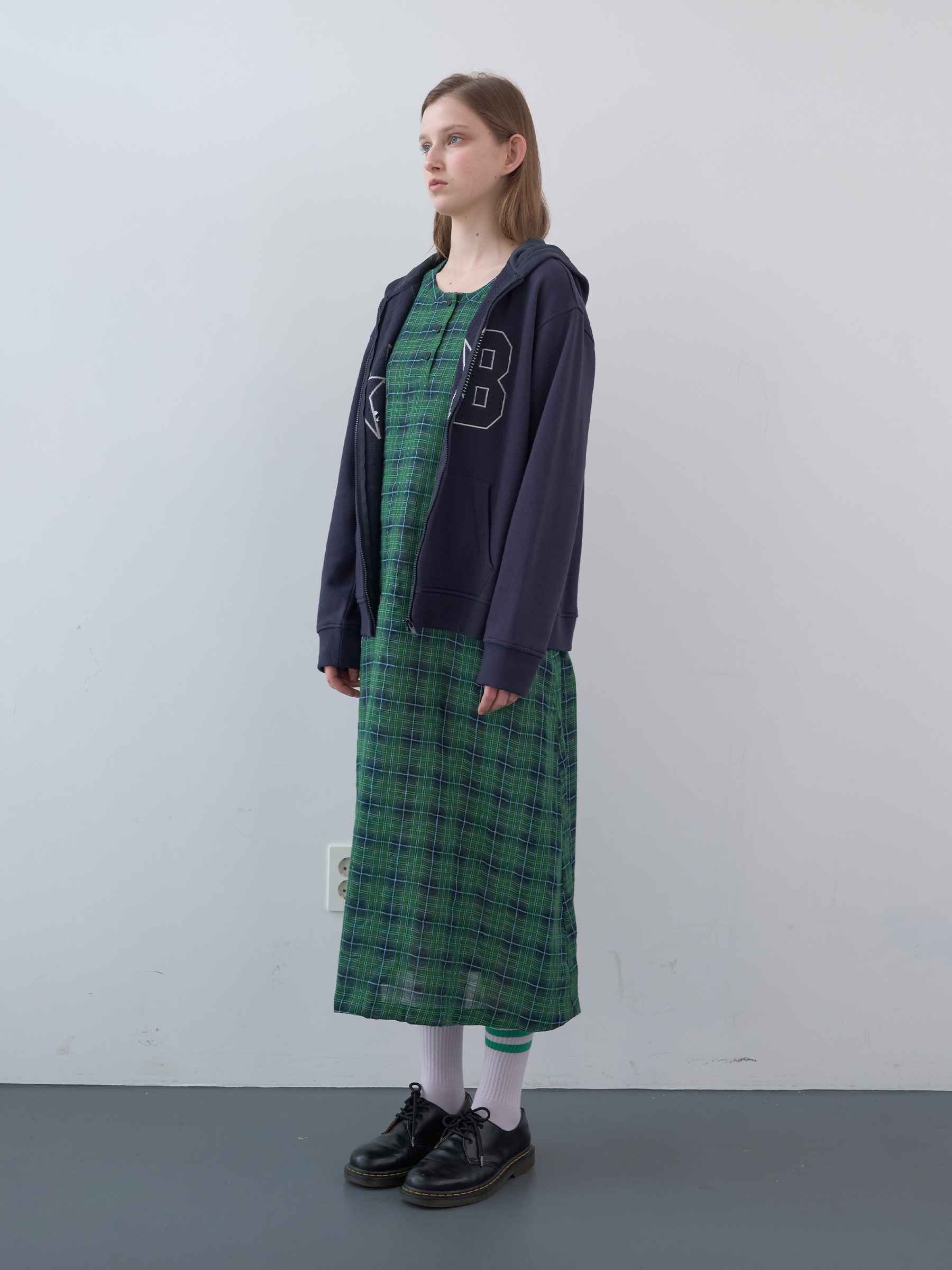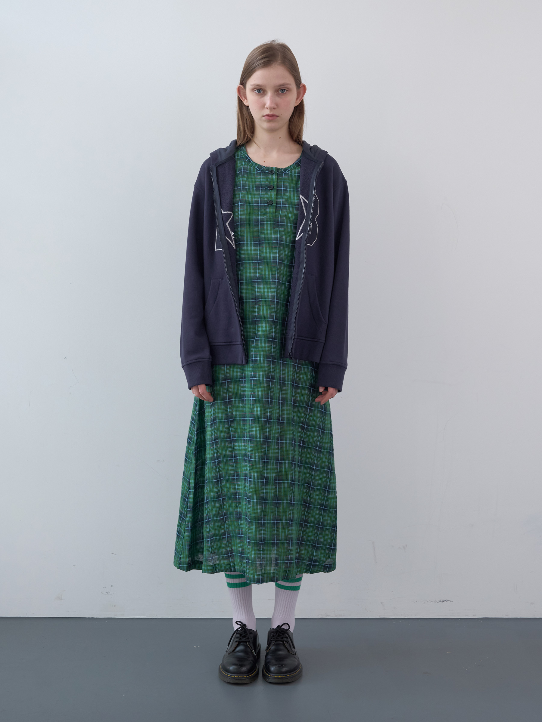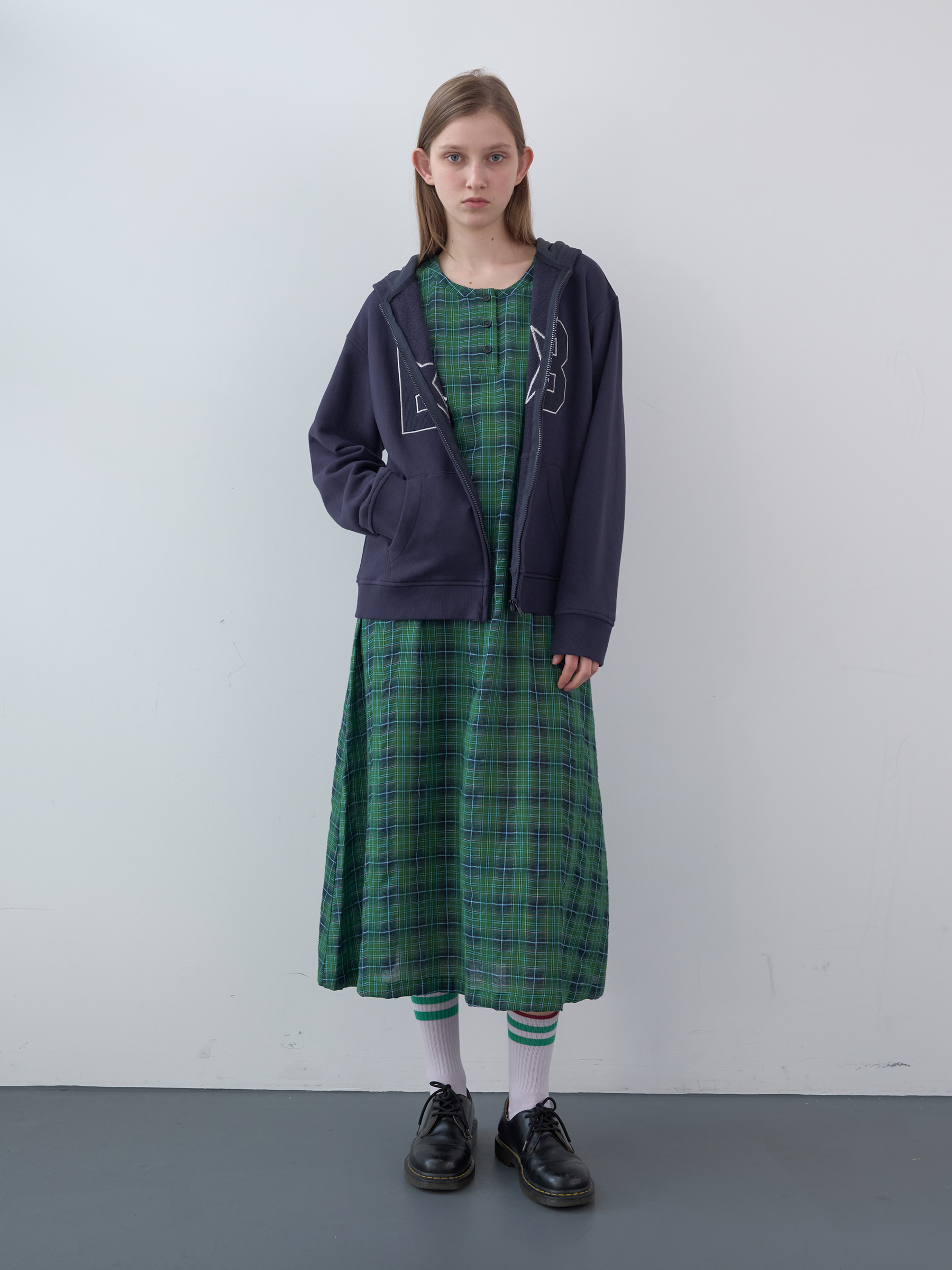 Cotton Tartan Checked Long Dress (Green)