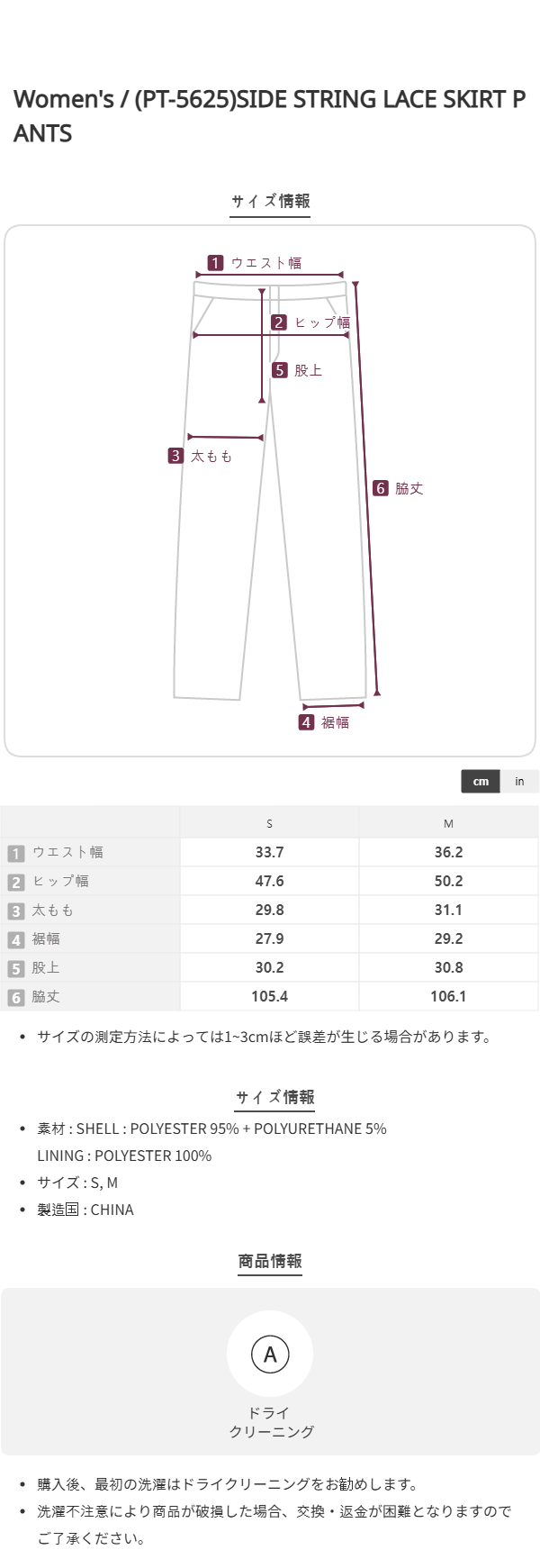 (PT-5625)SIDE STRING LACE SKIRT PANTS