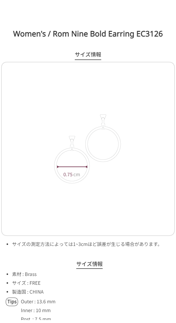 ロム ナイン ボールド ピアス EC3126