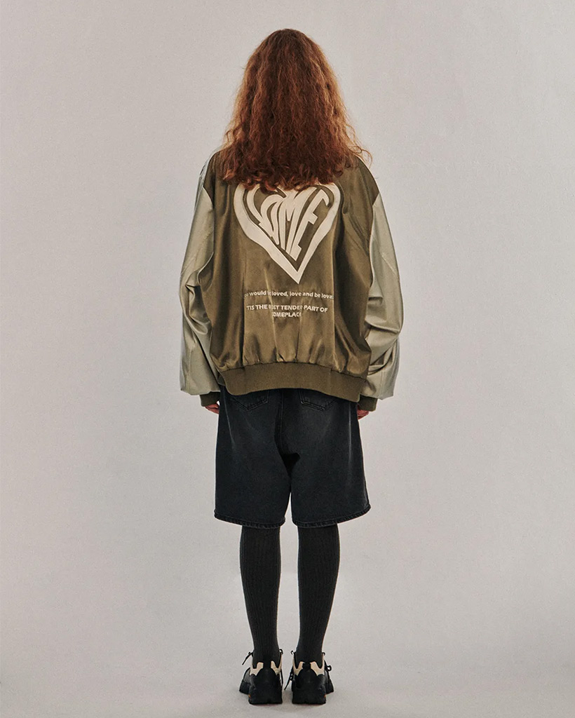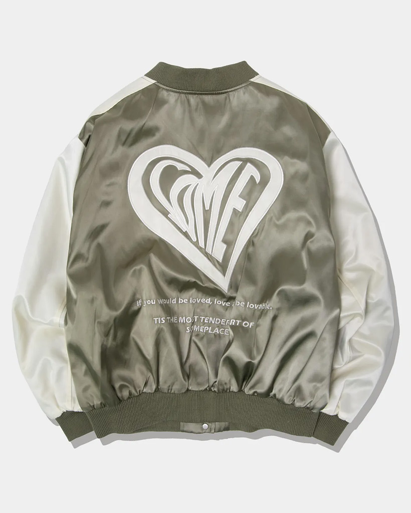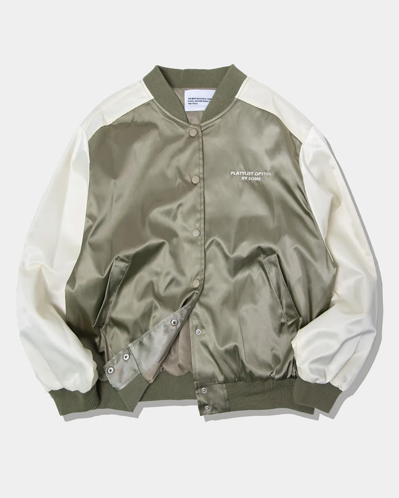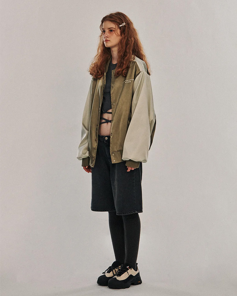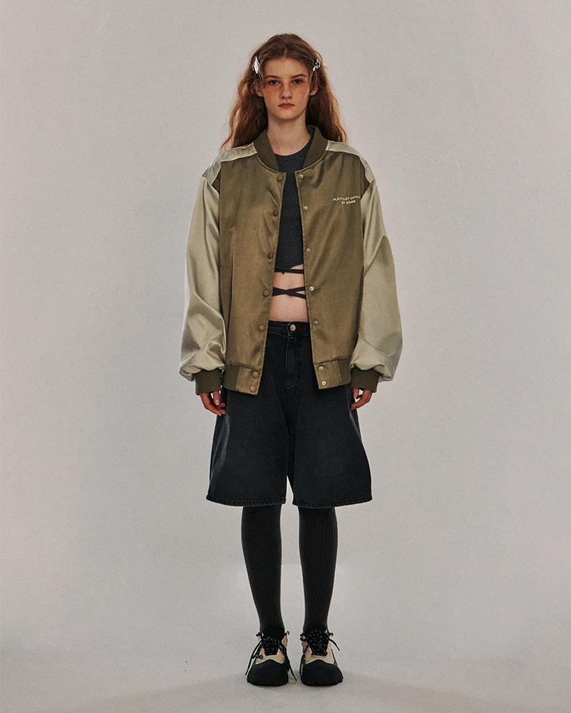 オーバーサイズ刺繍スタジアムバイカラージャケットベースボールジャンパー