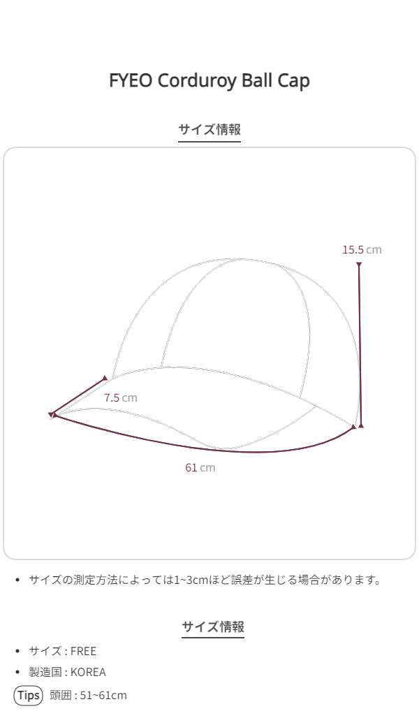 コーデュロイ特有の立体的なテクスチャーが際立つ FYEO Corduroy Ball Cap(コーデュロイ ボールキャップ)です。
