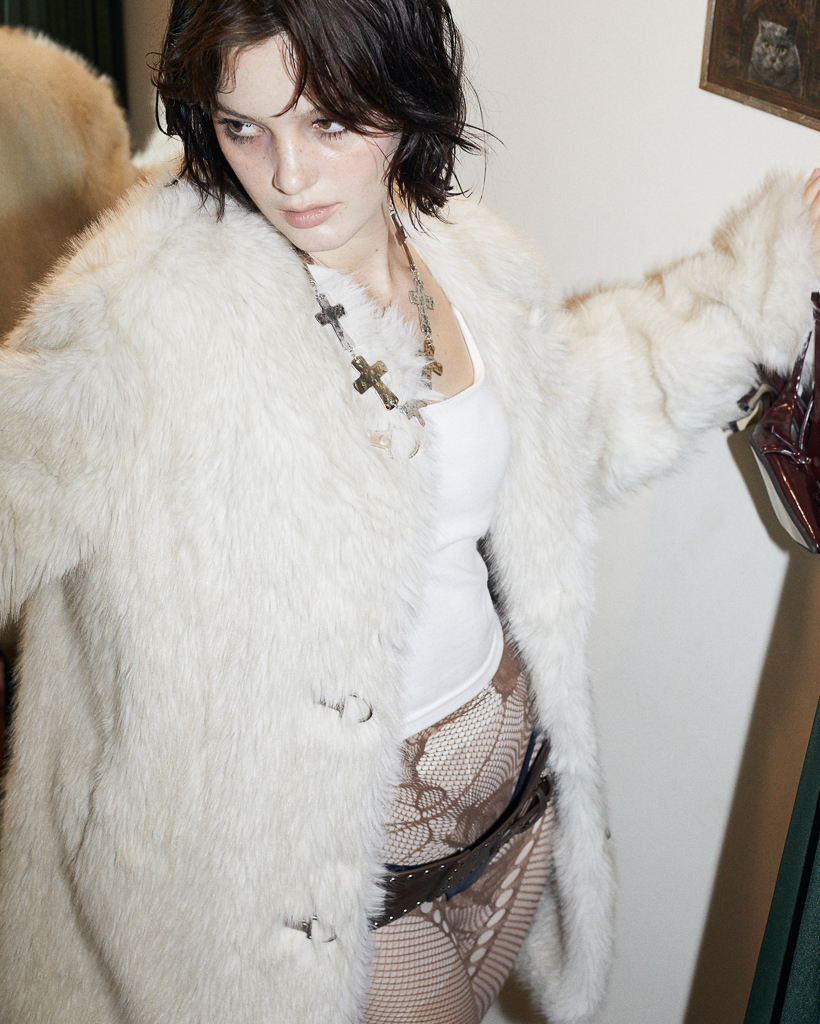 Metal Hook Fur Jacket (LIGHT BEIGE)