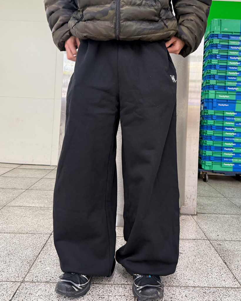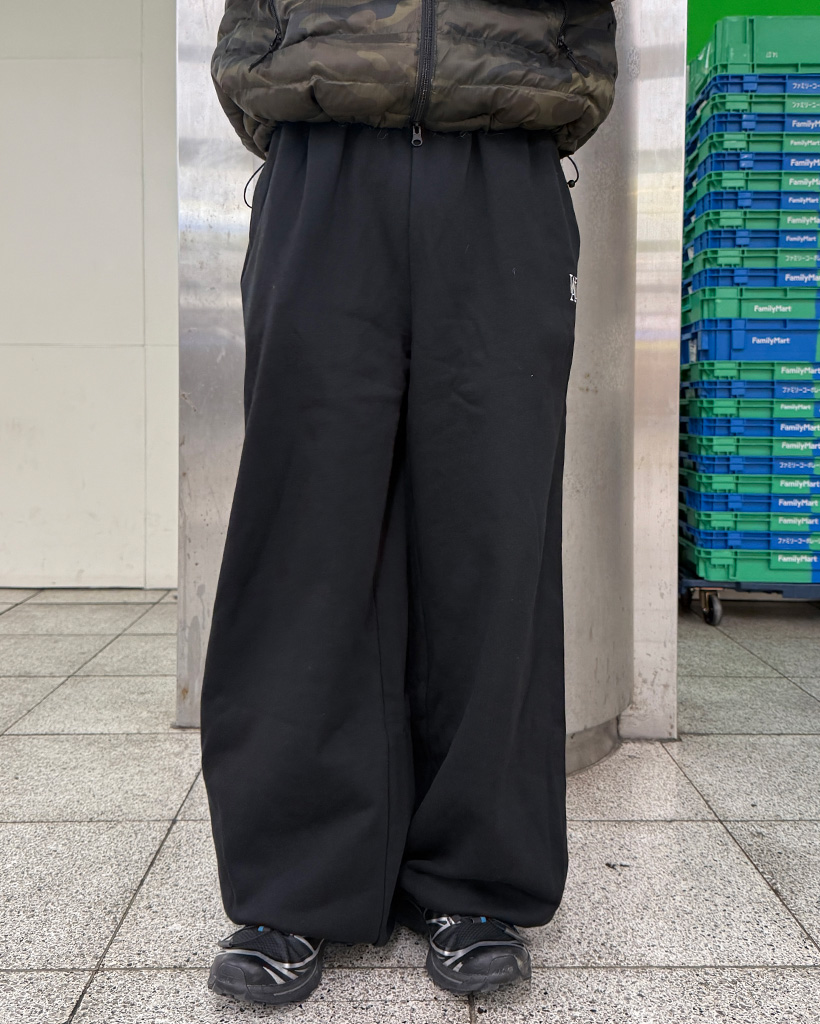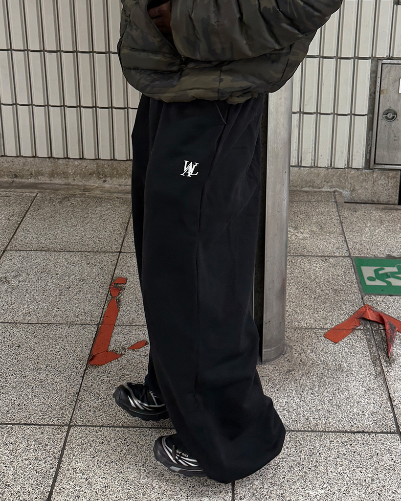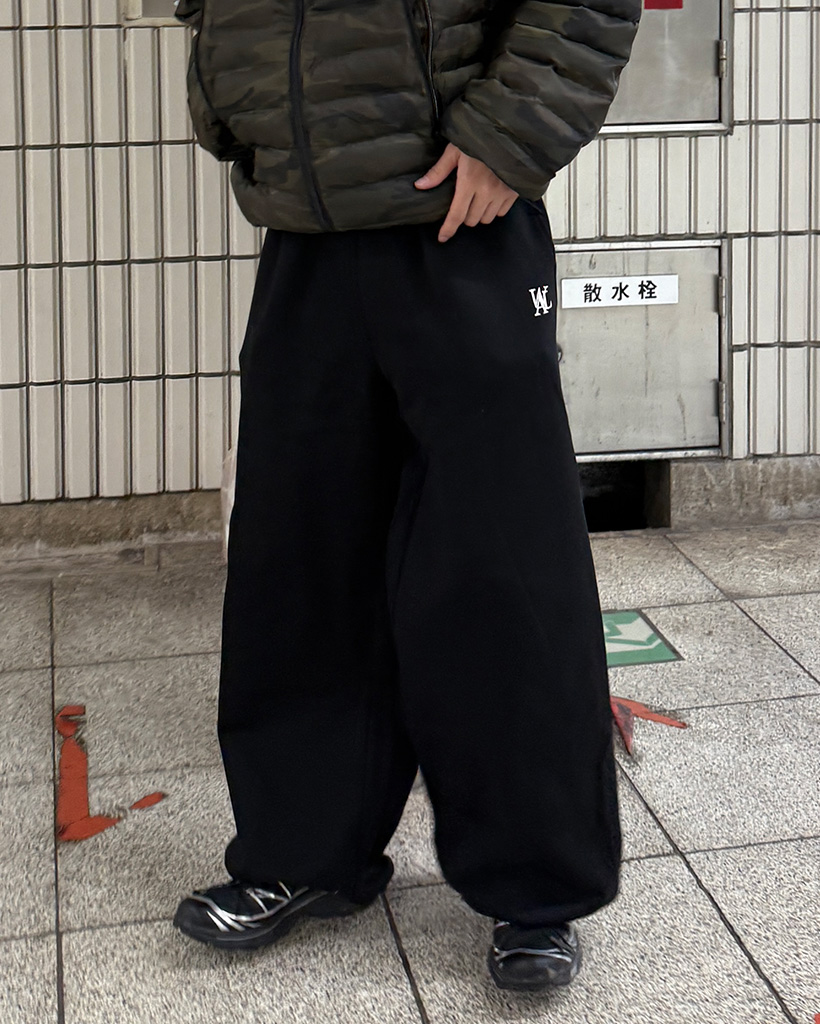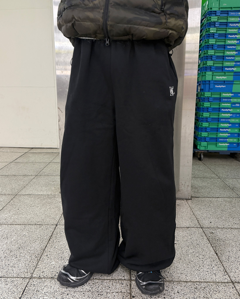 [ROLL X WOOALONG] Essential 2-way String Banding Wide Sweat Pants - BLACK