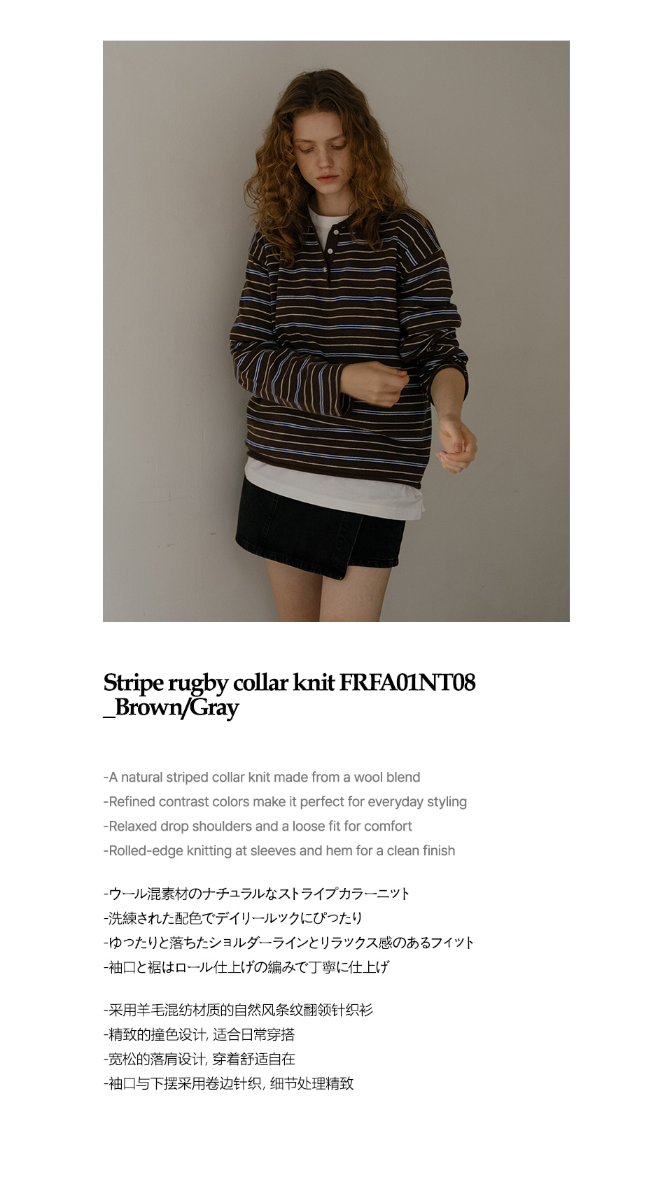 【購入特典】Stripe rugby collar knit FRFA01NT08_Brown