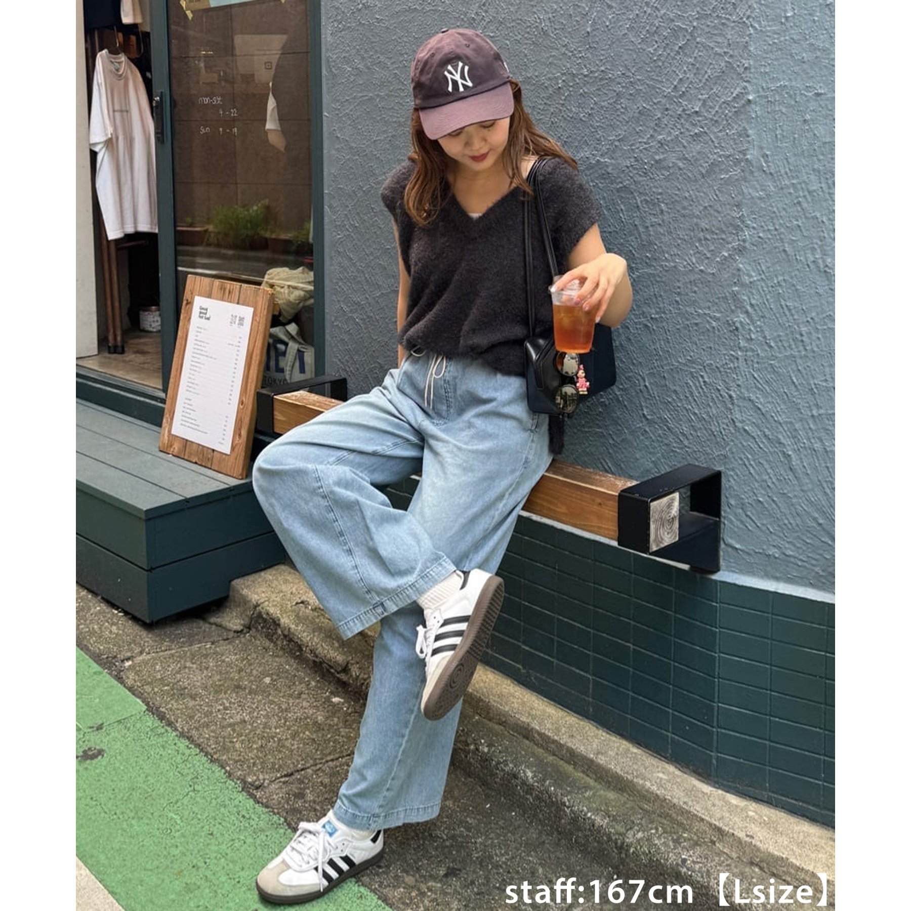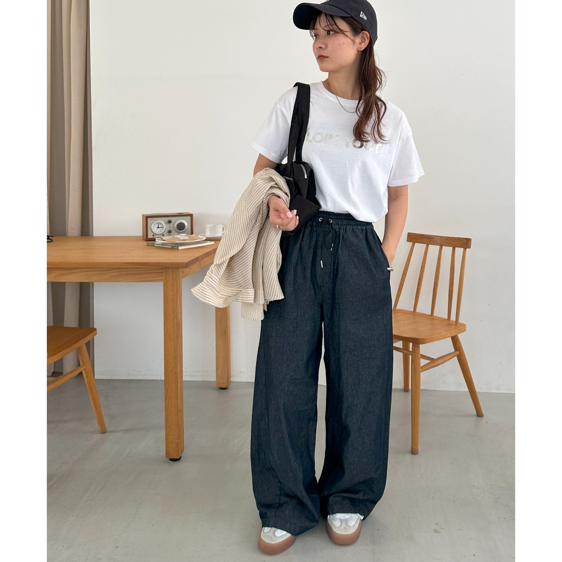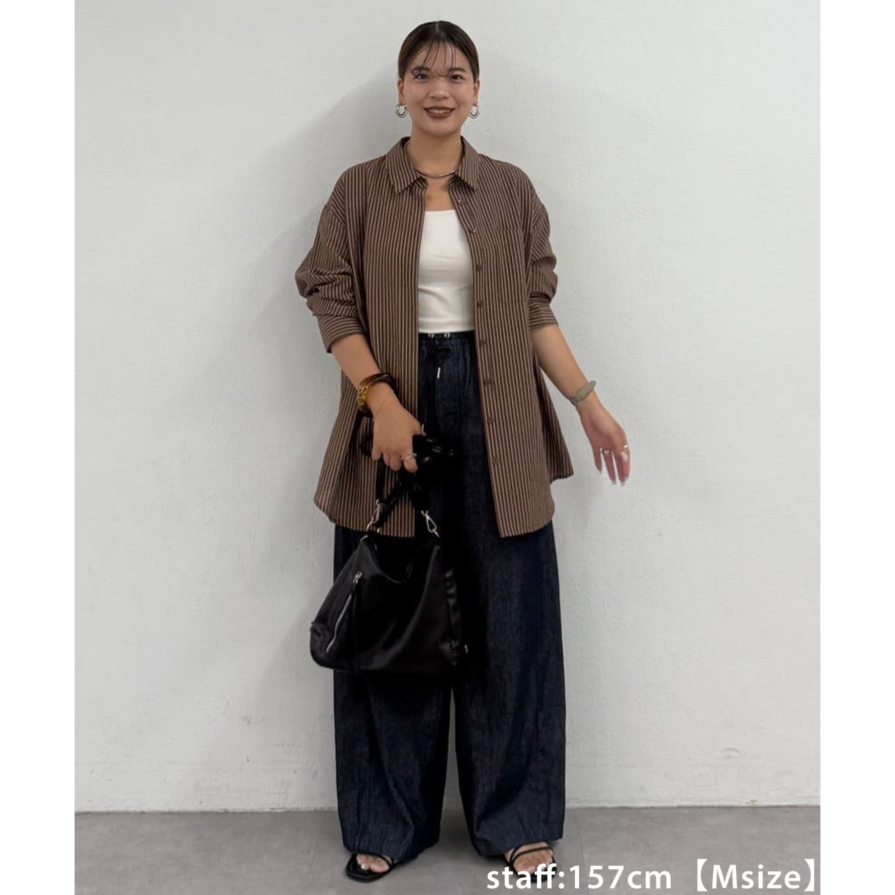 ワイドなシルエットなので、コンパクトな着丈のトップスやウエストラインが見えるアイテムと合わせることで、こなれ感がアップします。
