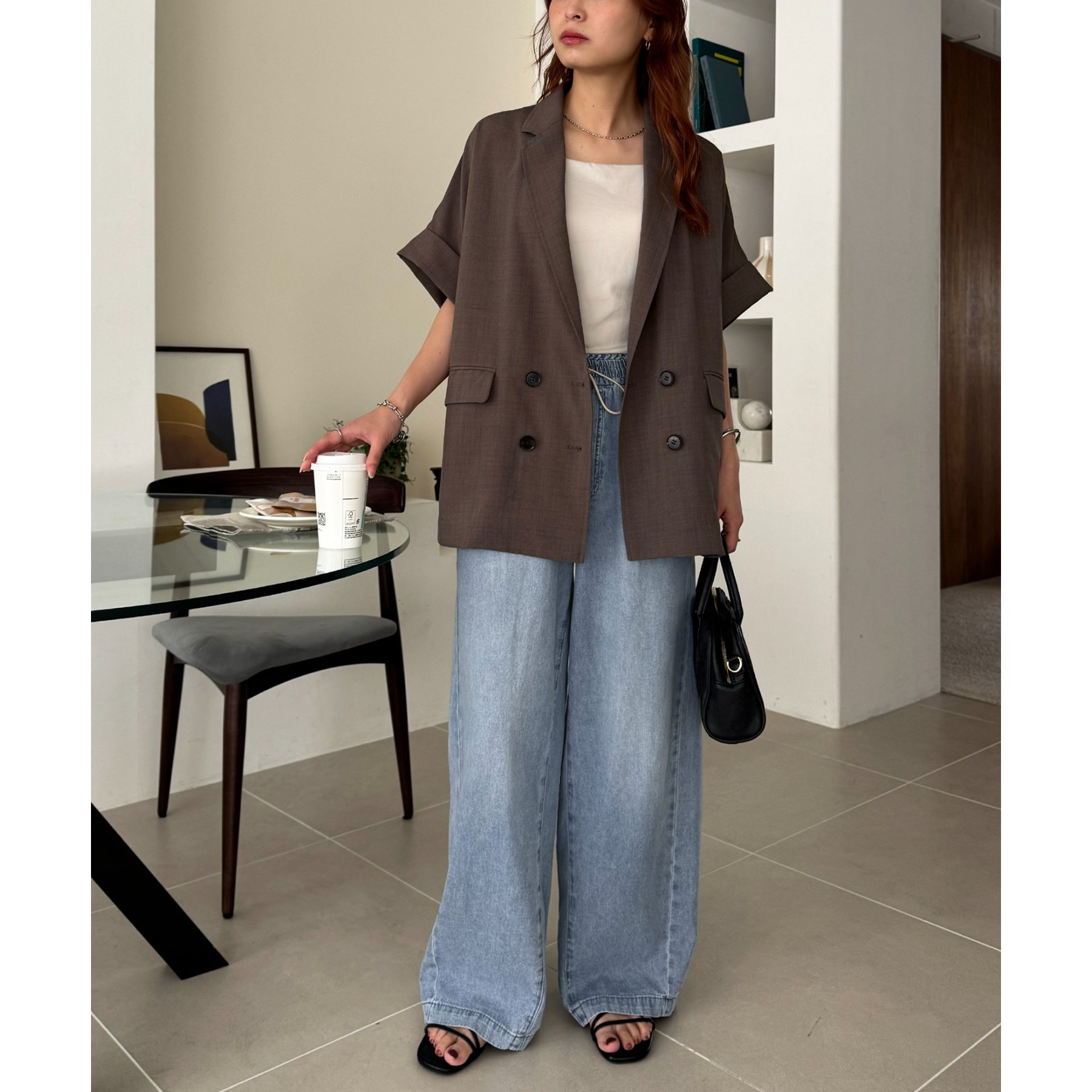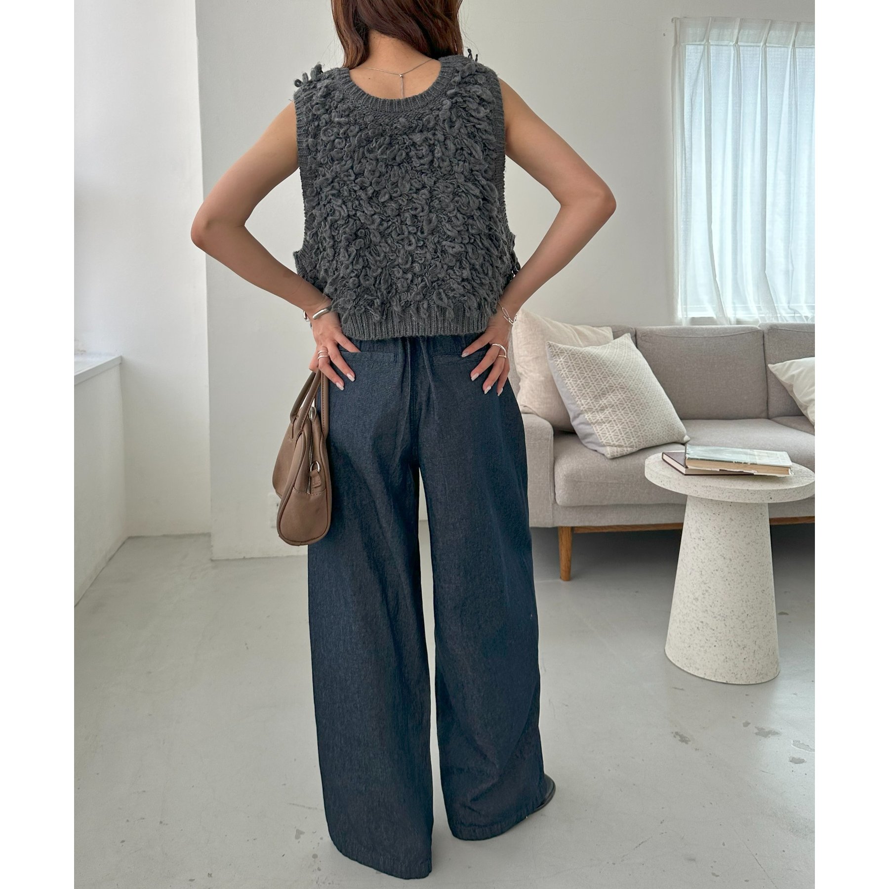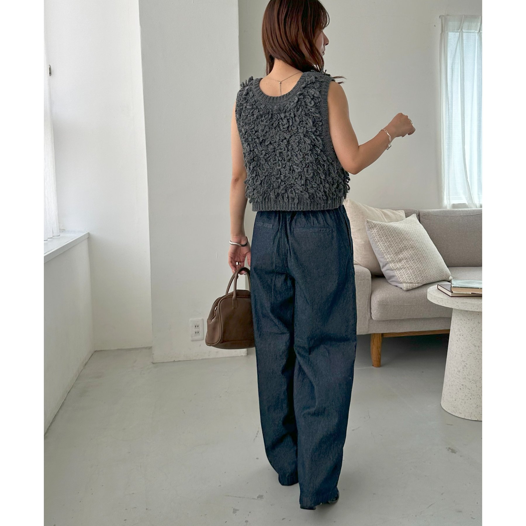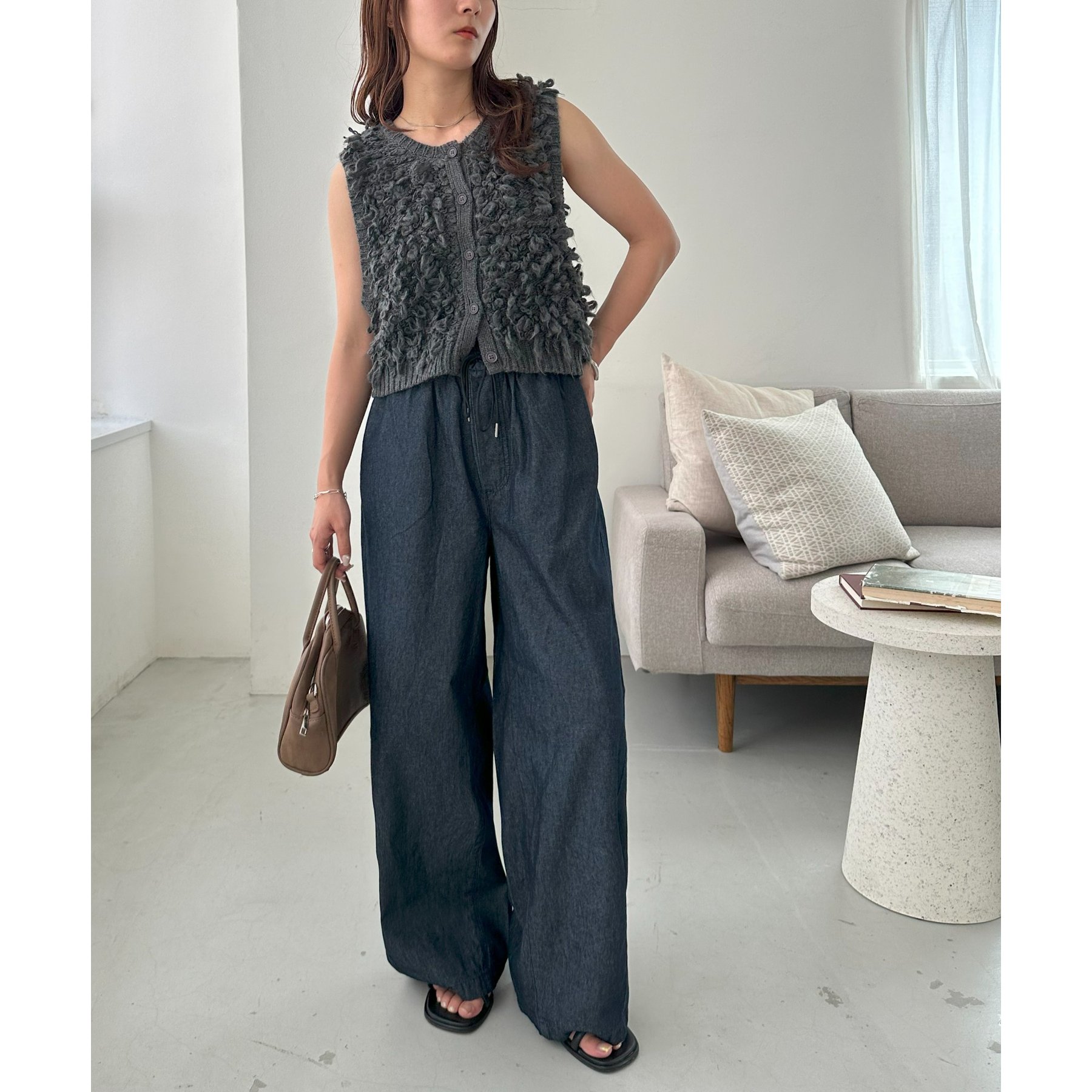 ワイドなシルエットなので、コンパクトな着丈のトップスやウエストラインが見えるアイテムと合わせることで、こなれ感がアップします。