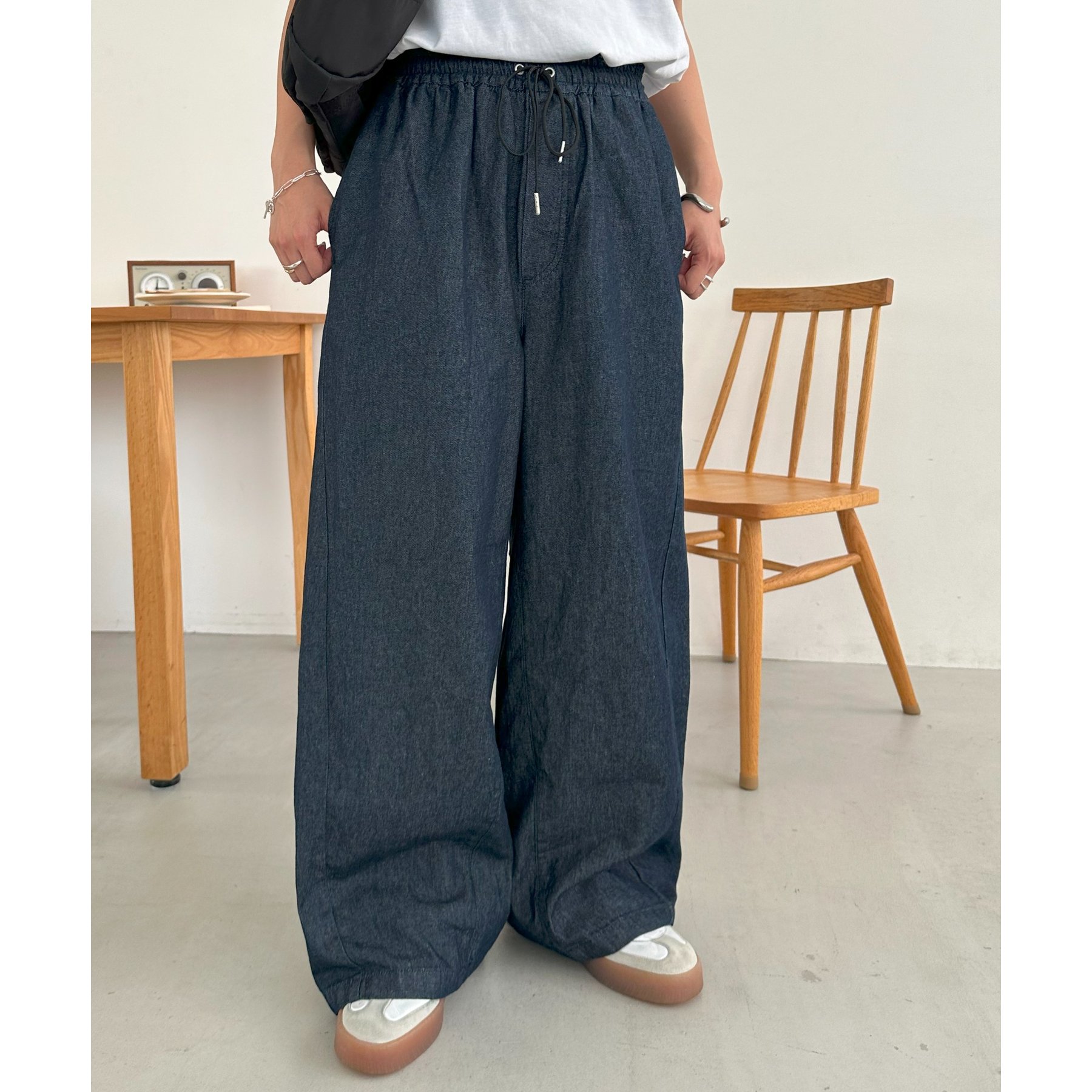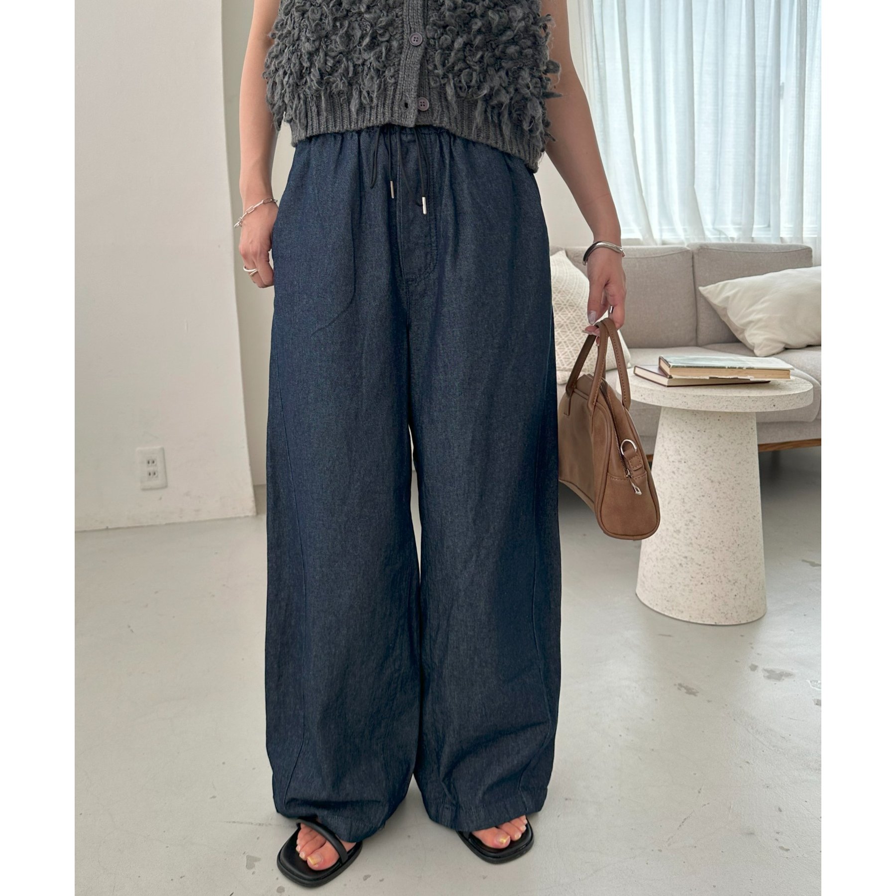 ウエスト部分は総ゴム仕様でリラクシーな着心地を叶えます。さらに、ウエスト紐で調整可能なので3サイズ展開ですが、幅広い体型の方に着ていただけます!