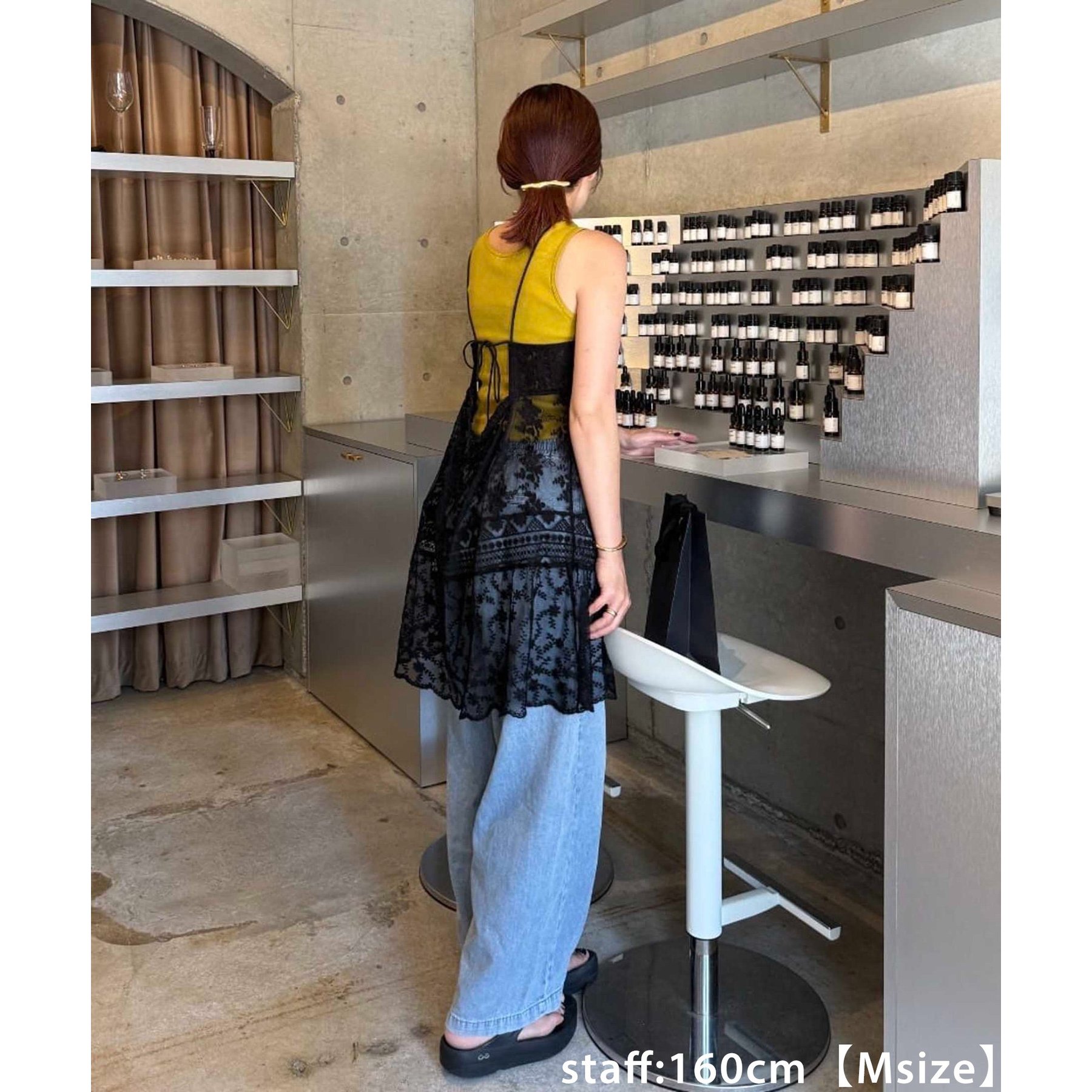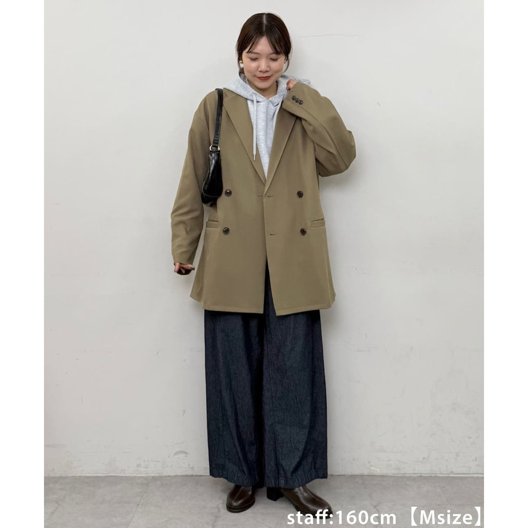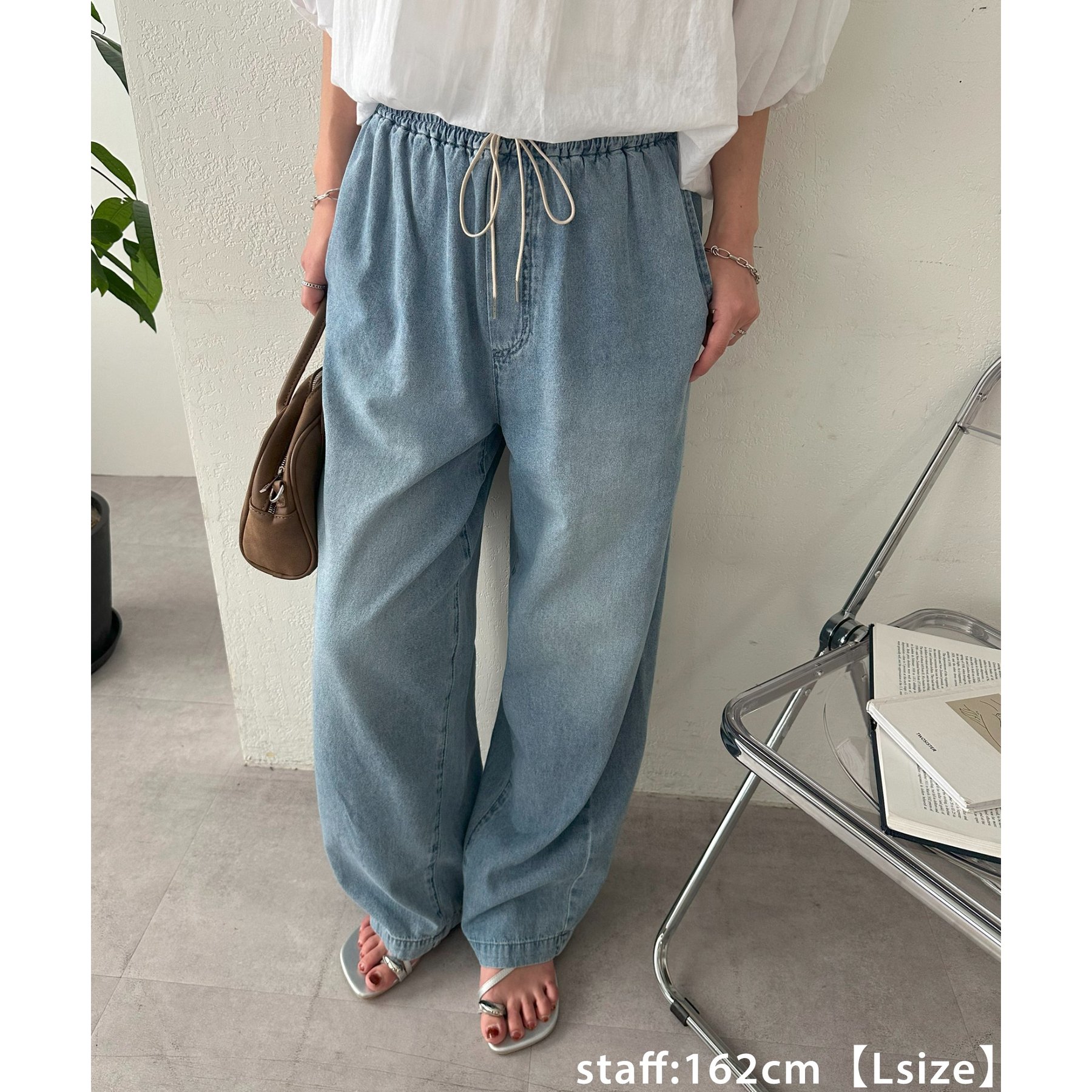 167cmスタッフ(Lサイズ着用):丈感もちょうどよく、足首までしっかり隠れました。デニム特有の重さがなく、軽量で動きやすいです!