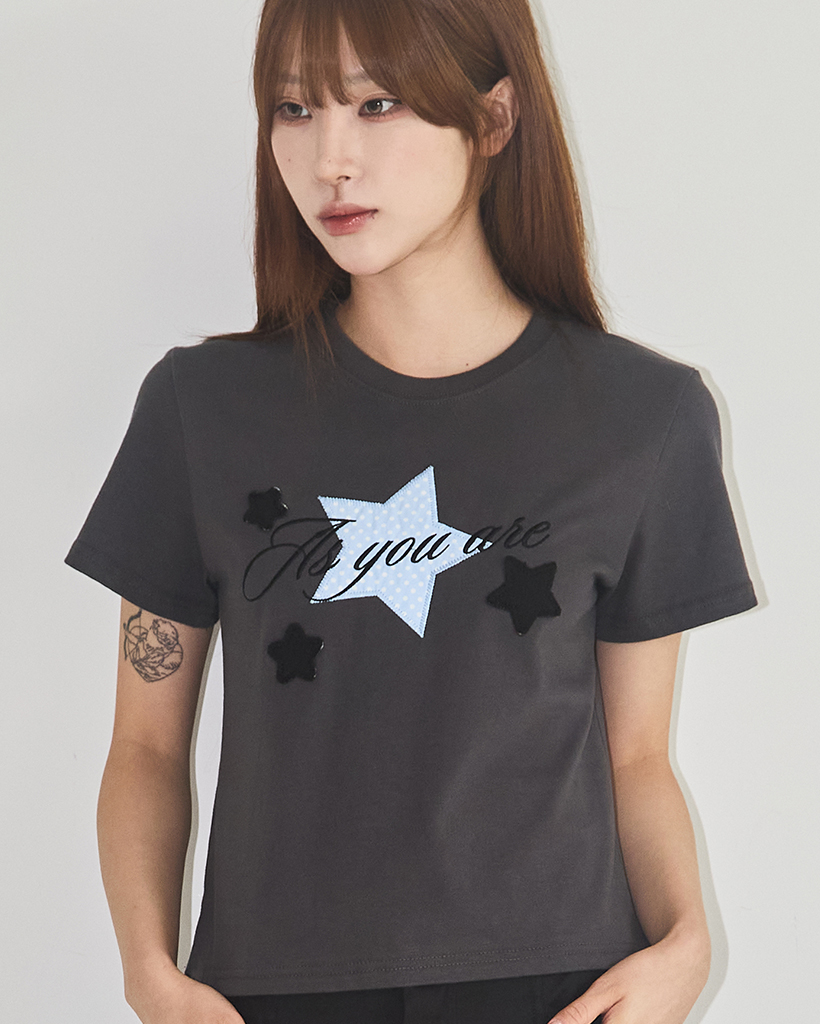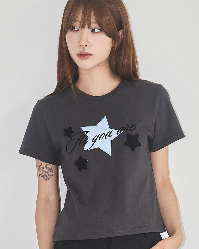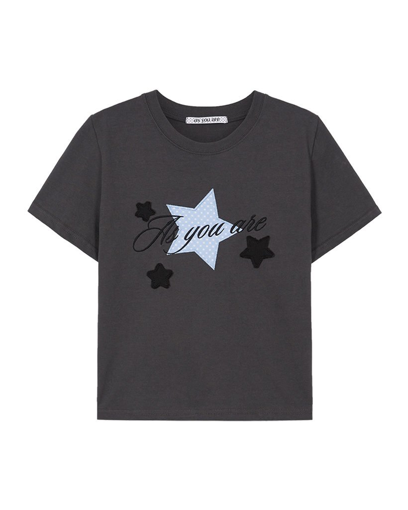 Star Patch Loose Crop T-Shirt Charcoal