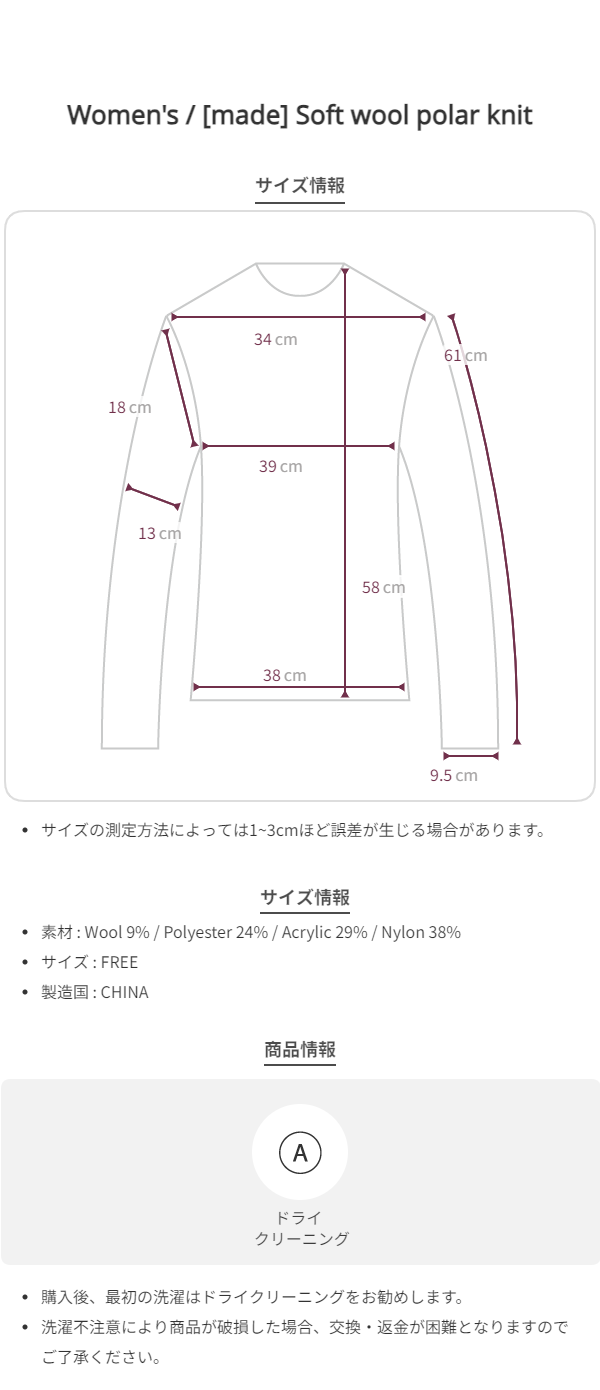*同一の商品であっても、製作のたびにサイズに多少の誤差が生じることがあります。