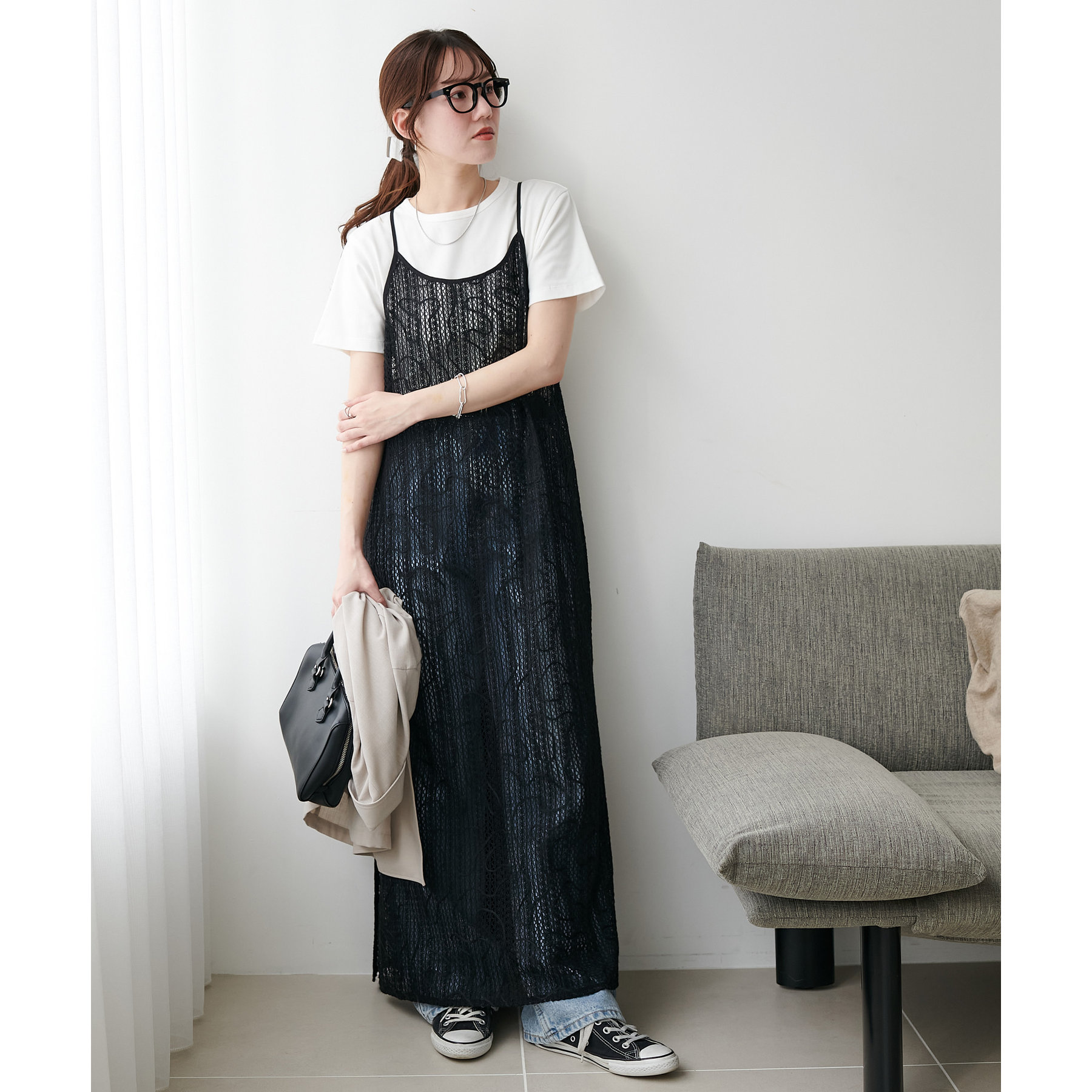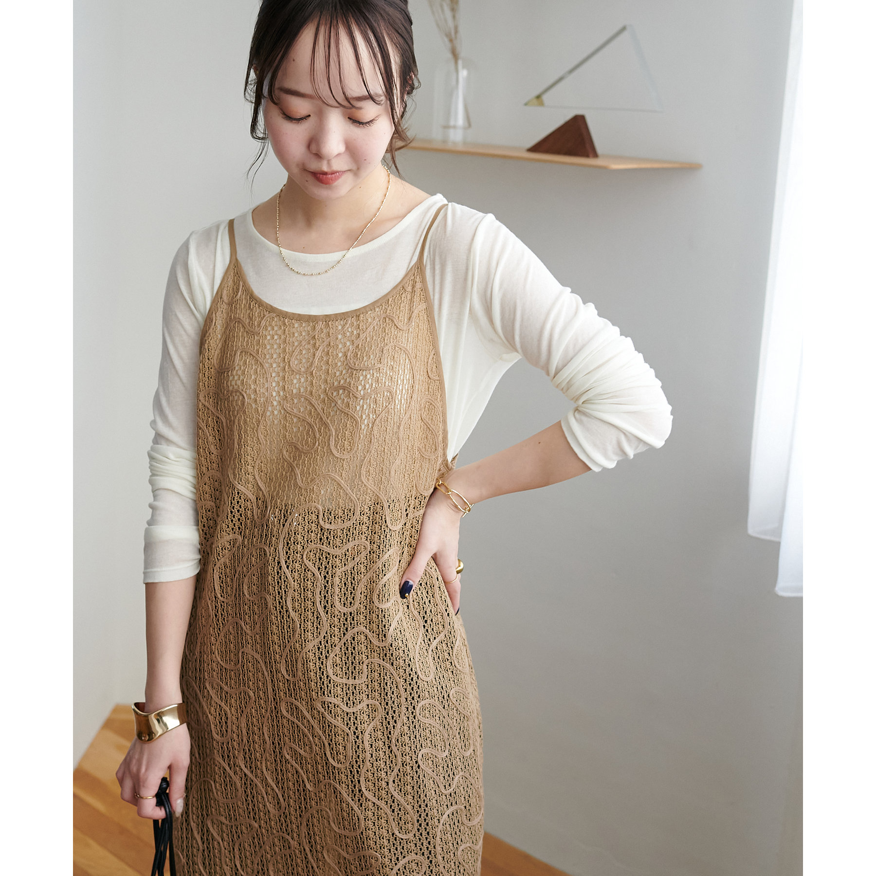 合わせるトップス次第で、ロングシーズン幅広いテイストで楽しめるキャミワンピースです。