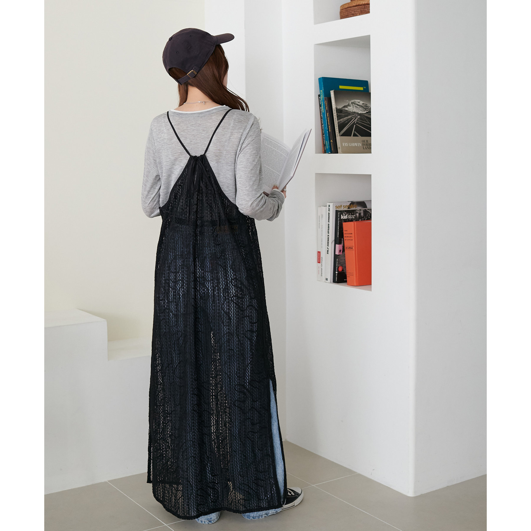 メッシュ素材に線柄を施した着映えするキャミワンピースが登場!