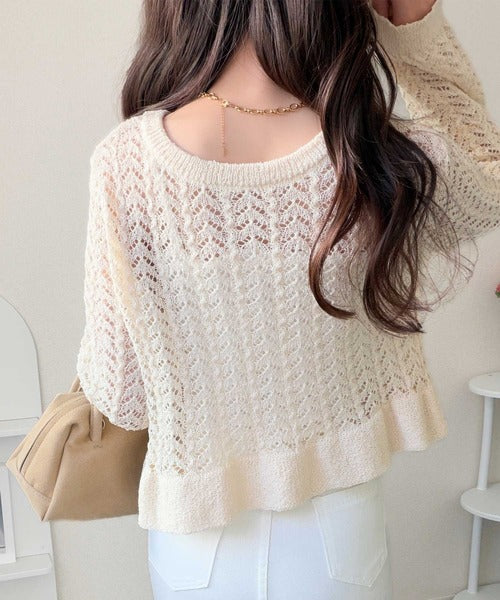 前後2WAYで楽しめる透かし編みデザイン。