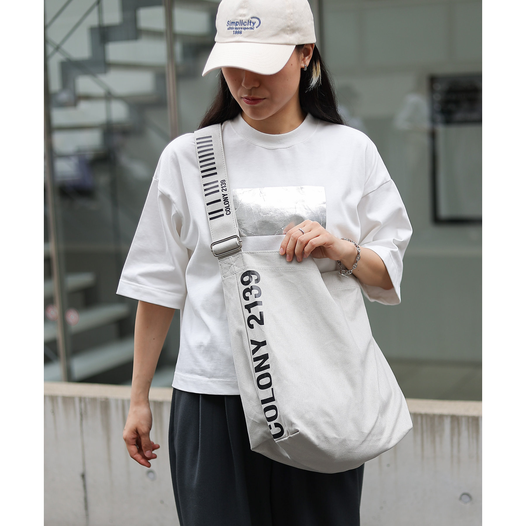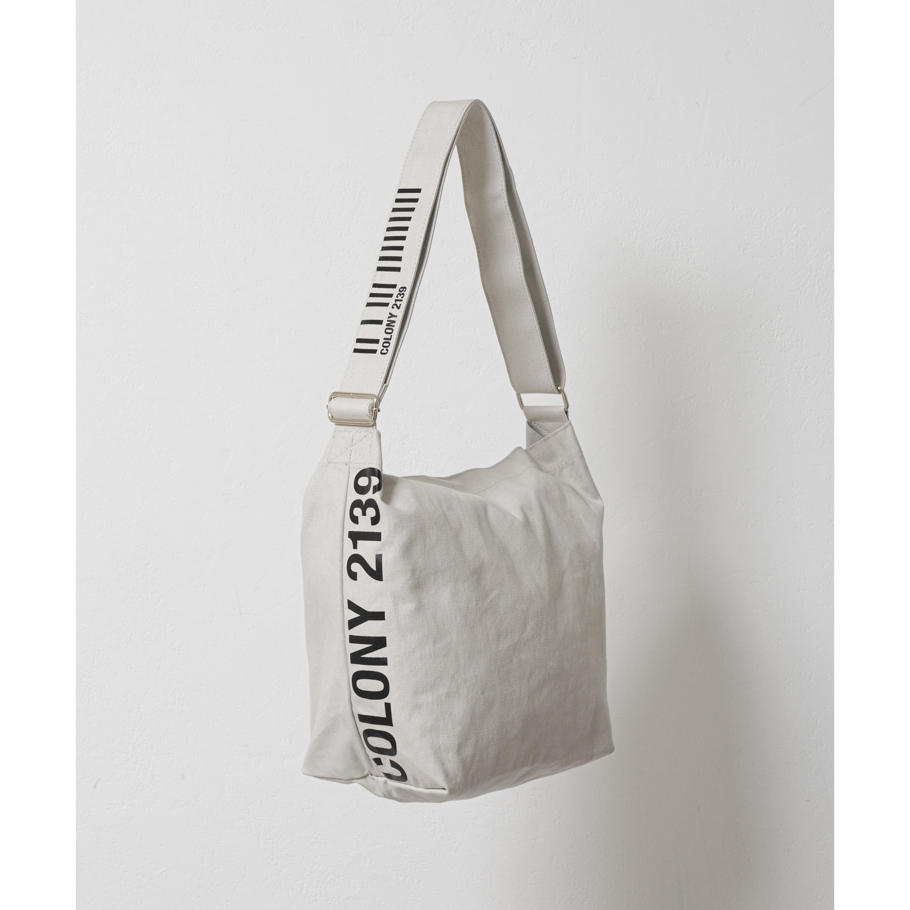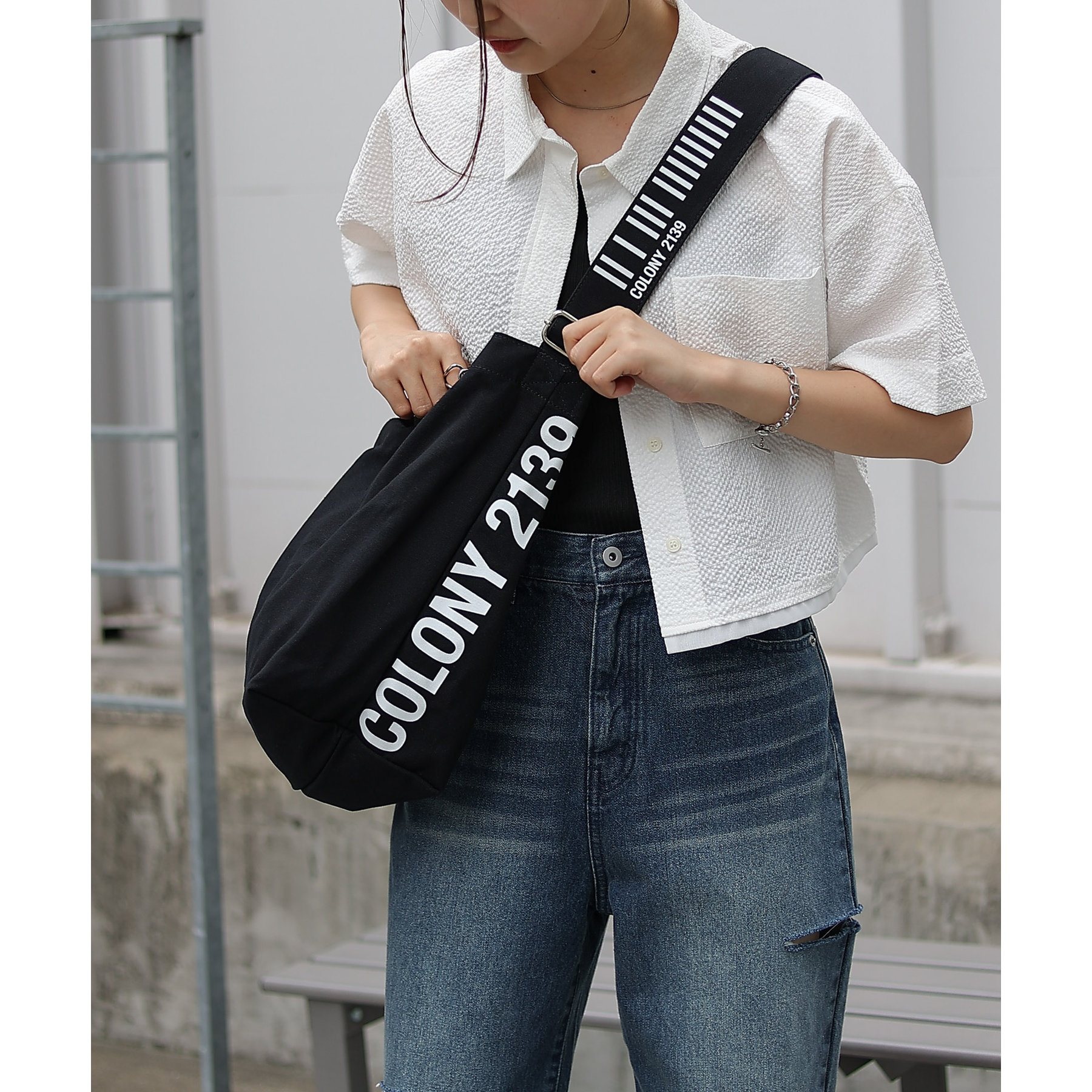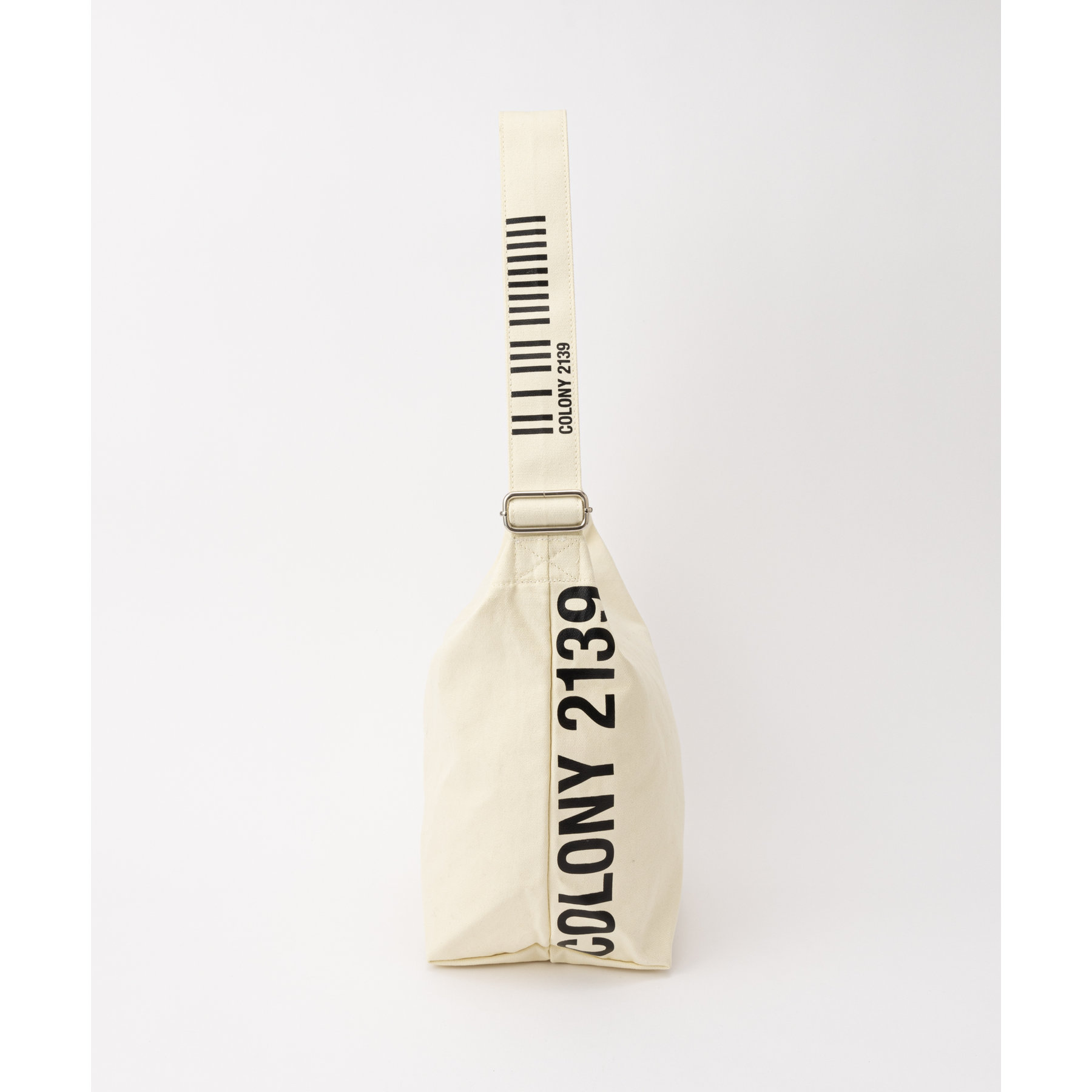 縦に入ったCOLONY 2139のロゴと、ショルダーストラップに入ったバーコードロゴのプリントが程よいアクセントになっています。