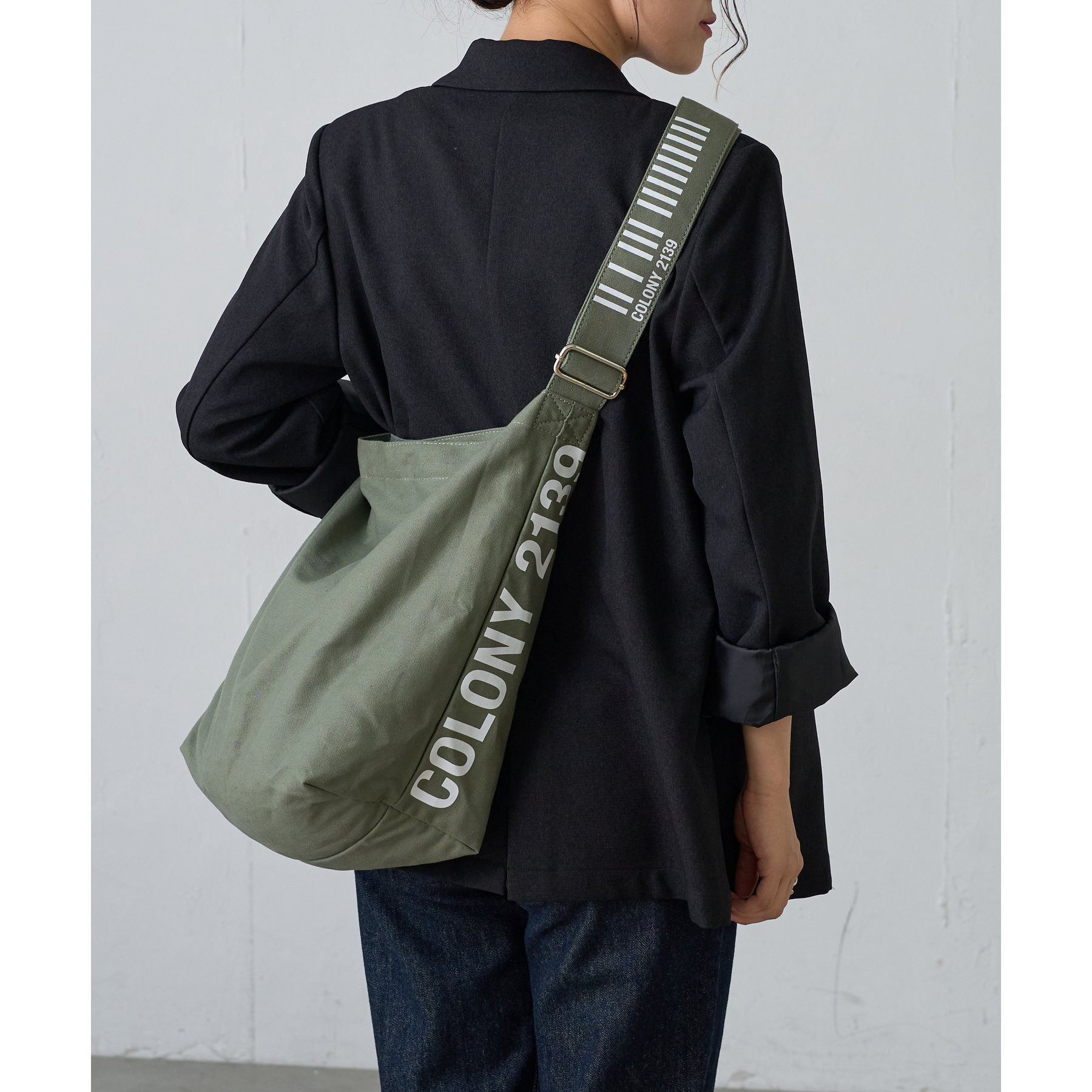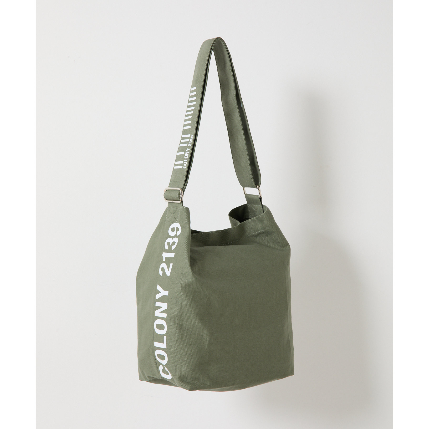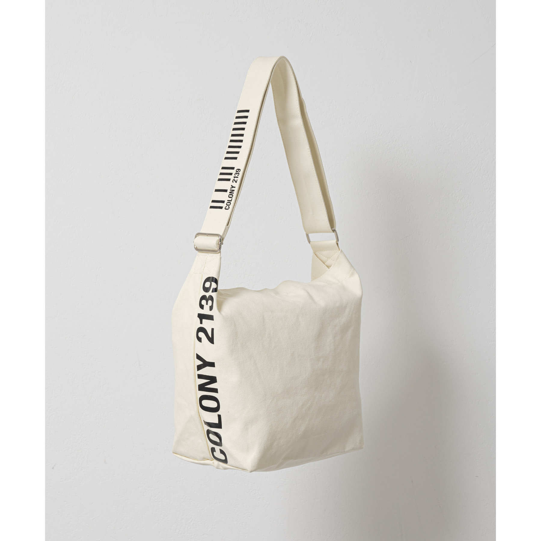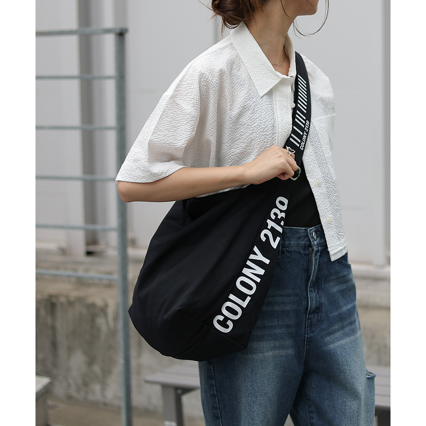 縦に入ったCOLONY 2139のロゴと、ショルダーストラップに入ったバーコードロゴのプリントが程よいアクセントになっています。