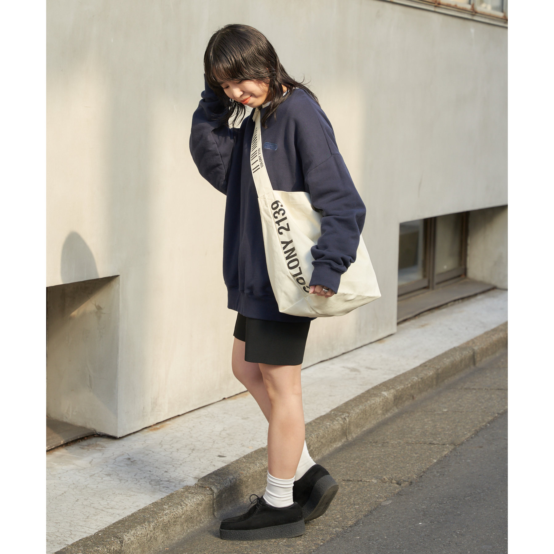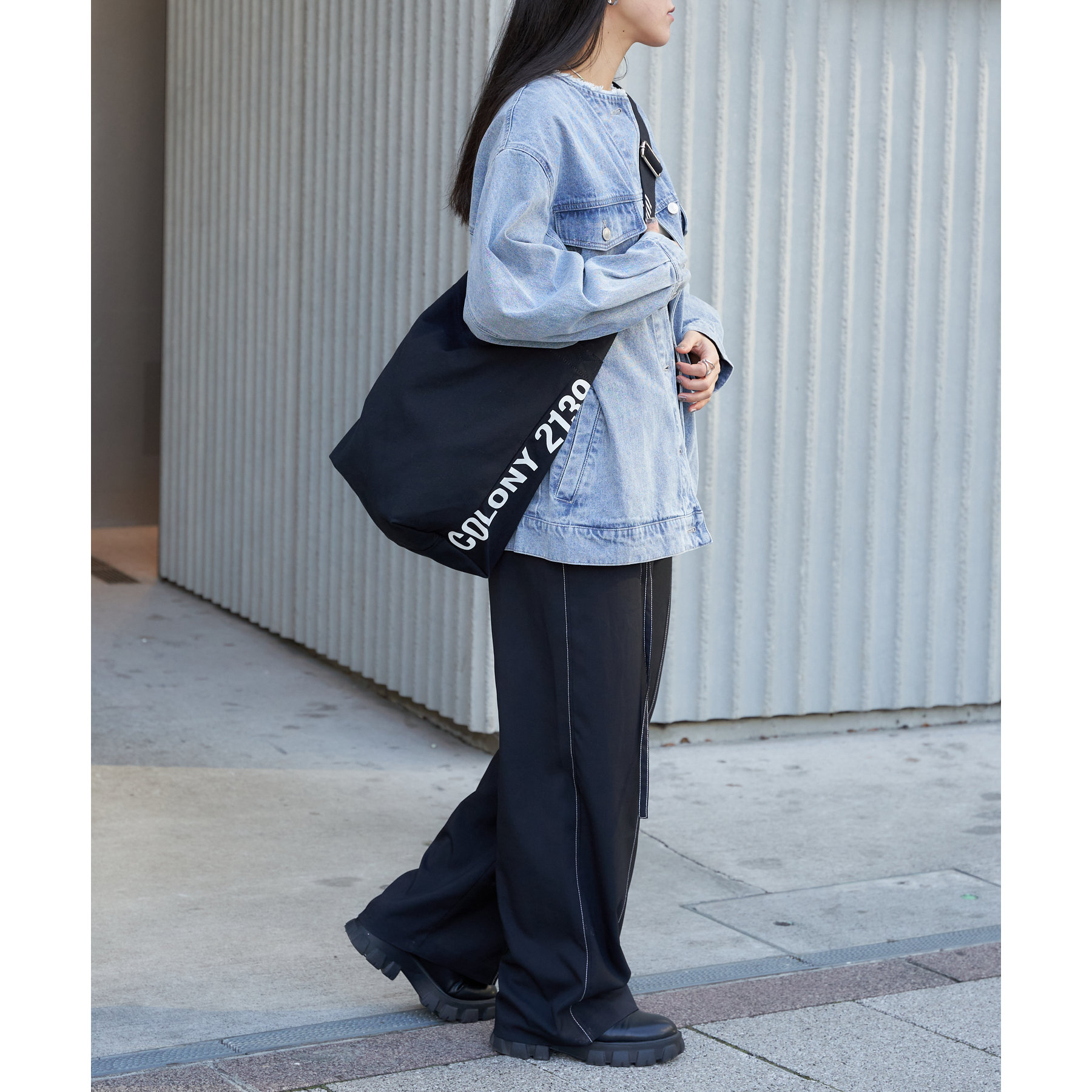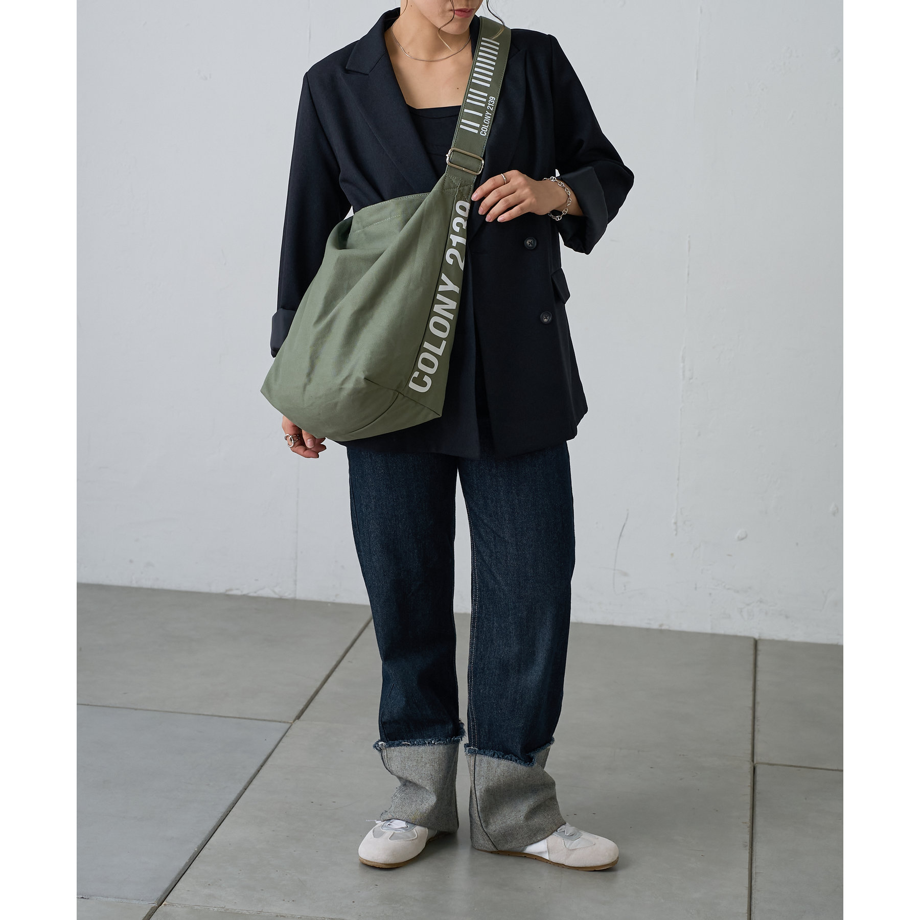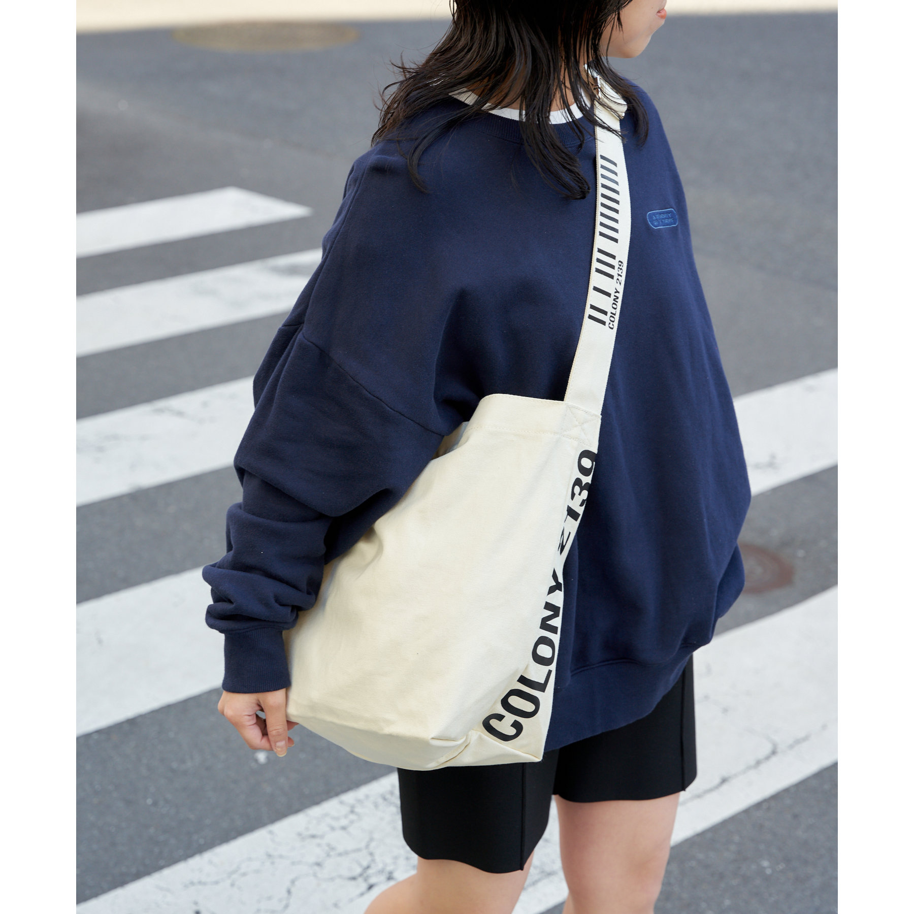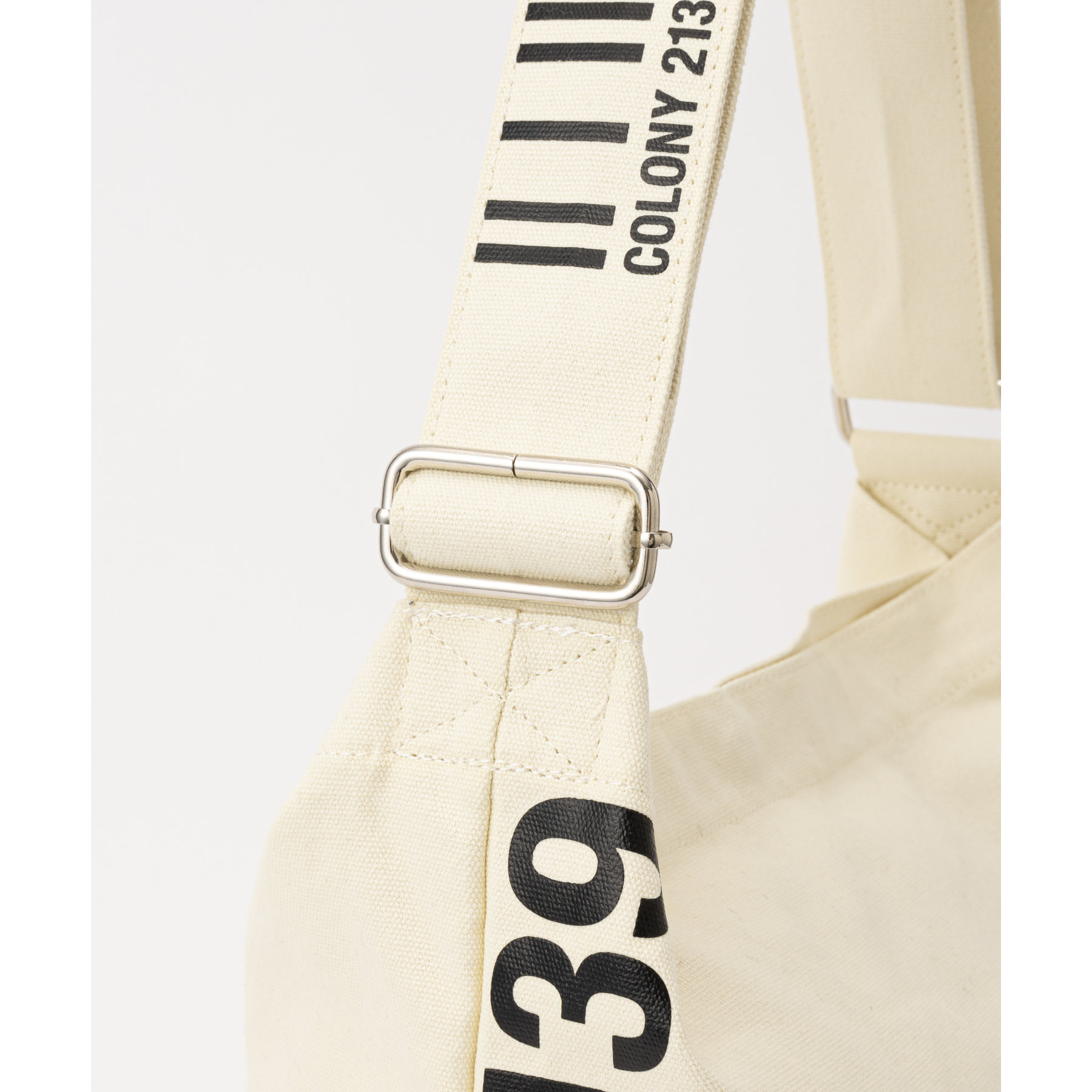 縦に入ったCOLONY 2139のロゴと、ショルダーストラップに入ったバーコードロゴのプリントが程よいアクセントになっています。