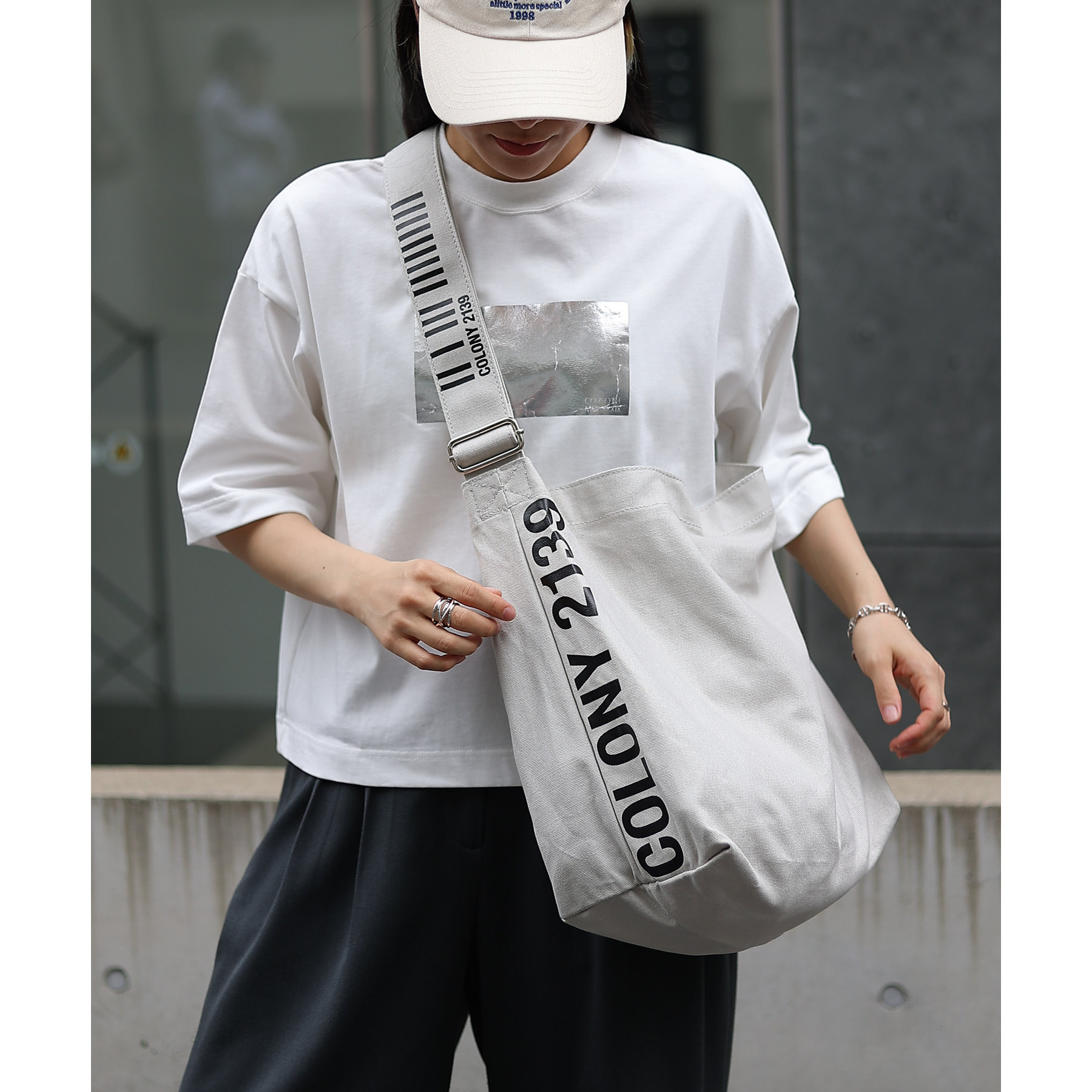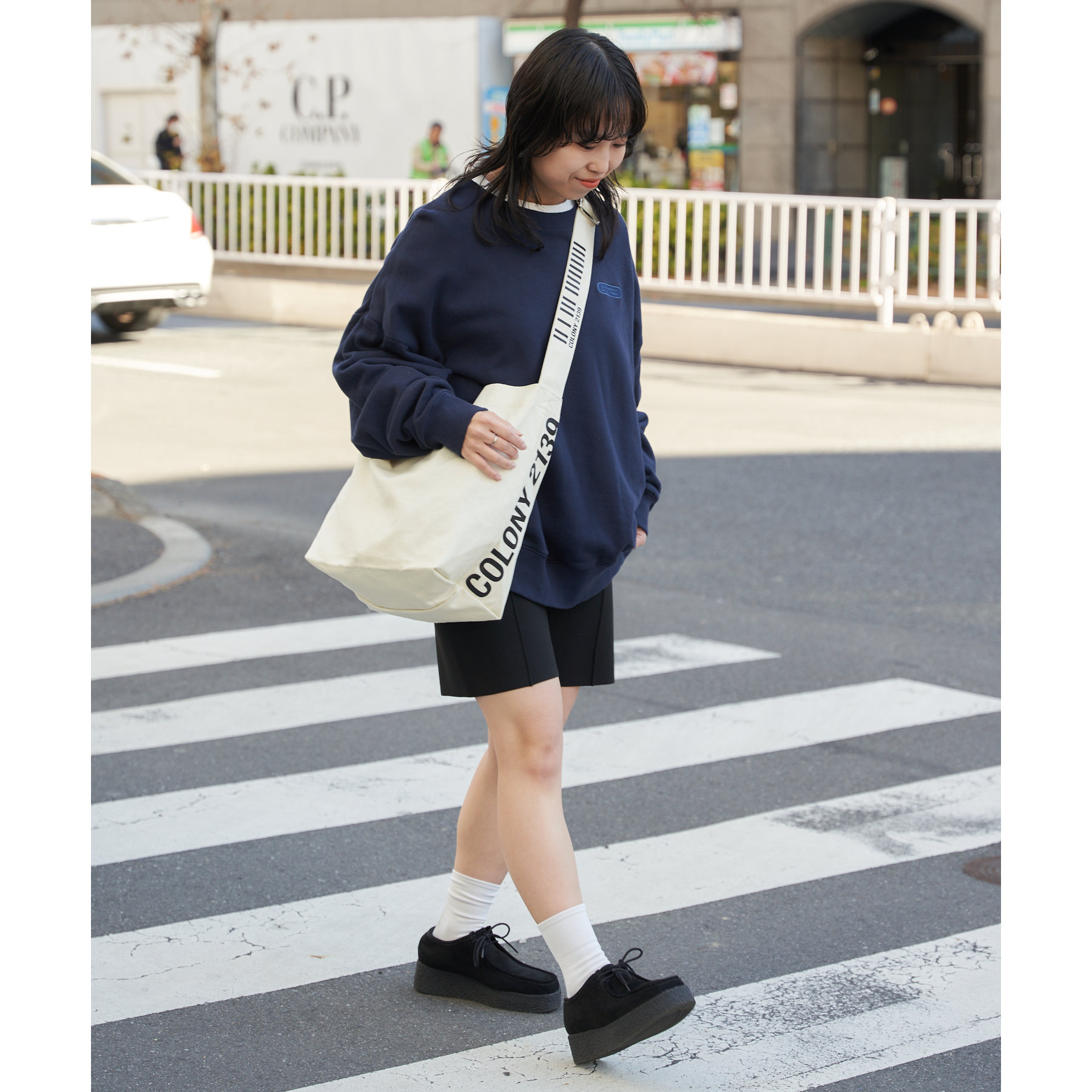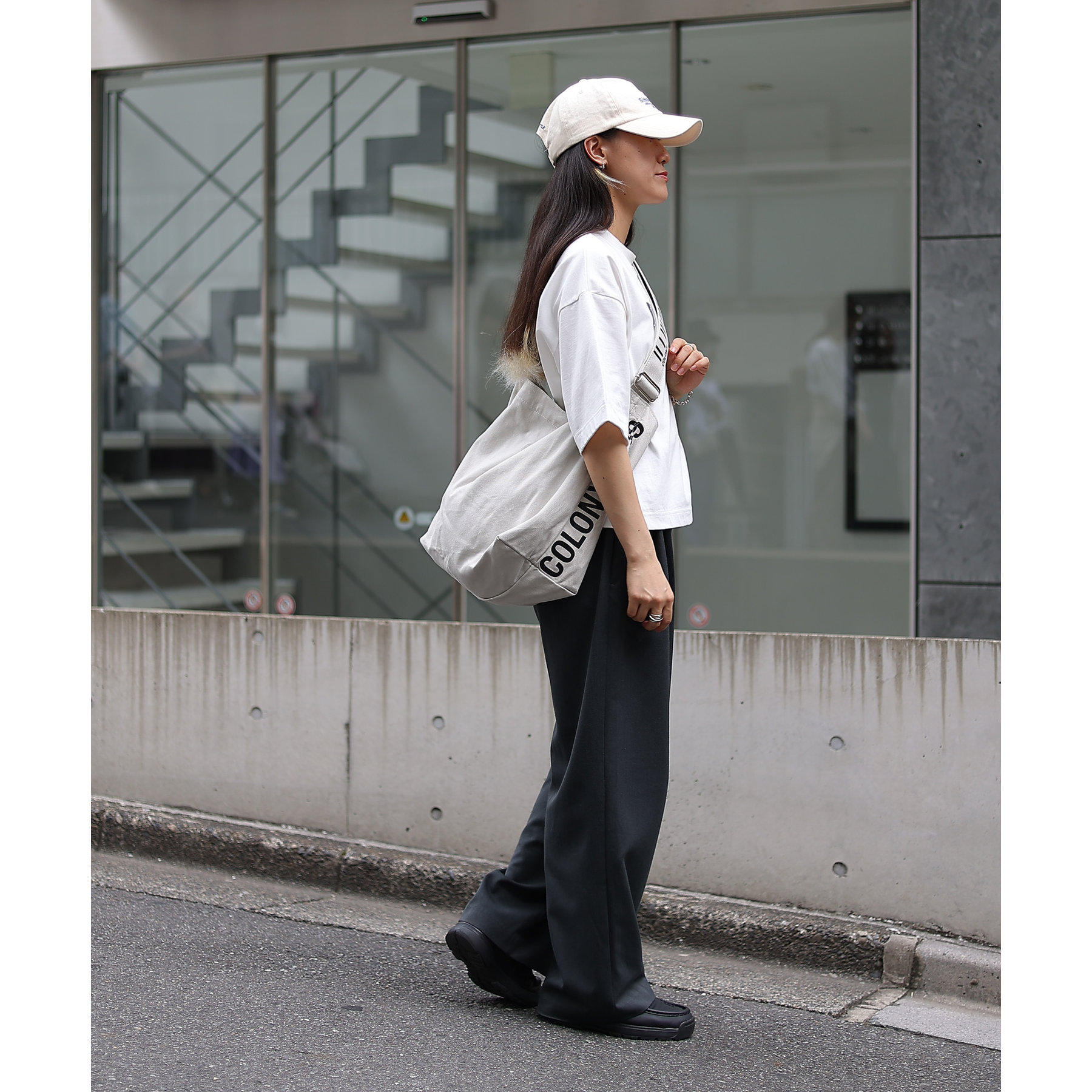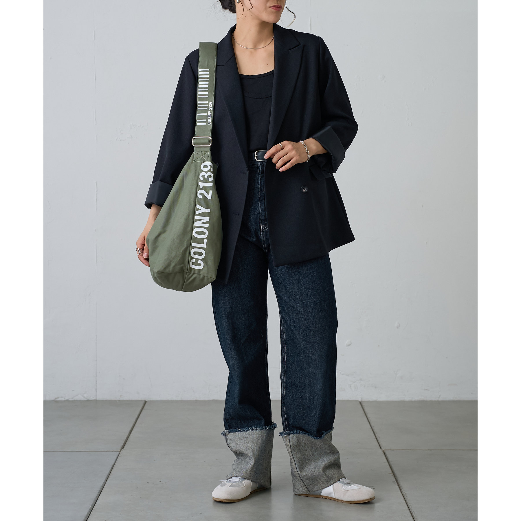 縦に入ったCOLONY 2139のロゴと、ショルダーストラップに入ったバーコードロゴのプリントが程よいアクセントになっています。