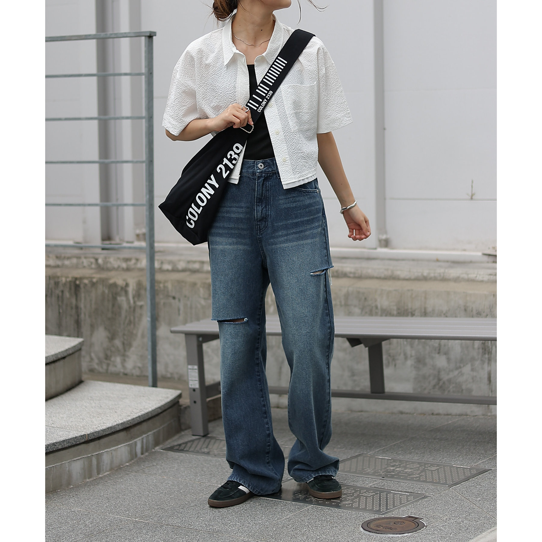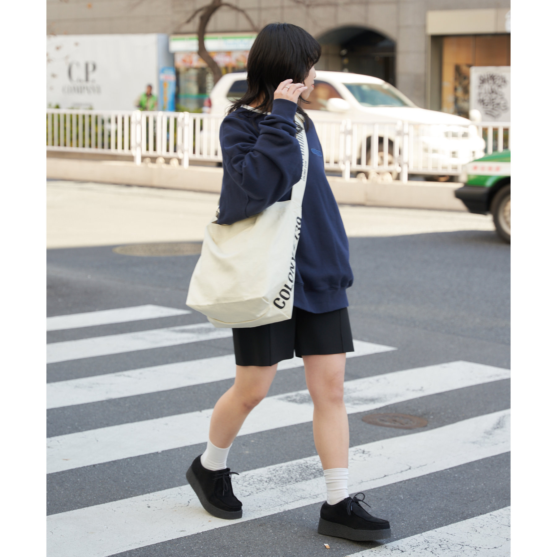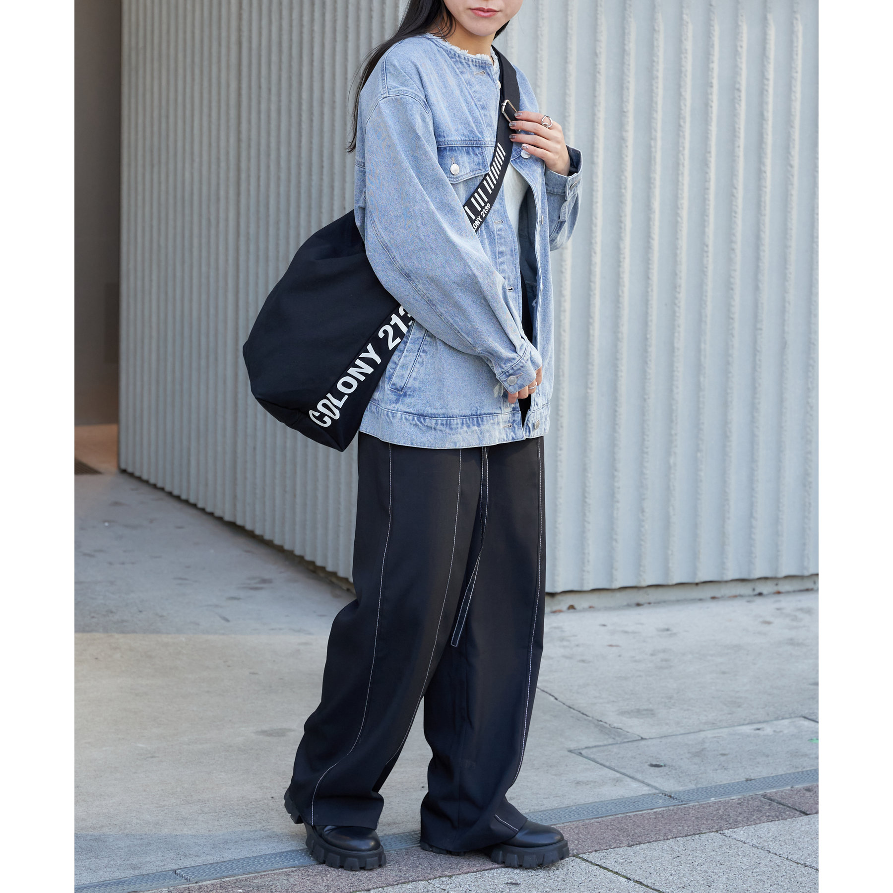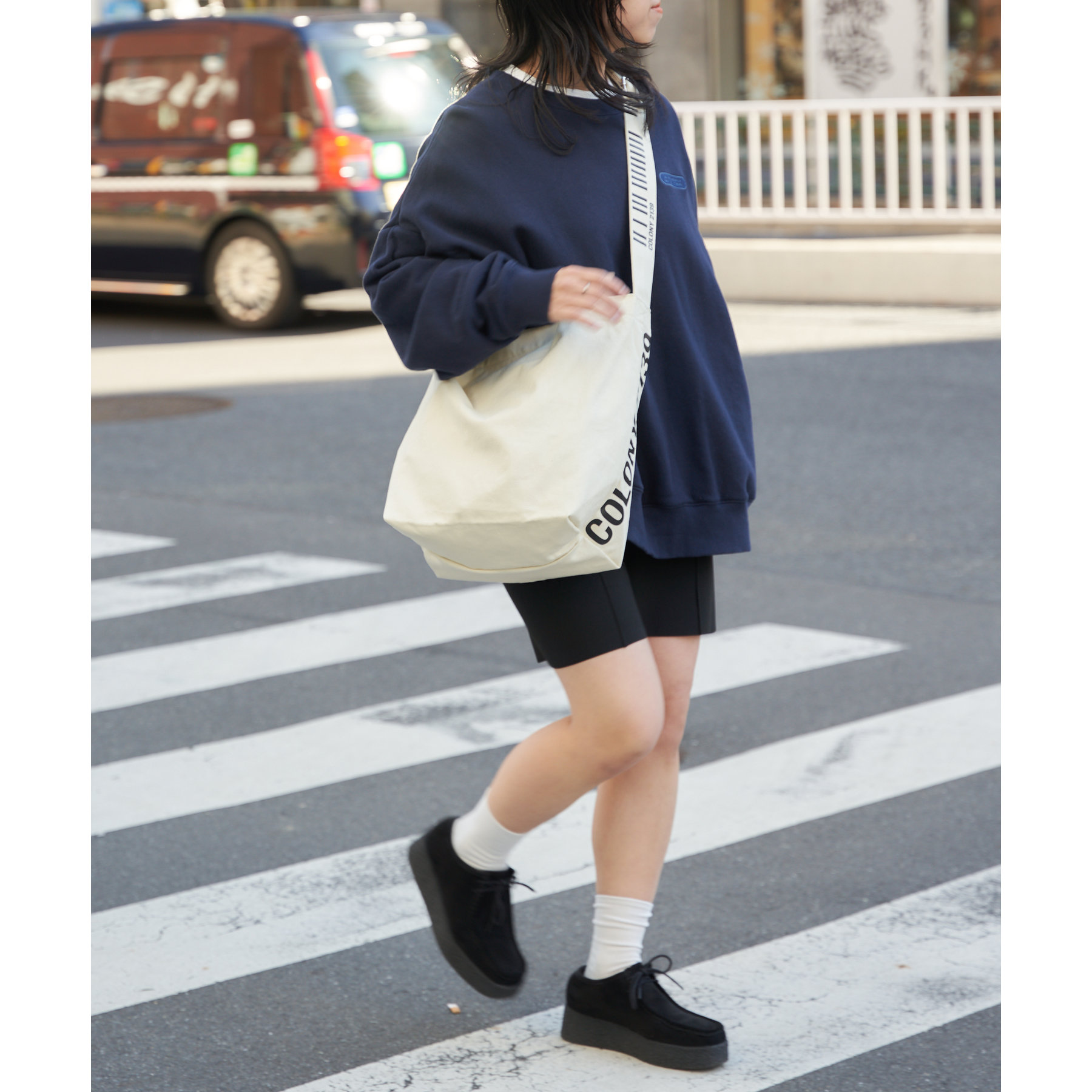 縦に入ったCOLONY 2139のロゴと、ショルダーストラップに入ったバーコードロゴのプリントが程よいアクセントになっています。