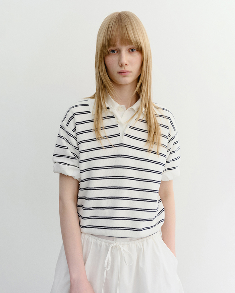 UNISEX SOFT STRIPED POLO KNIT OFF WHITE_UDSW6B121OW
