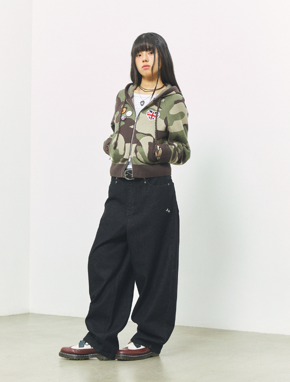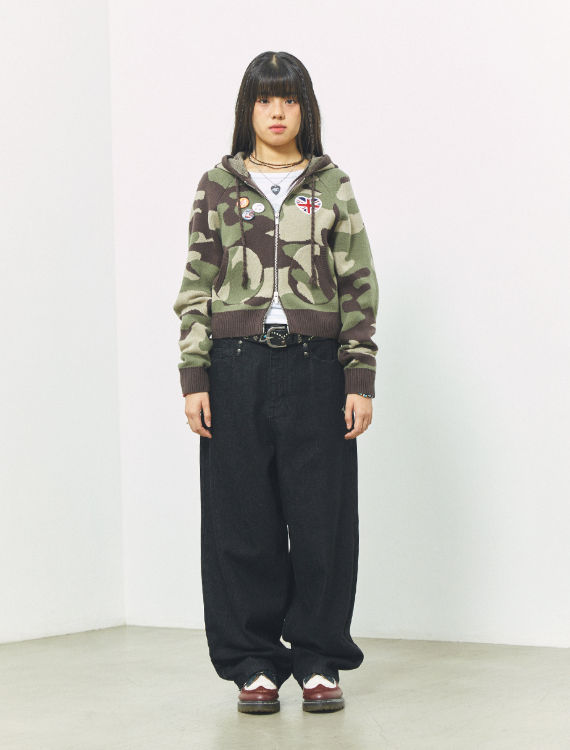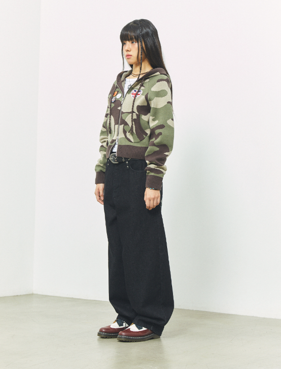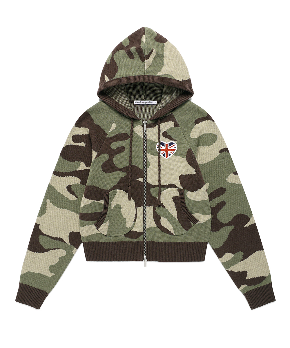 W UNION JACK KNIT ZIP UP HOODIE[CAMO]