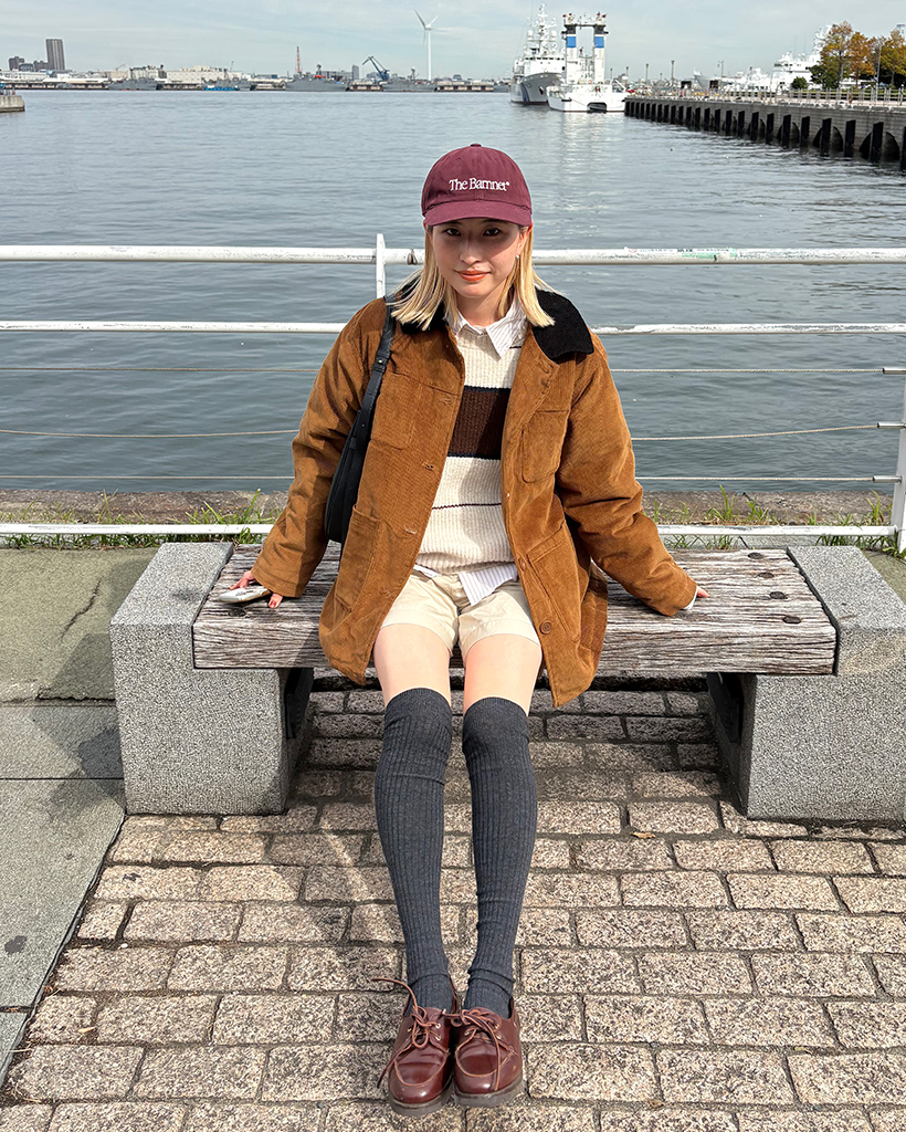 ファブリックカラーとコントラストをなすホワイトカラーを用いたロゴ刺繍ディテール