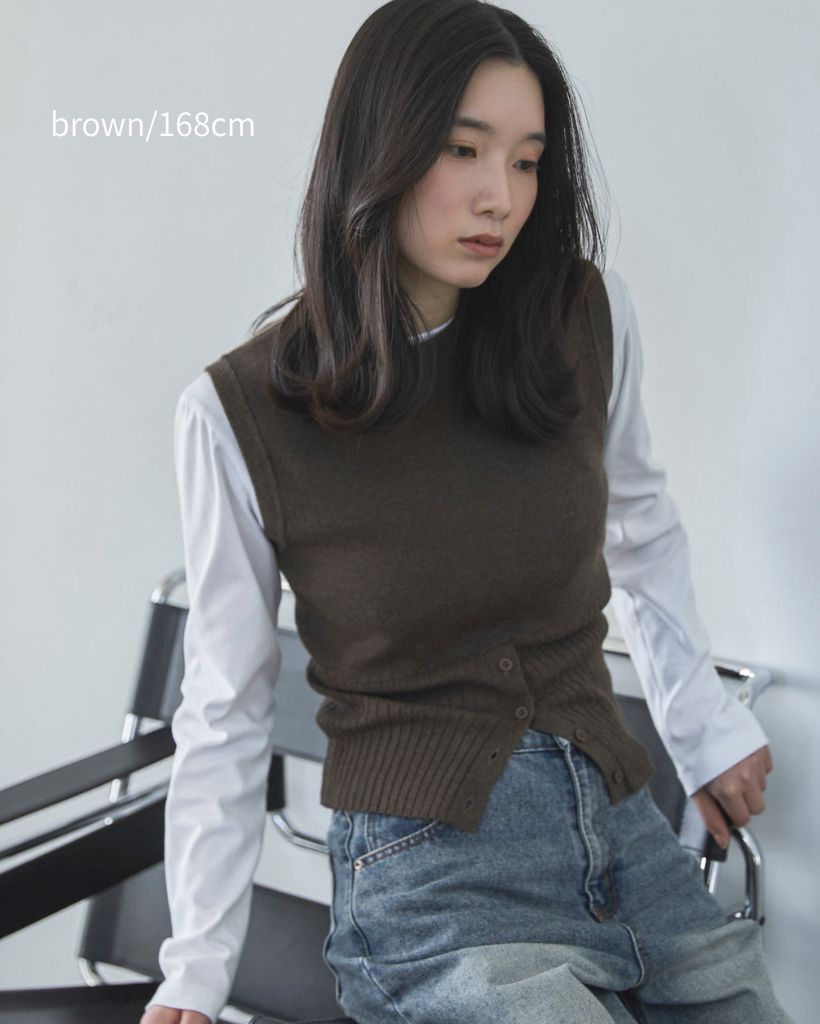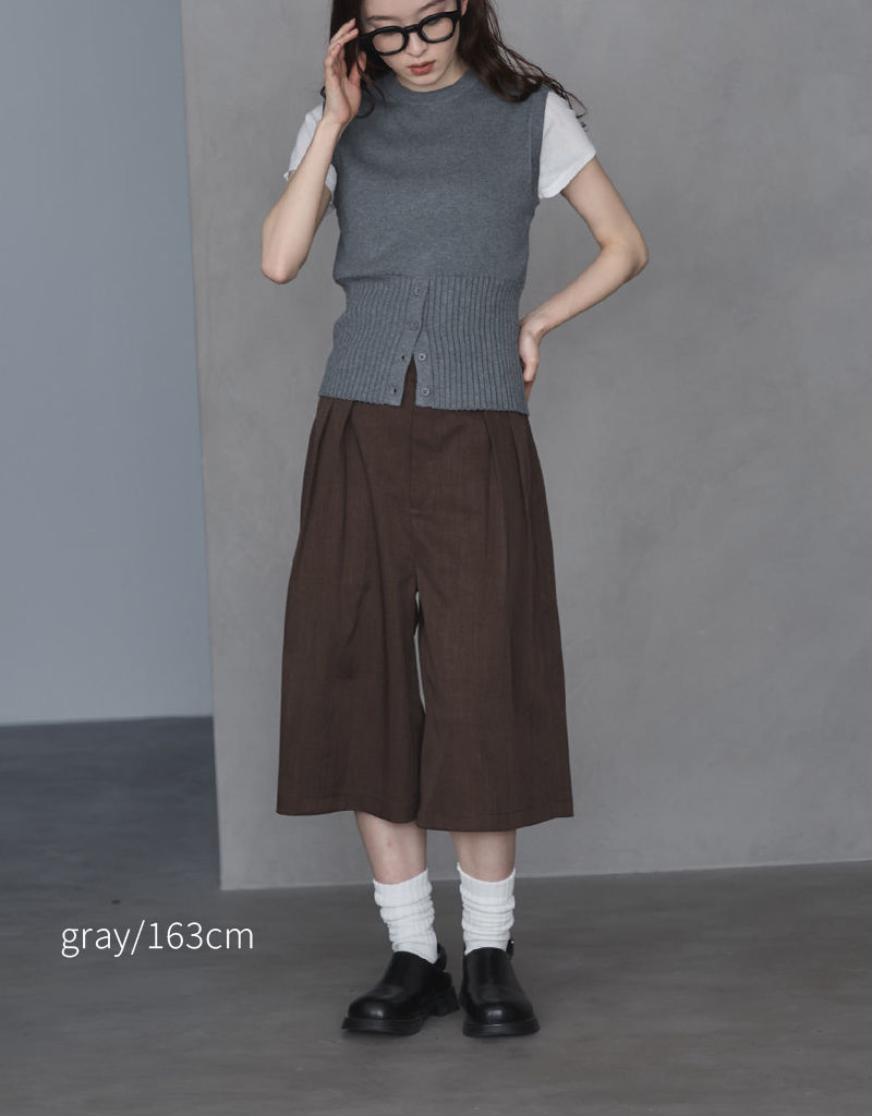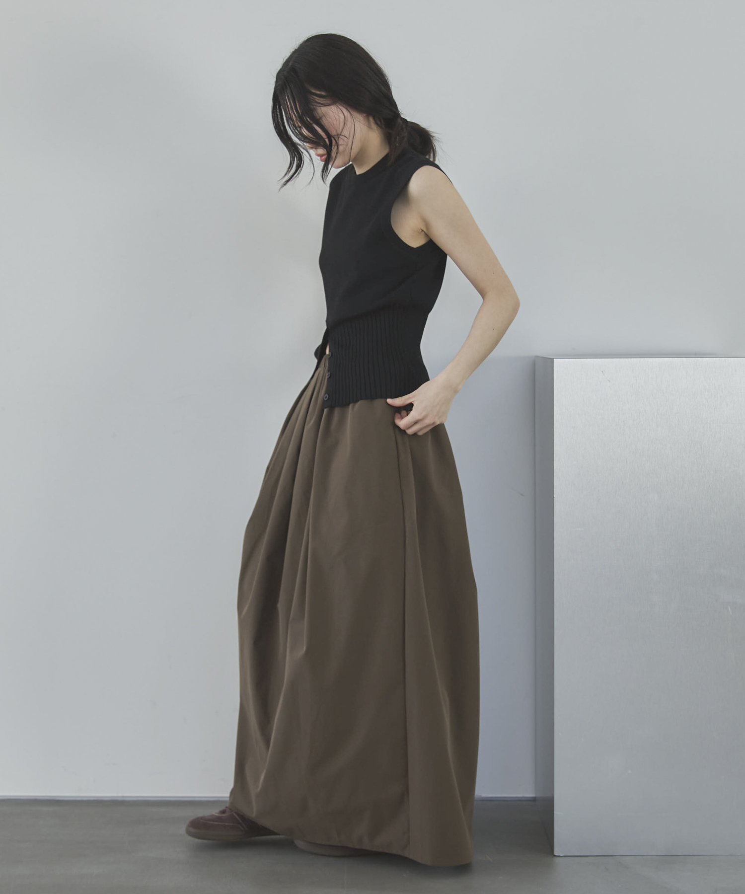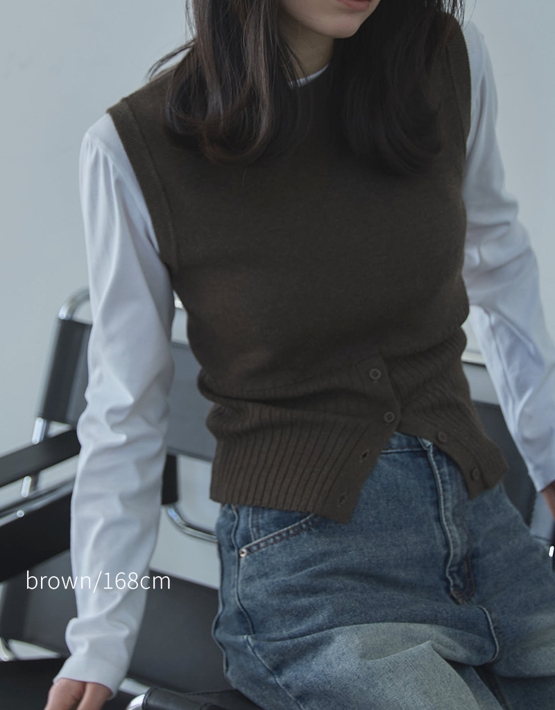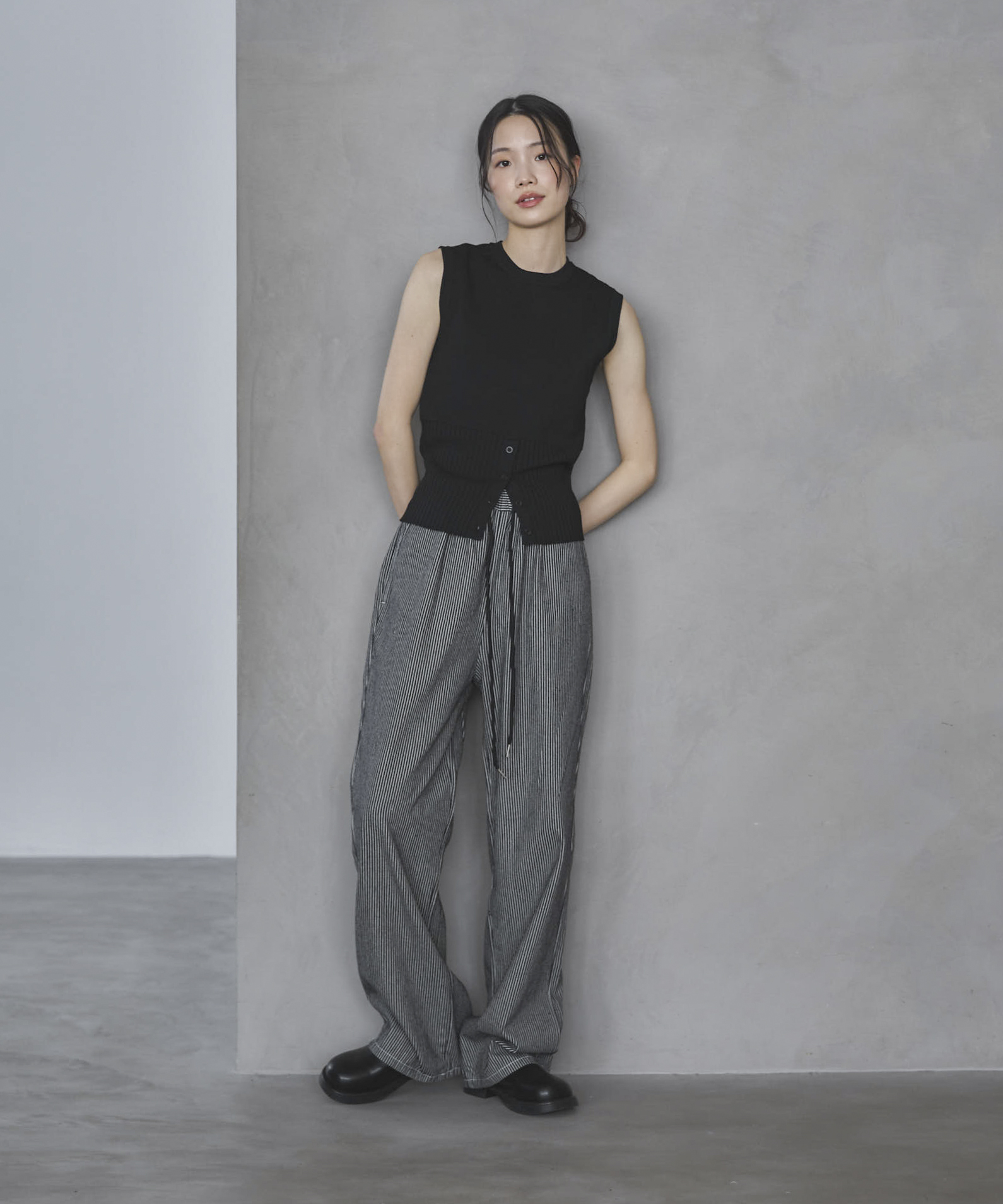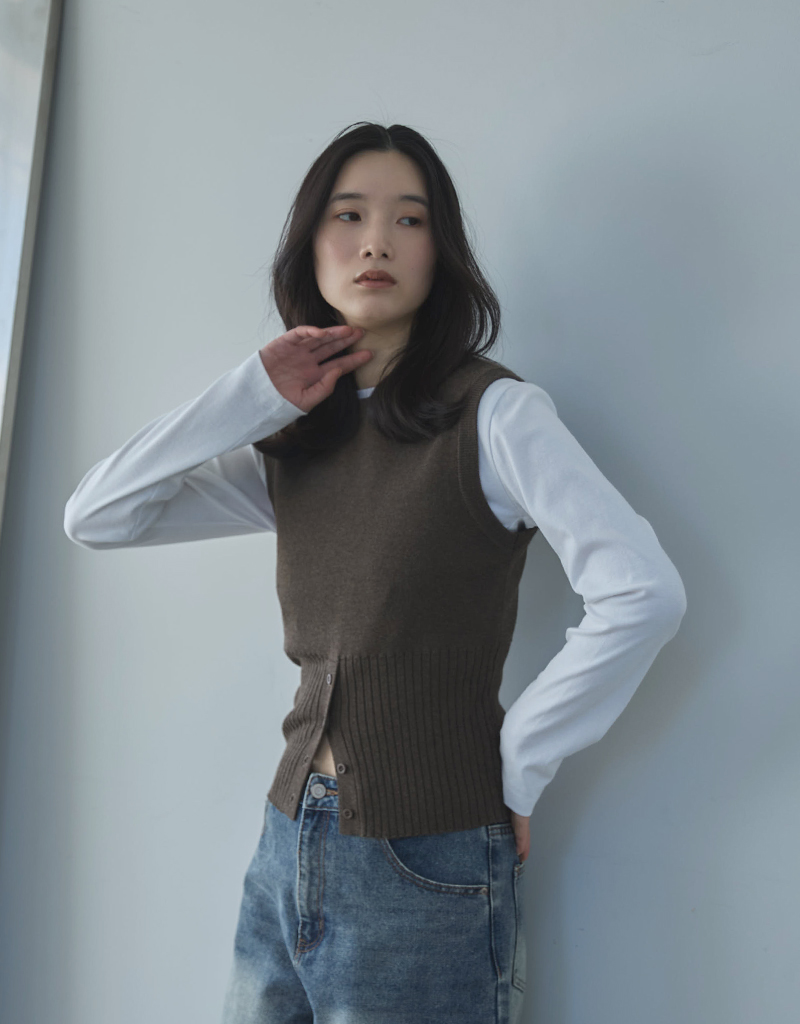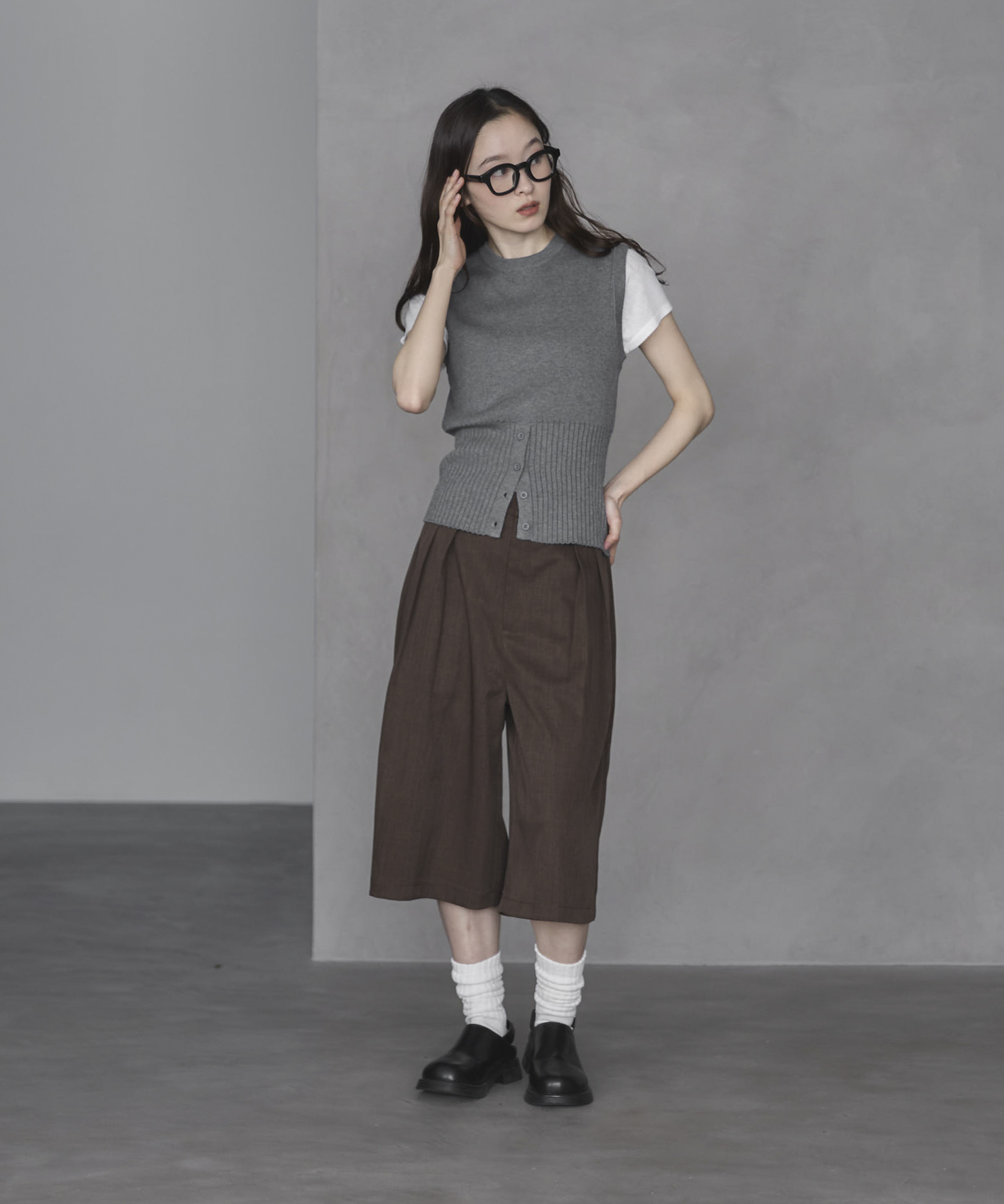 裾のボタンディティールで抜け感のある雰囲気を演出できるノースリーブニット。