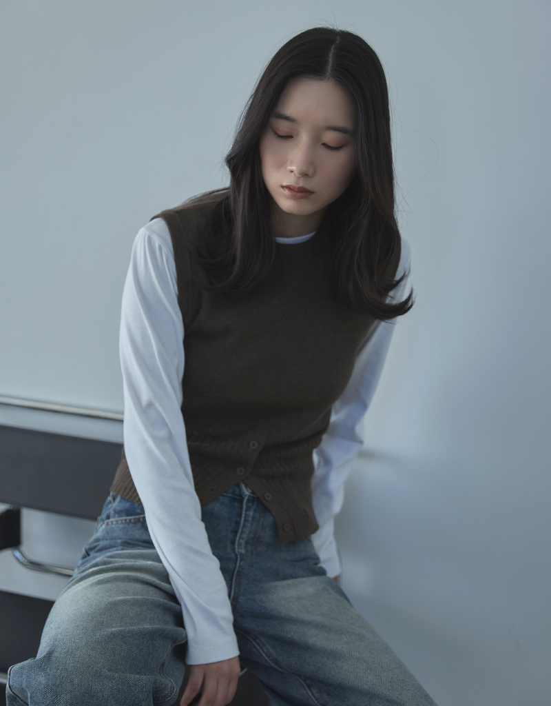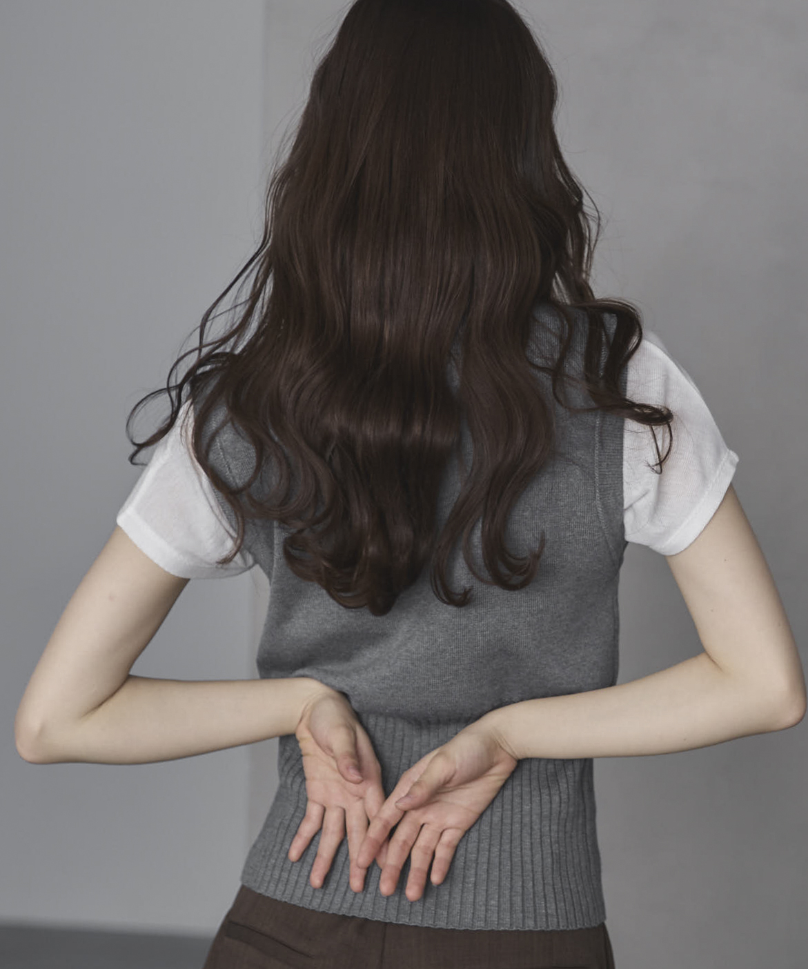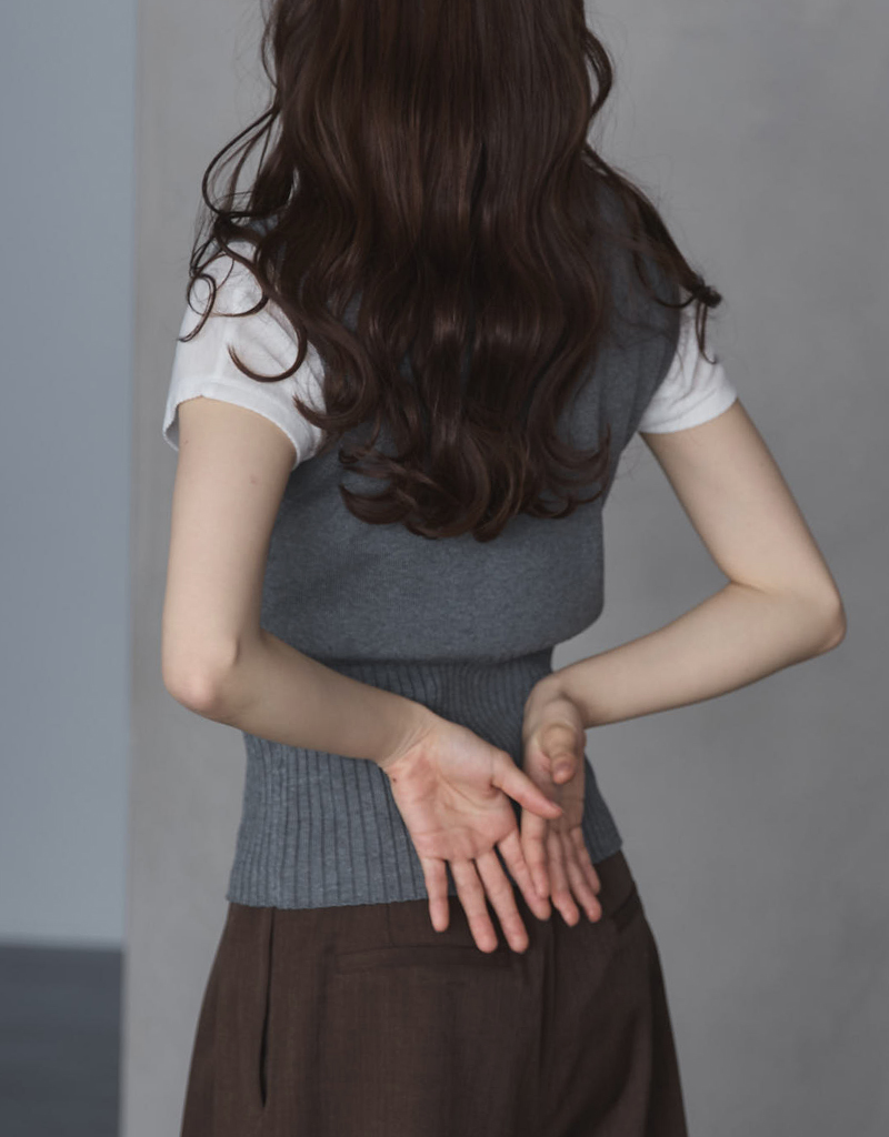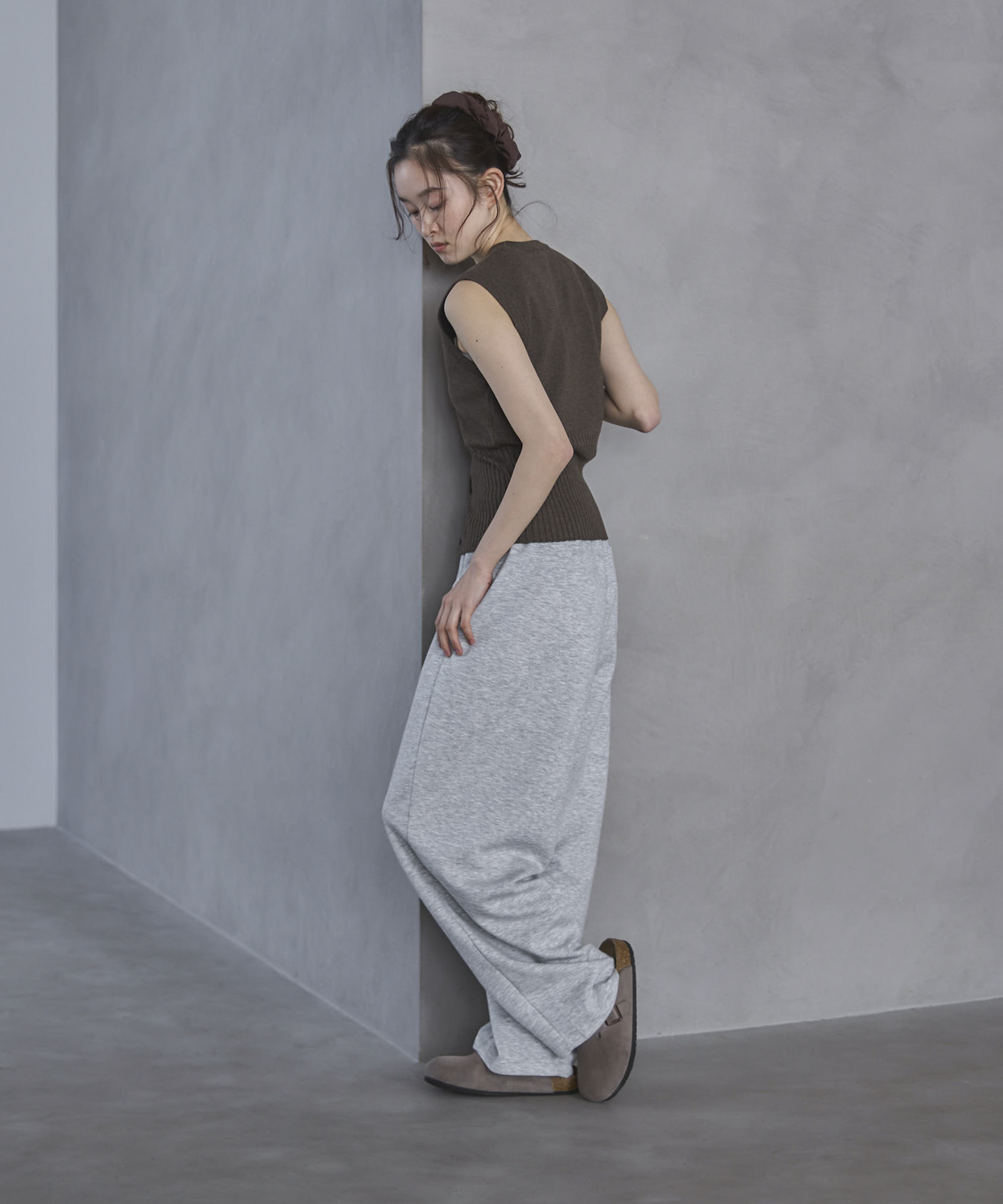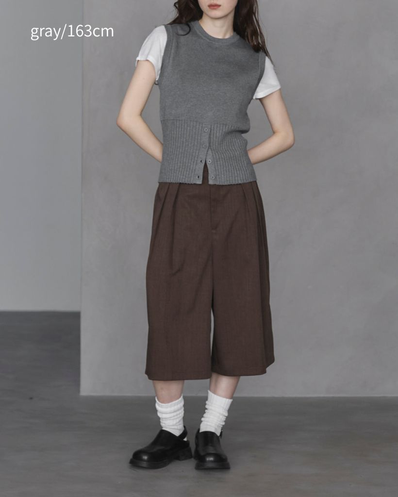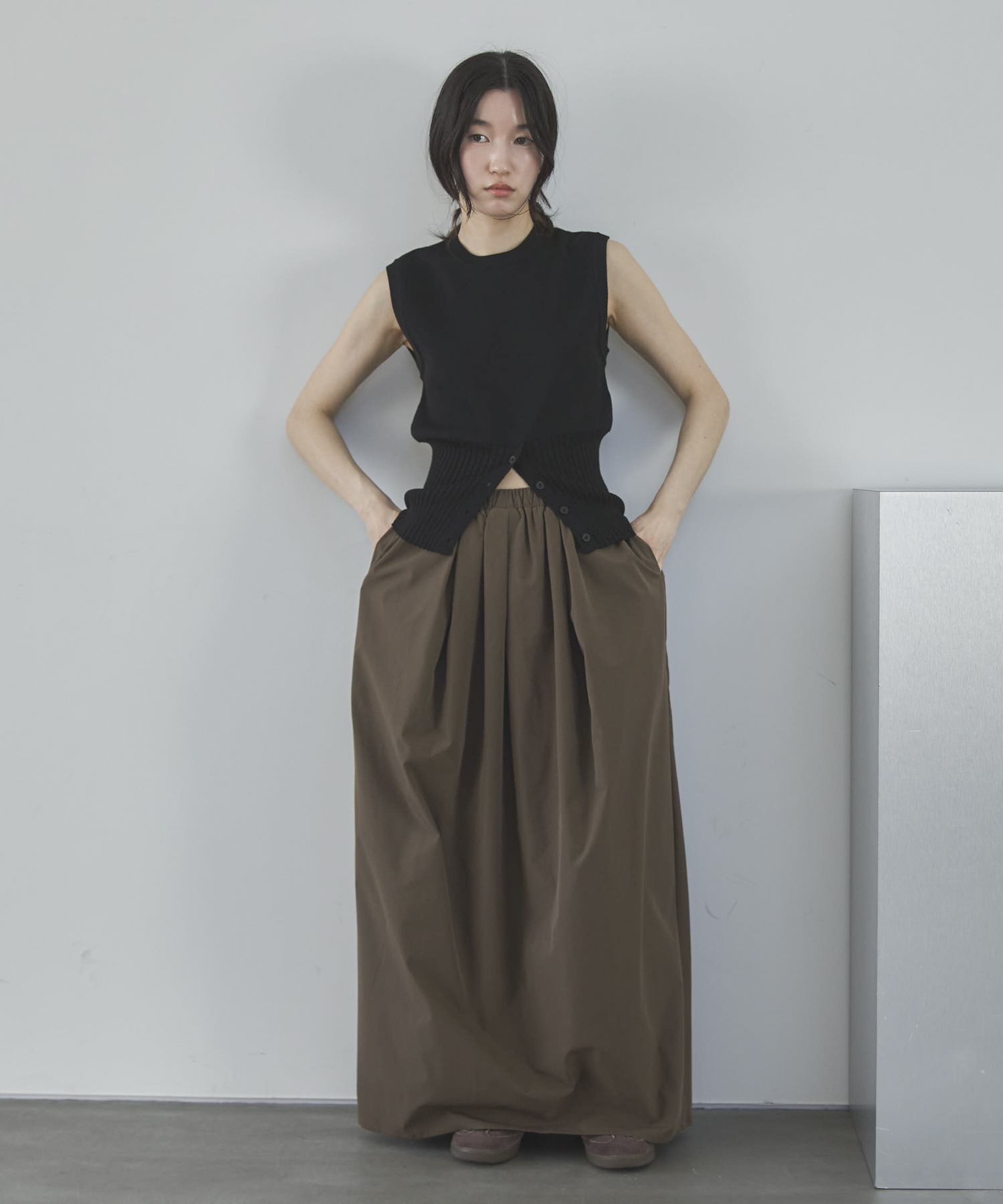 裾のボタンディティールで抜け感のある雰囲気を演出できるノースリーブニット。