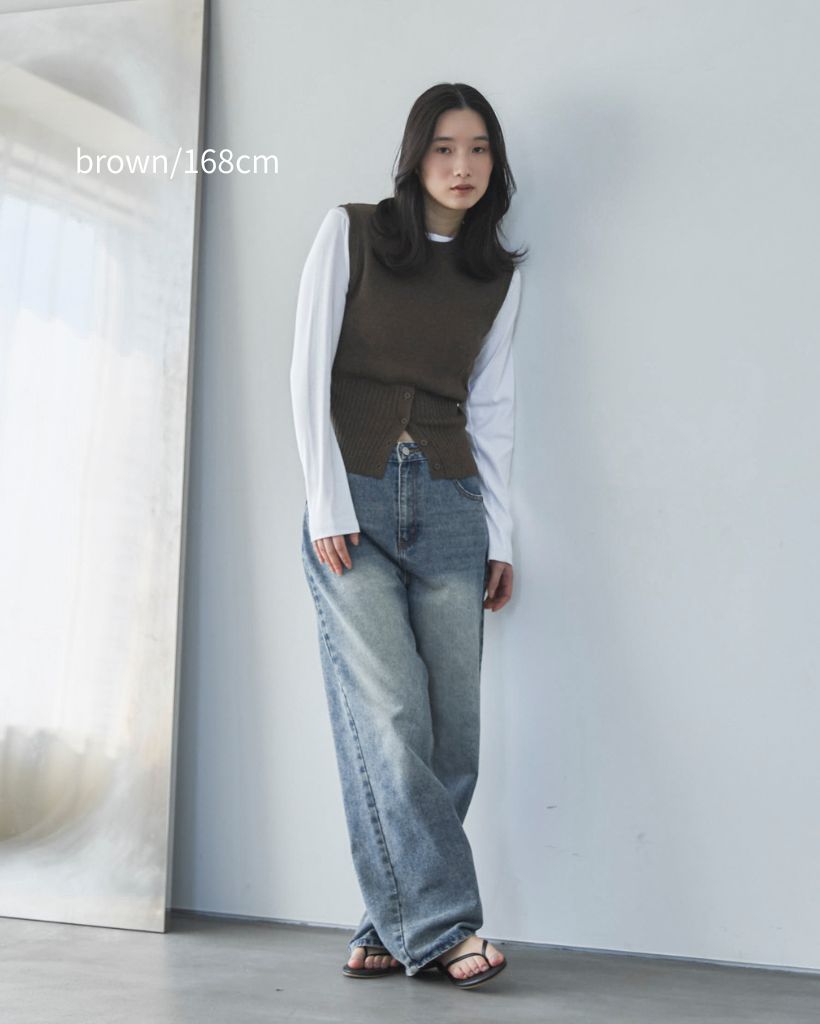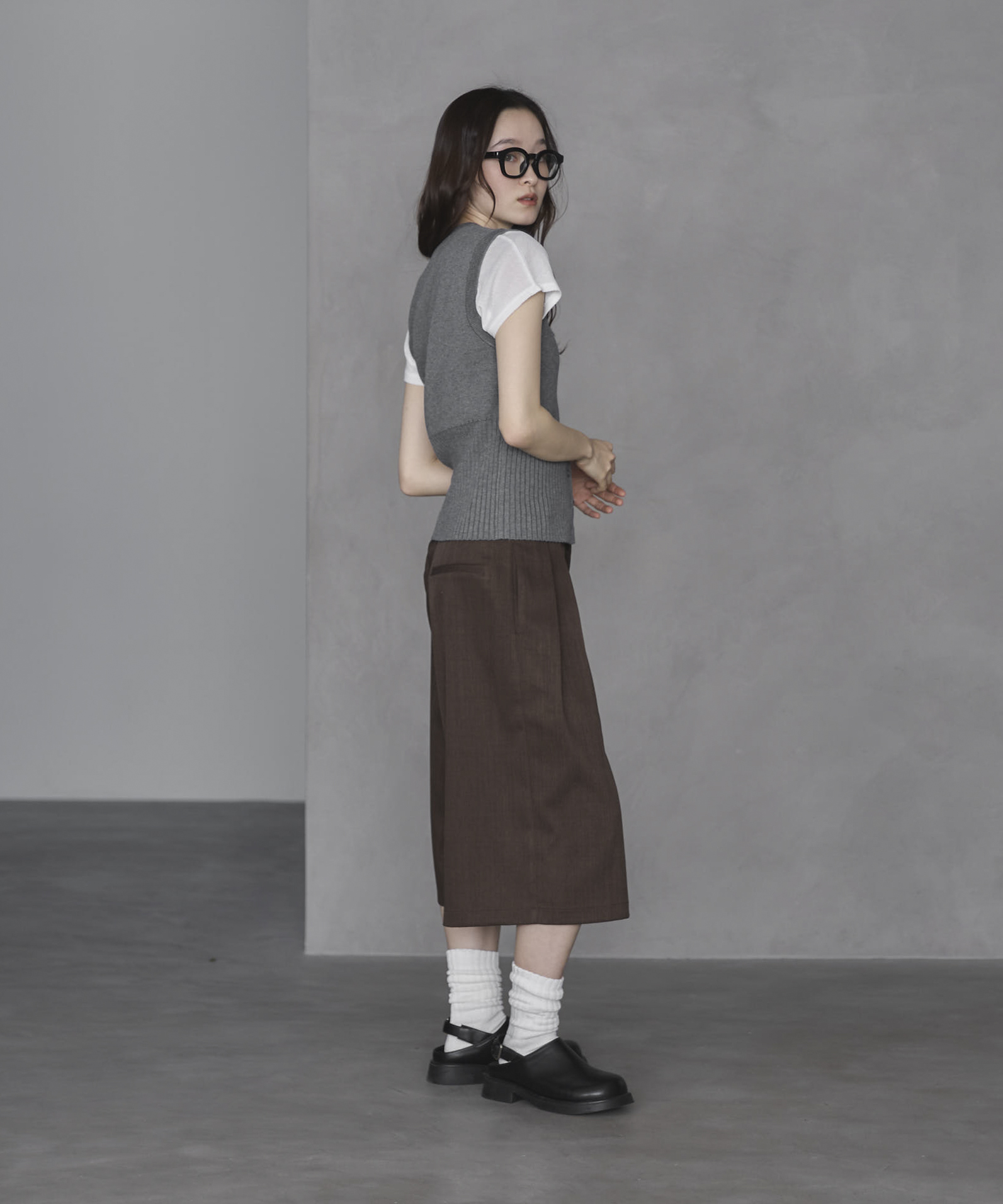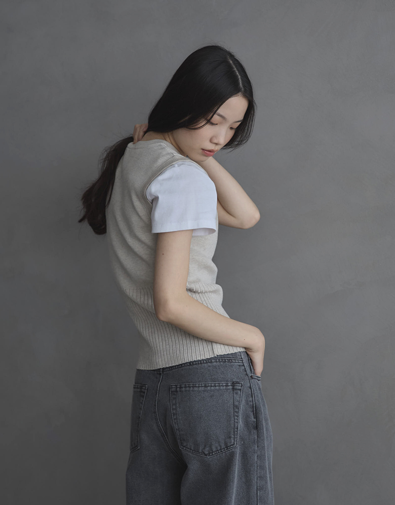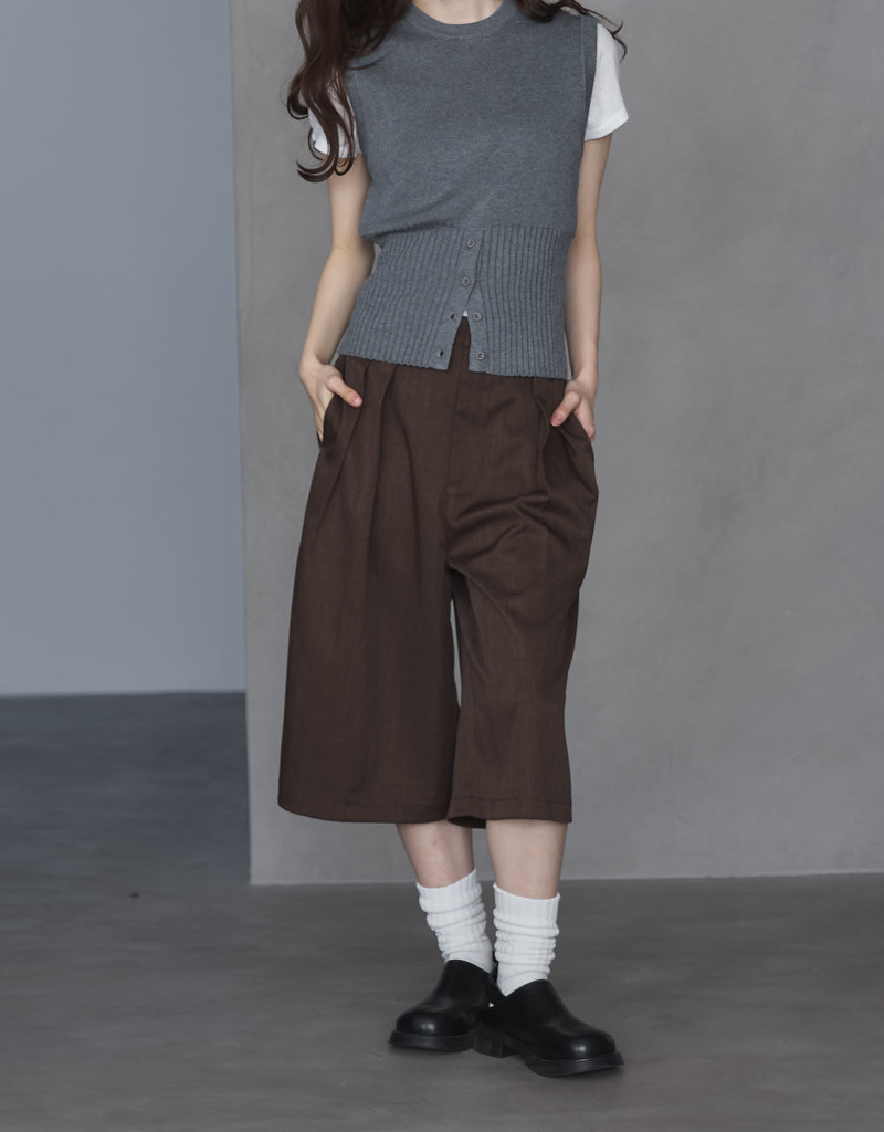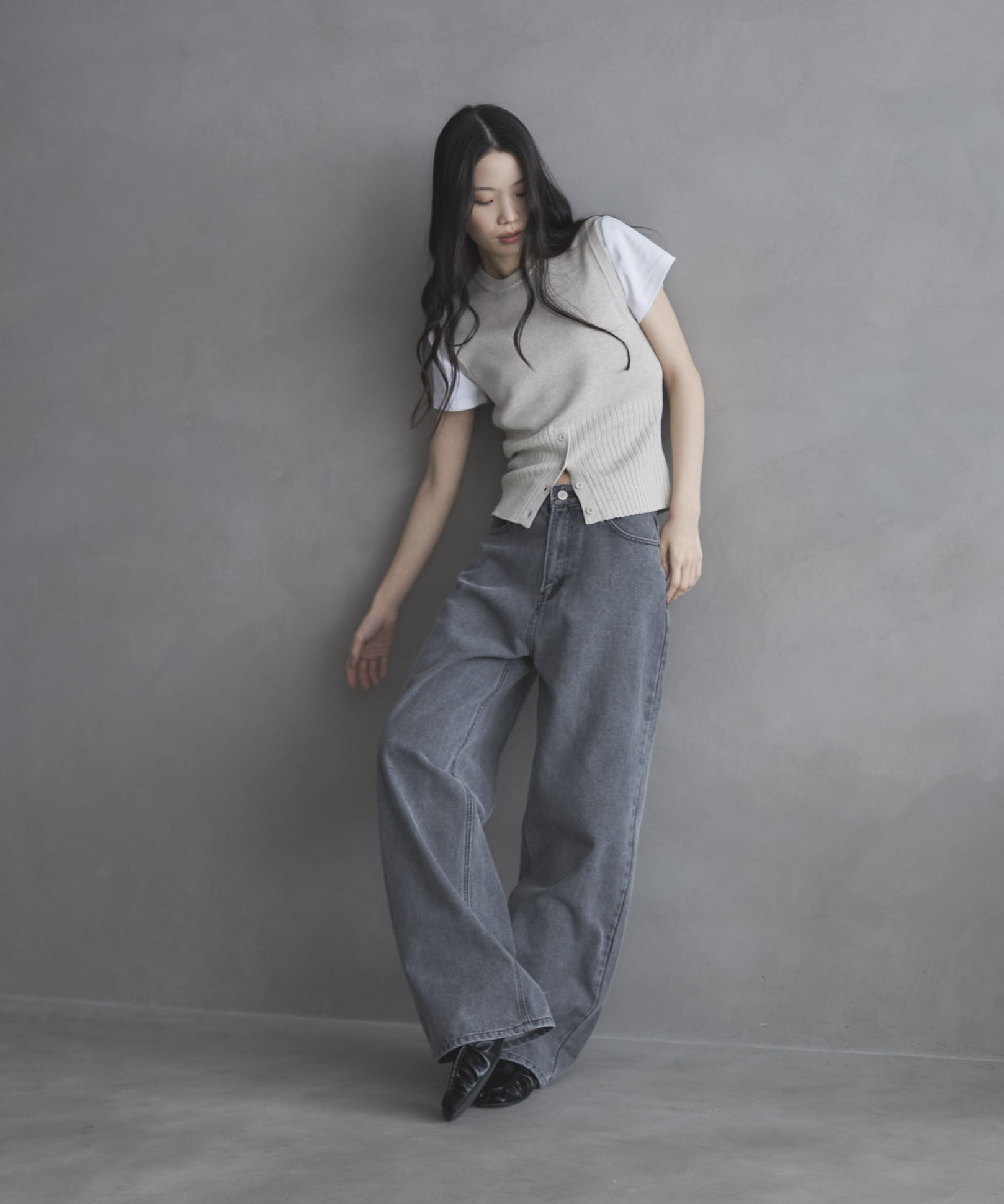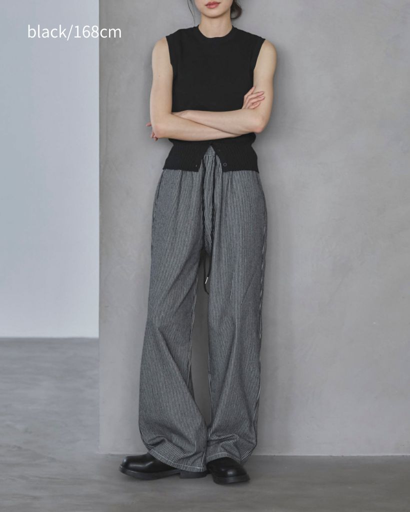 裾のボタンディティールで抜け感のある雰囲気を演出できるノースリーブニット。