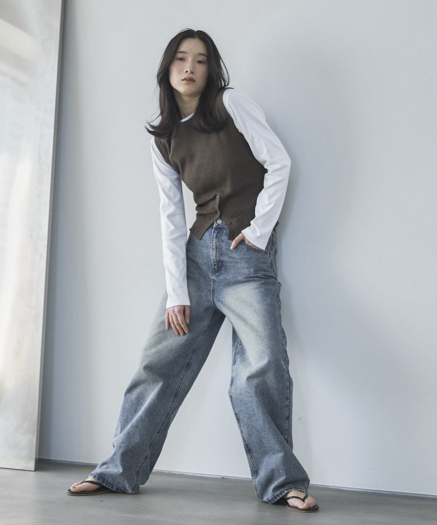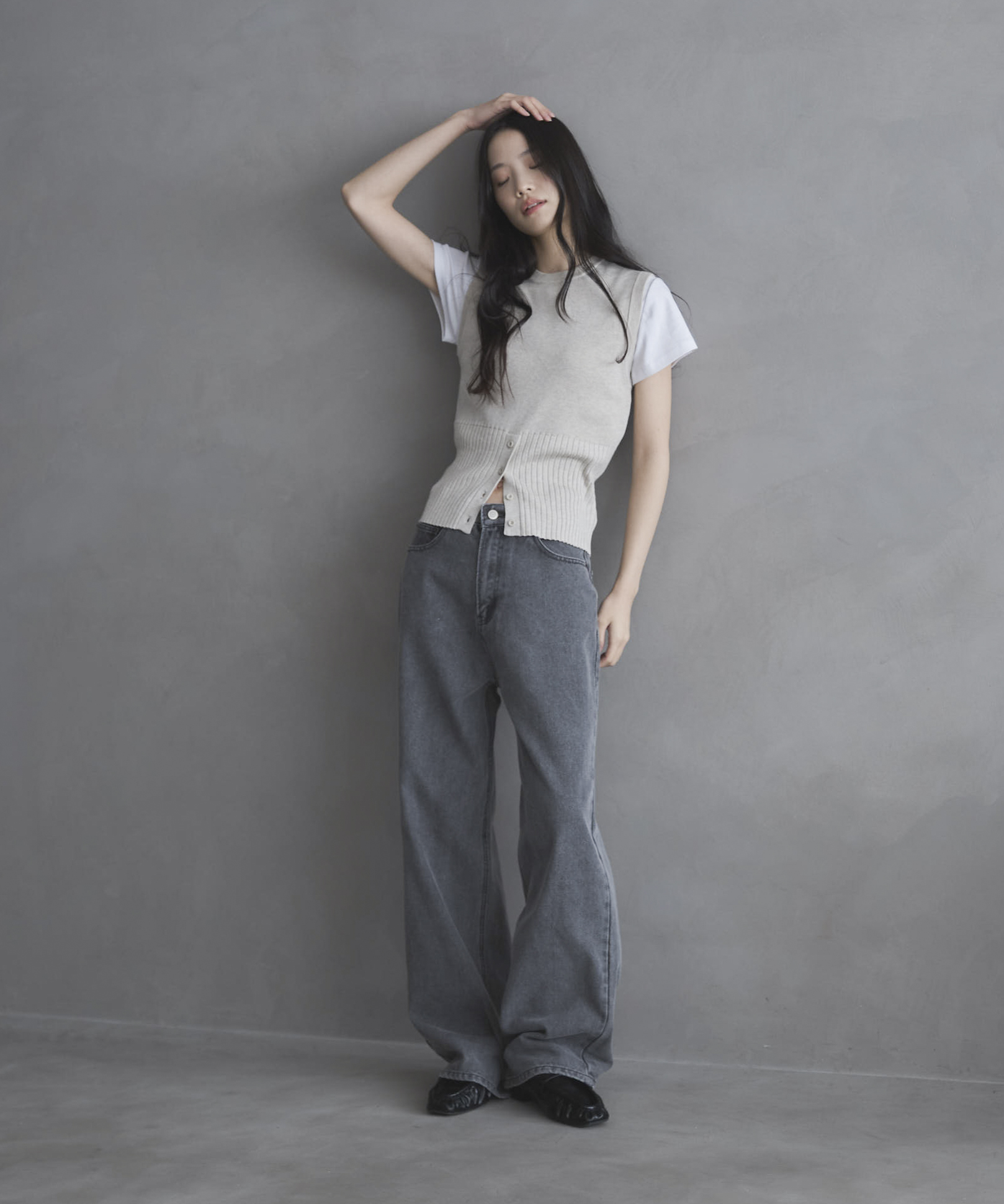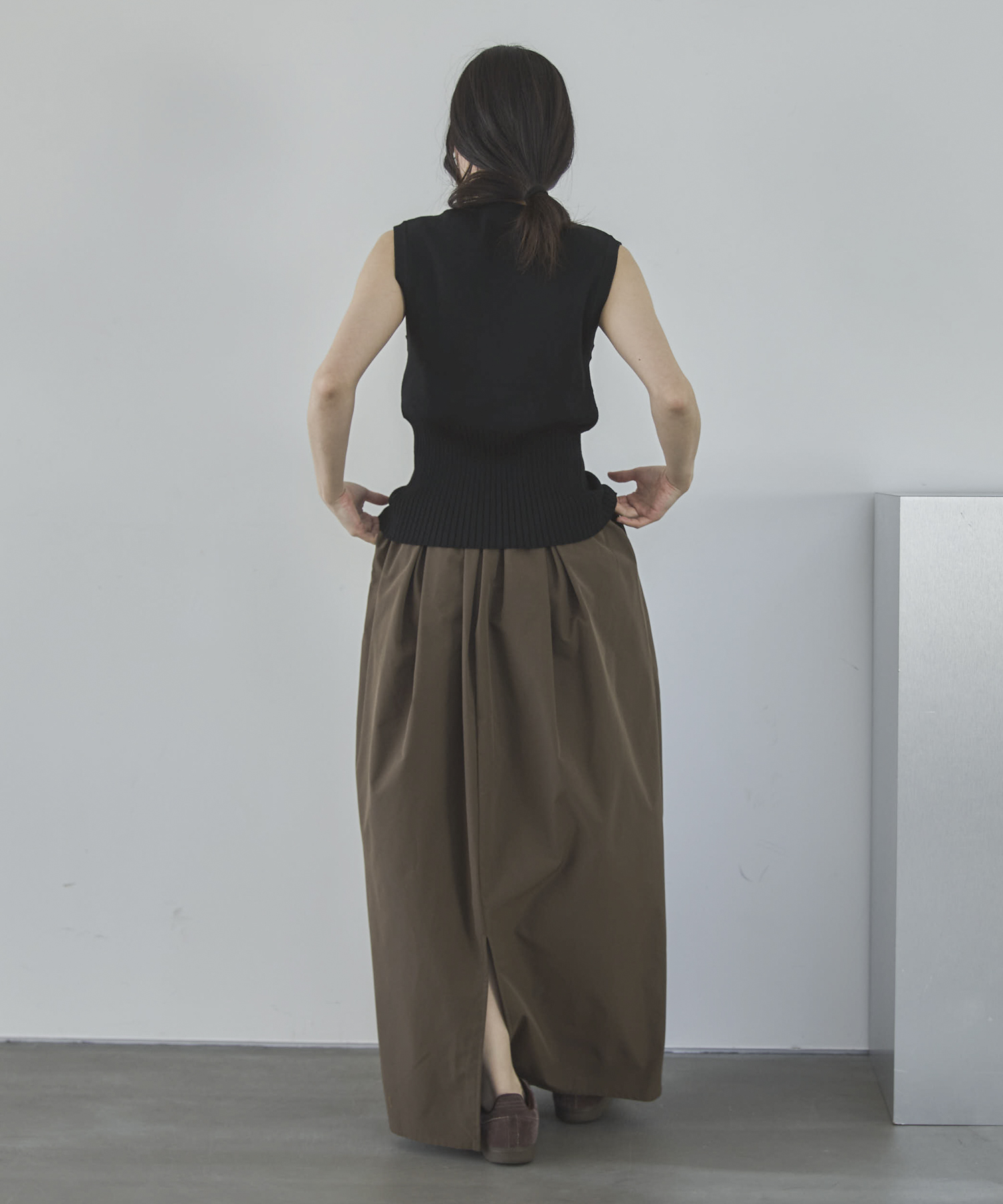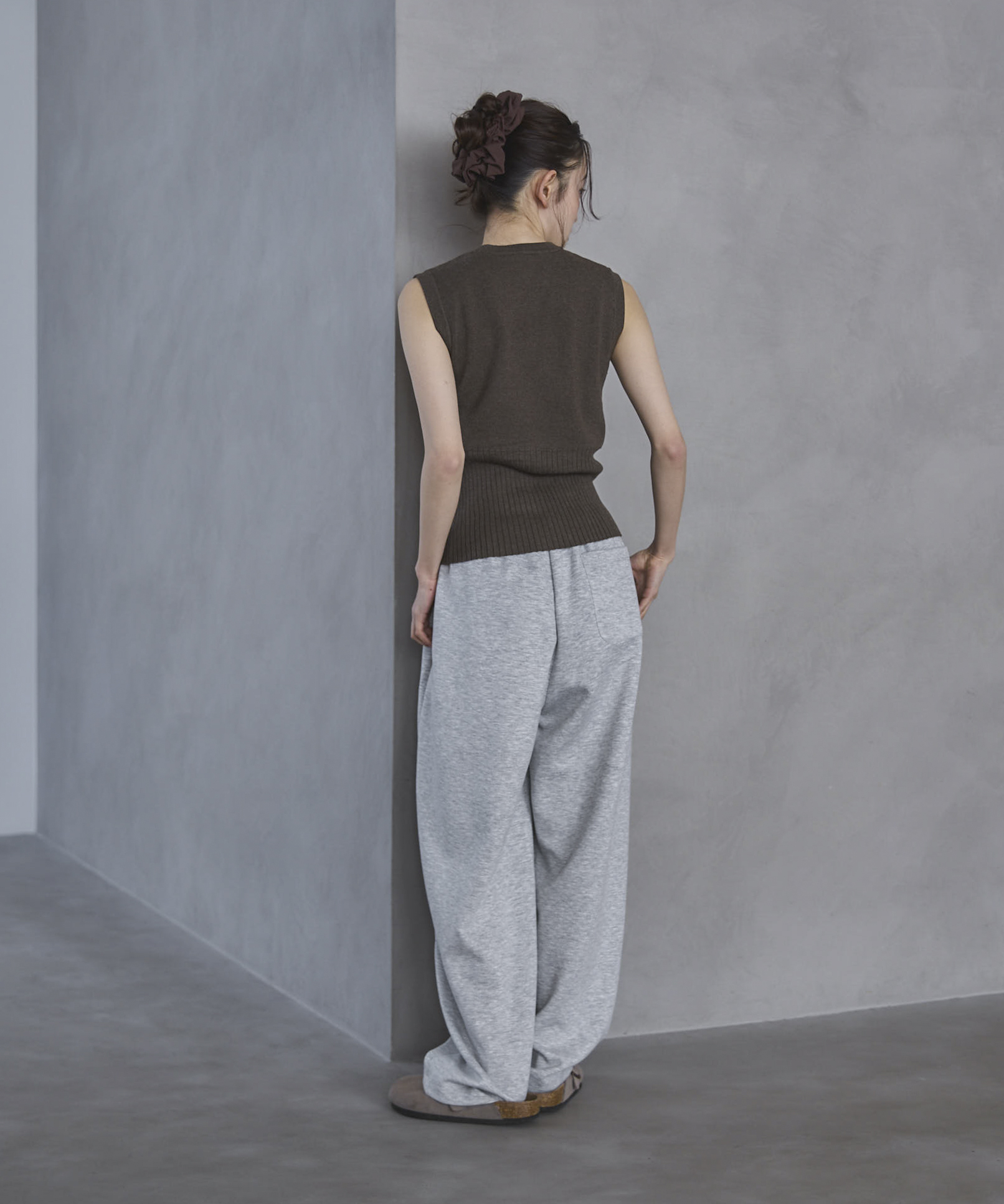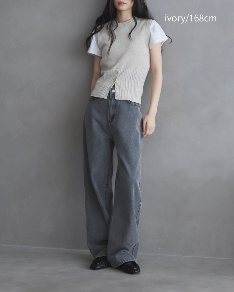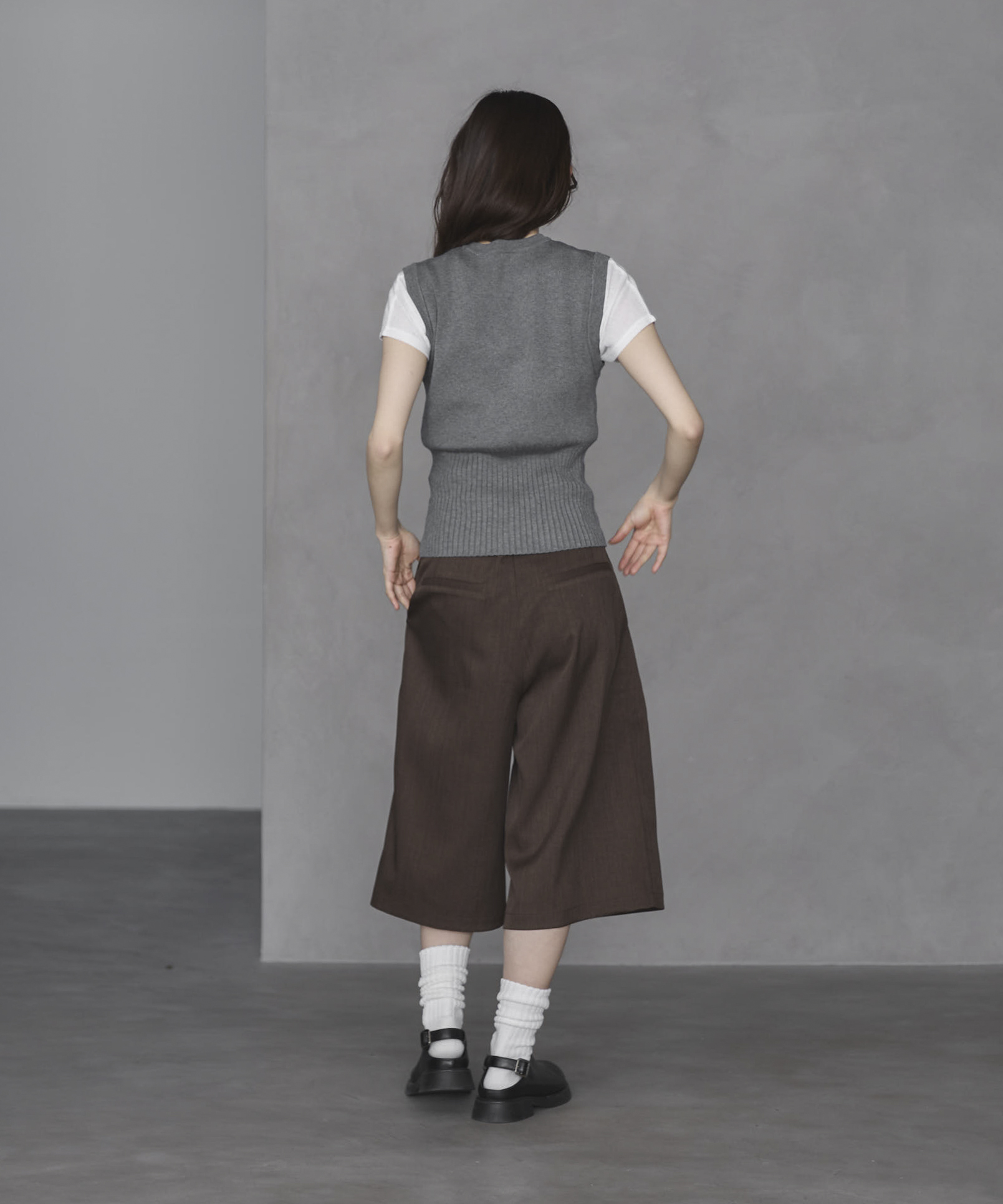 裾のボタンディティールで抜け感のある雰囲気を演出できるノースリーブニット。