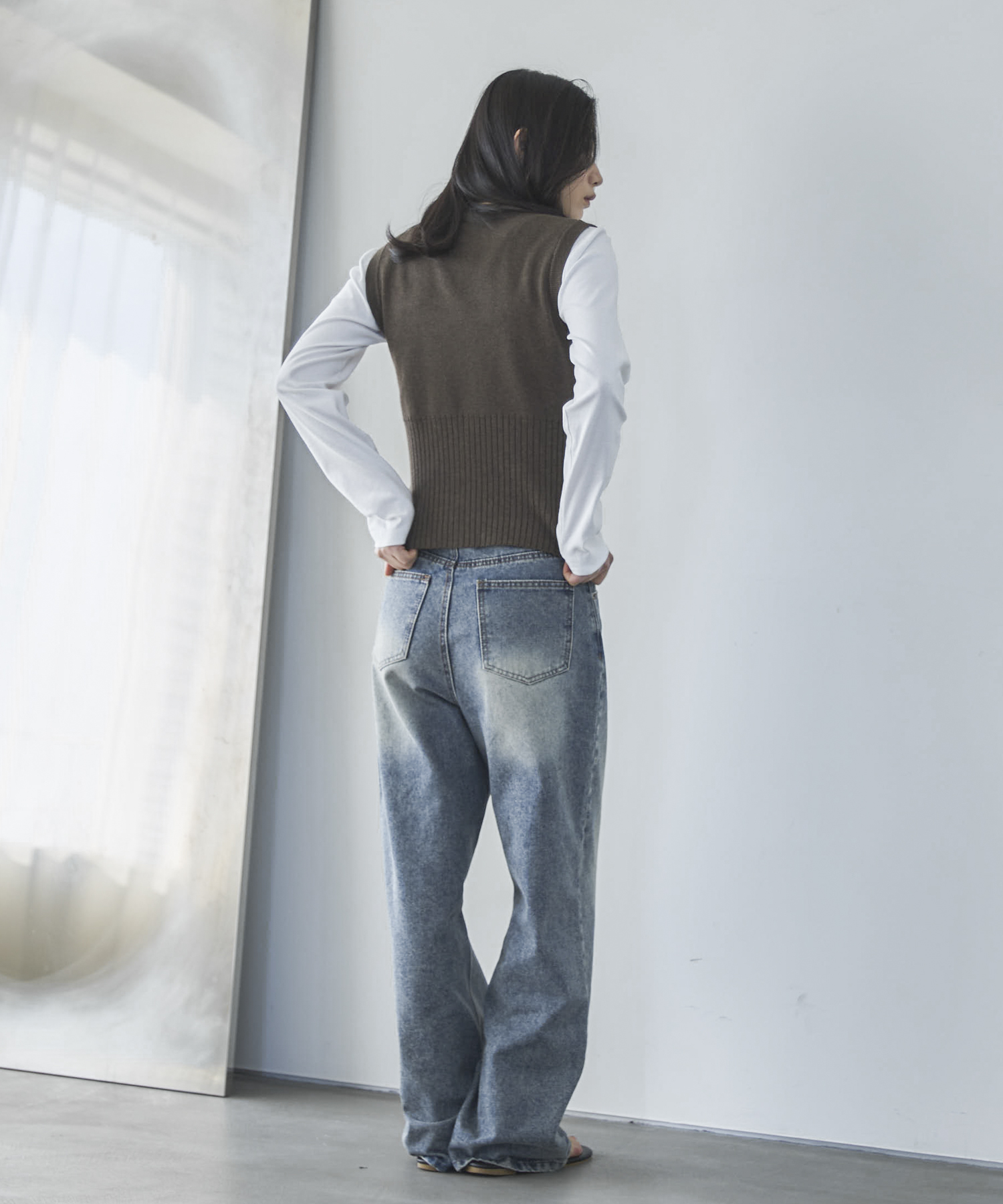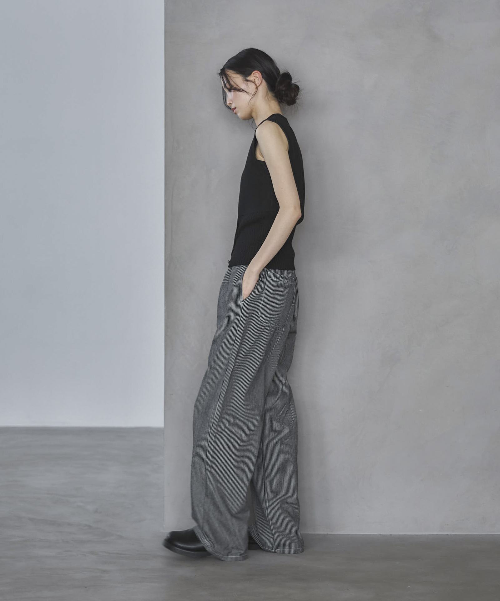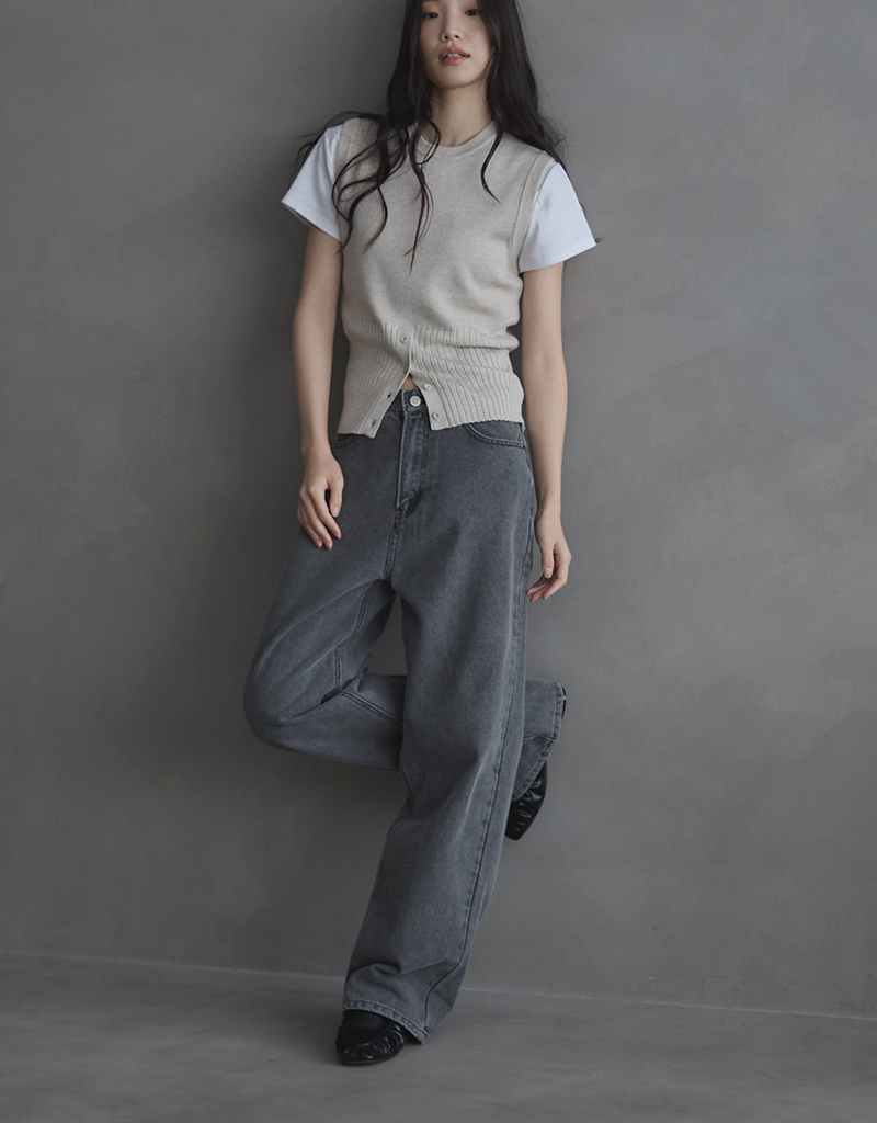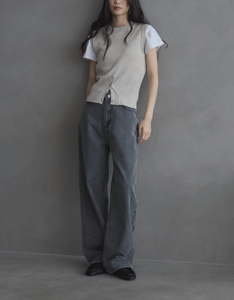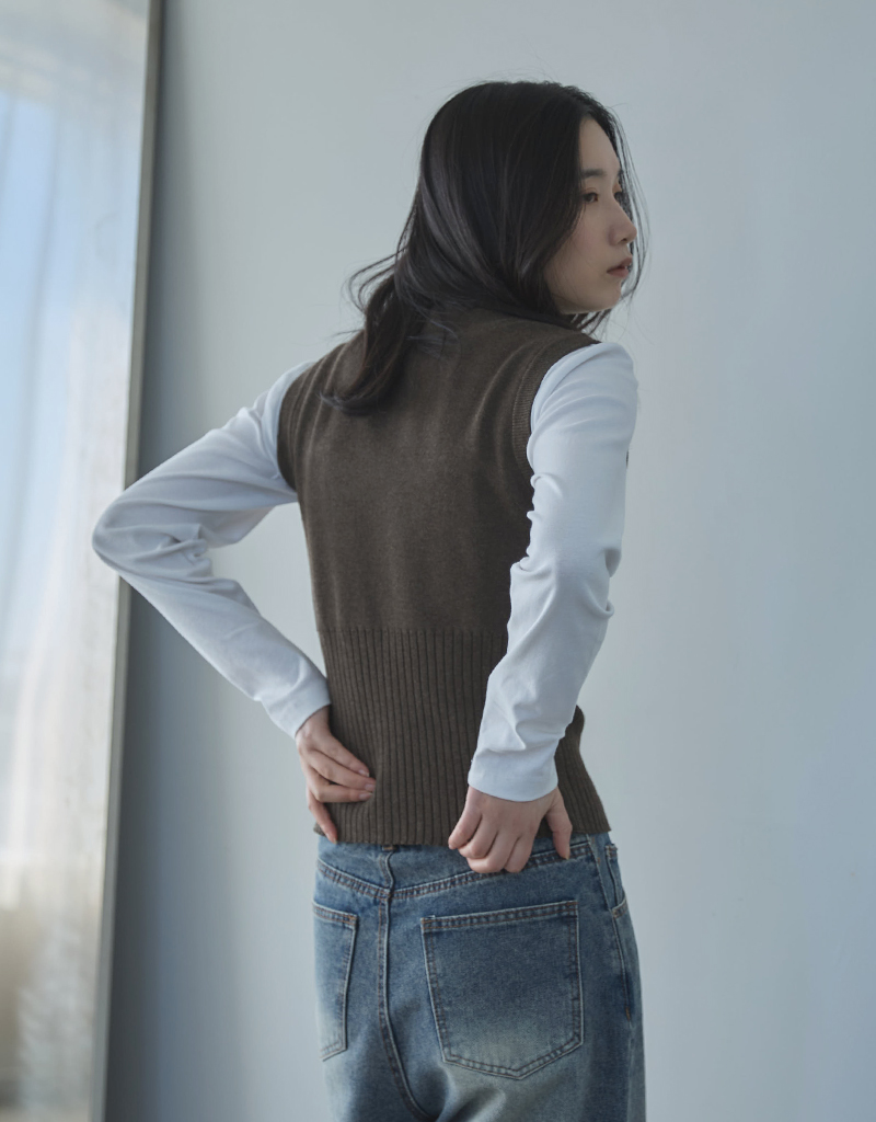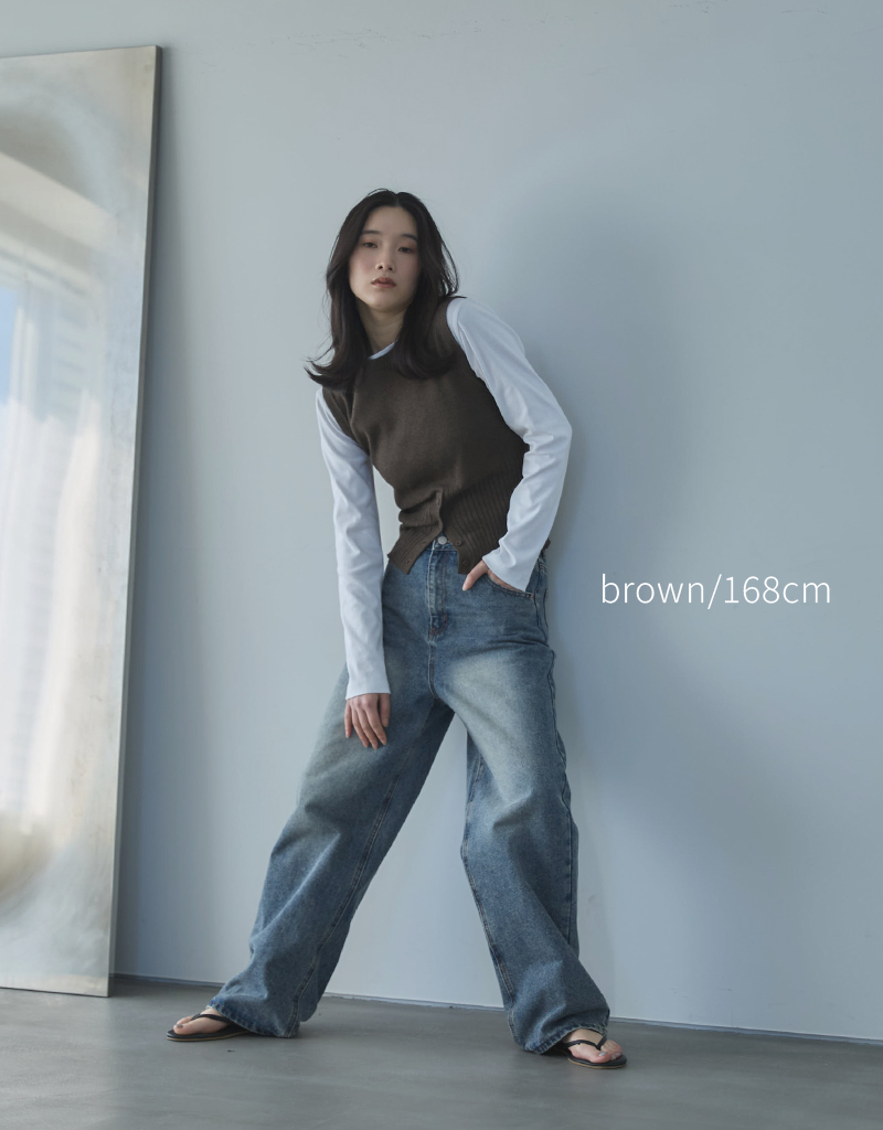 裾のボタンディティールで抜け感のある雰囲気を演出できるノースリーブニット。