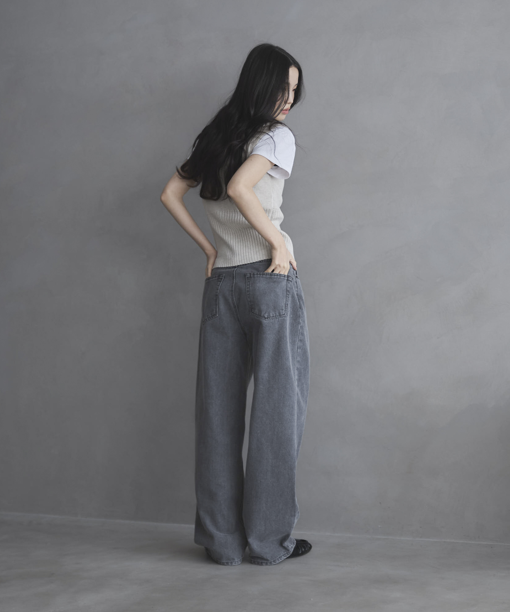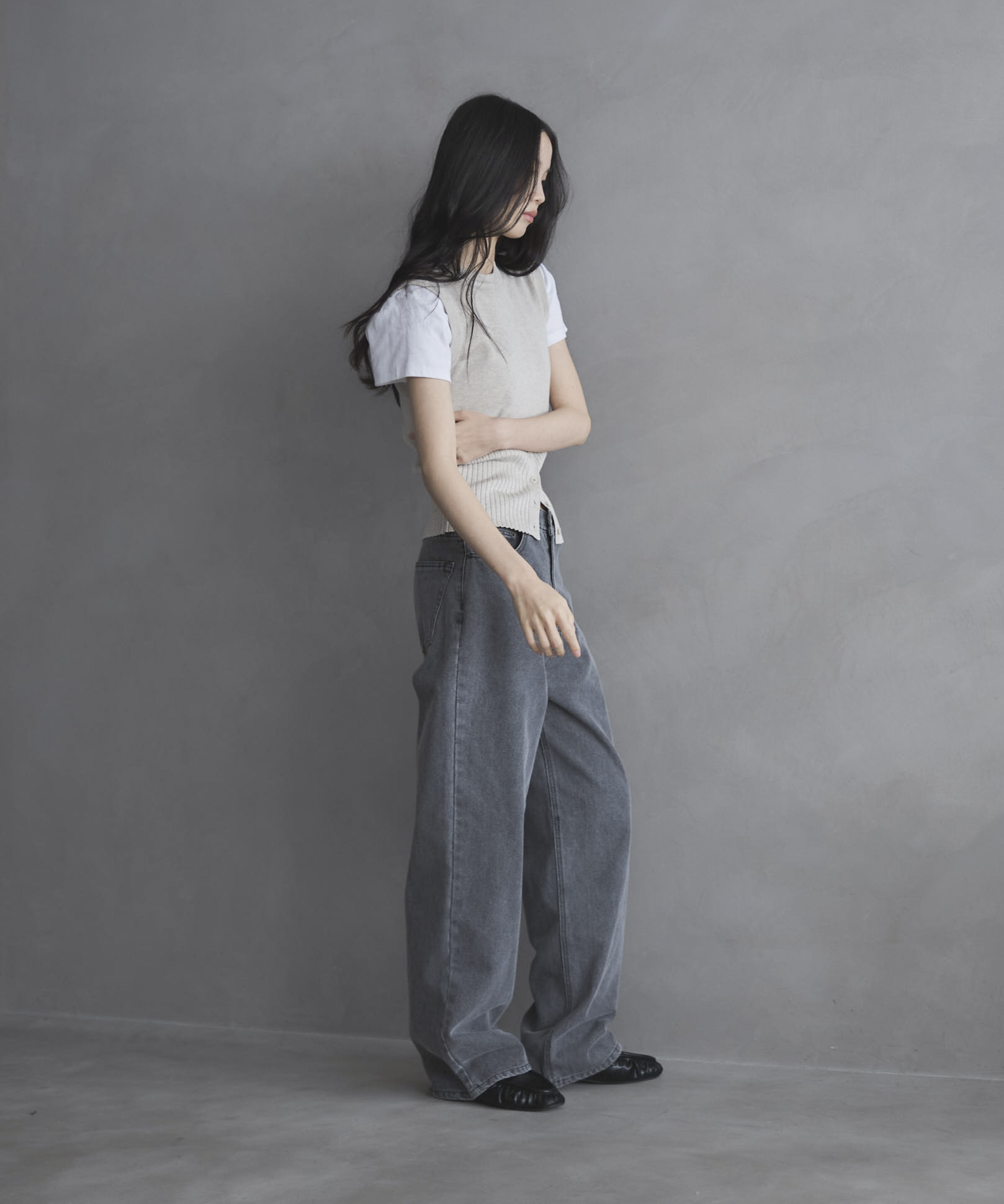 シンプルながらも身頃のスムースな部分とリブ部分のコントラストが一癖デザインポイント◎