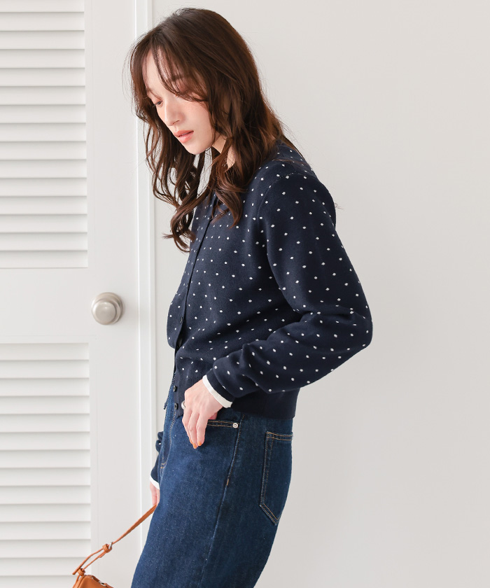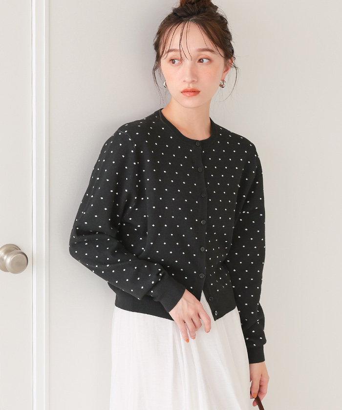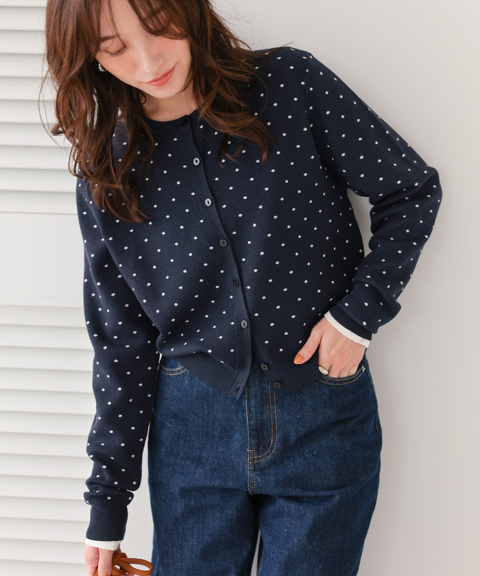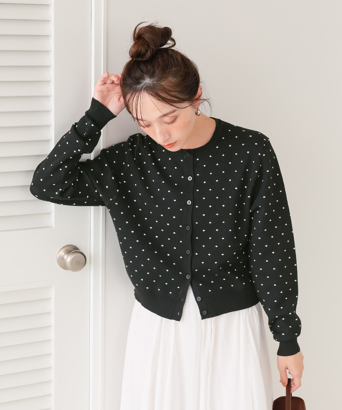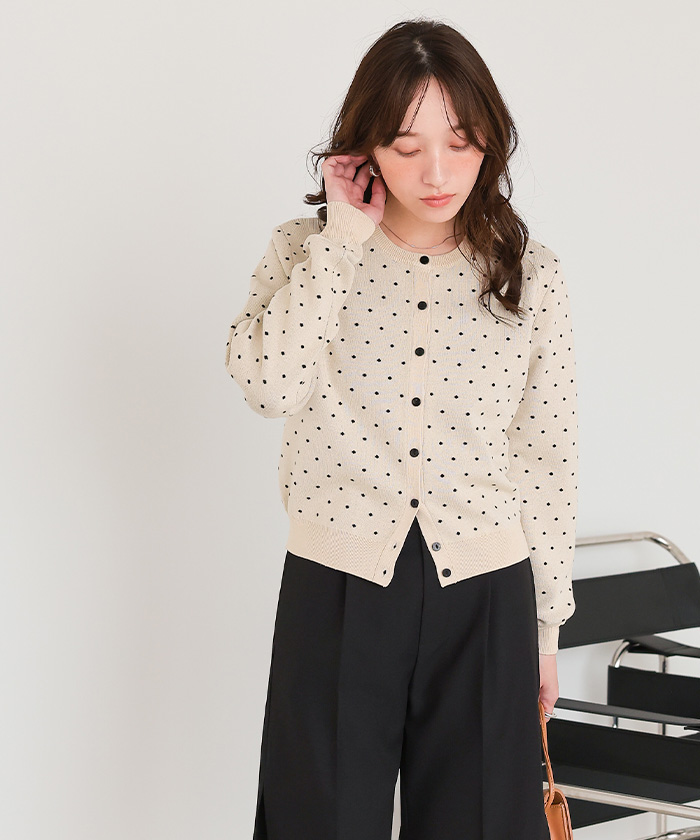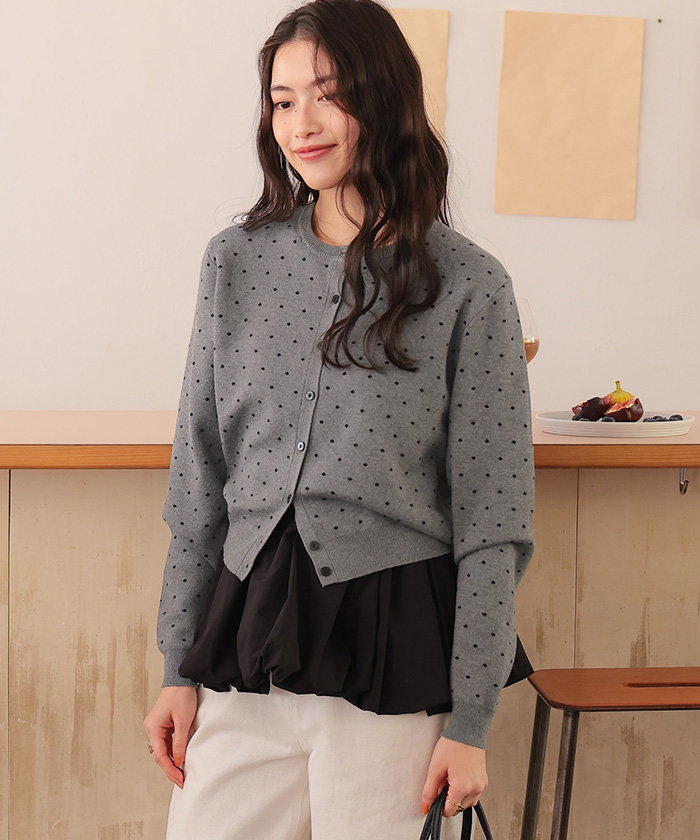 ・《甘すぎない“ドット柄”を、日常に》大人に似合うジャガードニットカーディガン