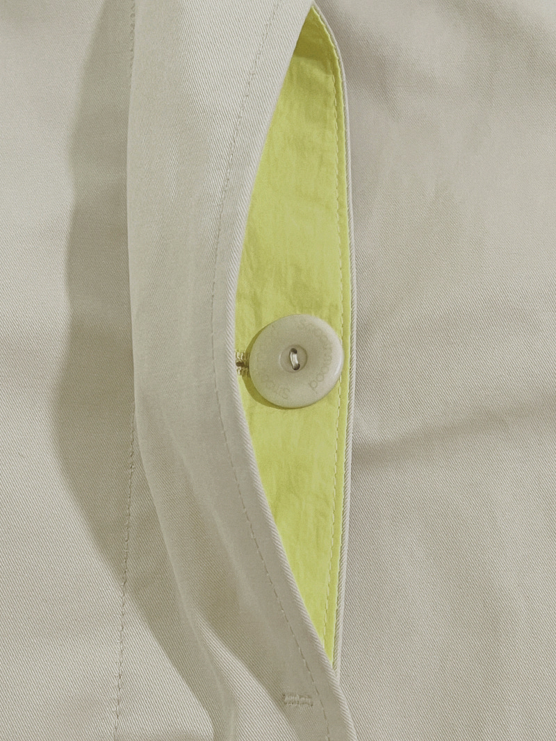 これはベージュのクーポルトレンチコートで、クラシックなトレンチコートをモダンな雰囲気で再解釈しています。リラックスしたフィット感とオーバーサイズサイズは、モダンでありながら自然な雰囲気を作り出しています。外套はコットン、ポリエステル、ナイロンのブレンドでできており、柔らかい質感としっかりとした適度な厚さです。肩のラインと尖った襟はレグレーンラインまで下り、Smoothmoodのロゴが刻まれたボタン付きの隠しプラケット、そして内側のアウターのバイアスパイピングが丁寧に仕上げられており、セクシーなアクセントを演出しています。ネオンイエローのカラースキームが新鮮なアクセントを生み出します。Coupolのトレンチコートであなただけのスタイルをたっぷり楽しめ。オーバーサイズフィット、隠しシングルボタンライン、隠しカラースキーム、スムームムードロゴボタン、コットン64%ポリエステル29%ナイロン7%