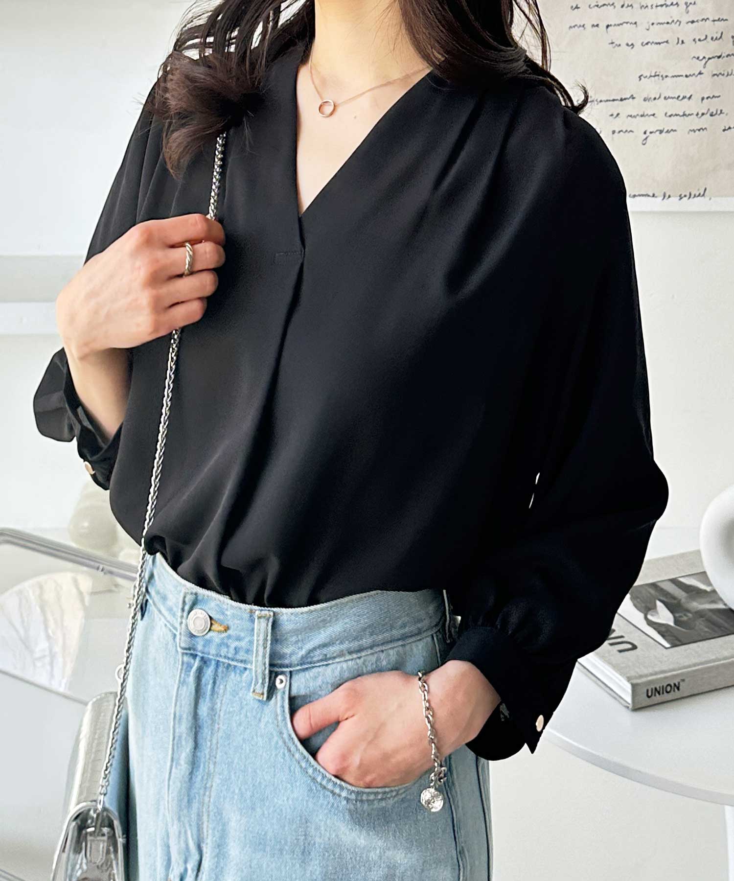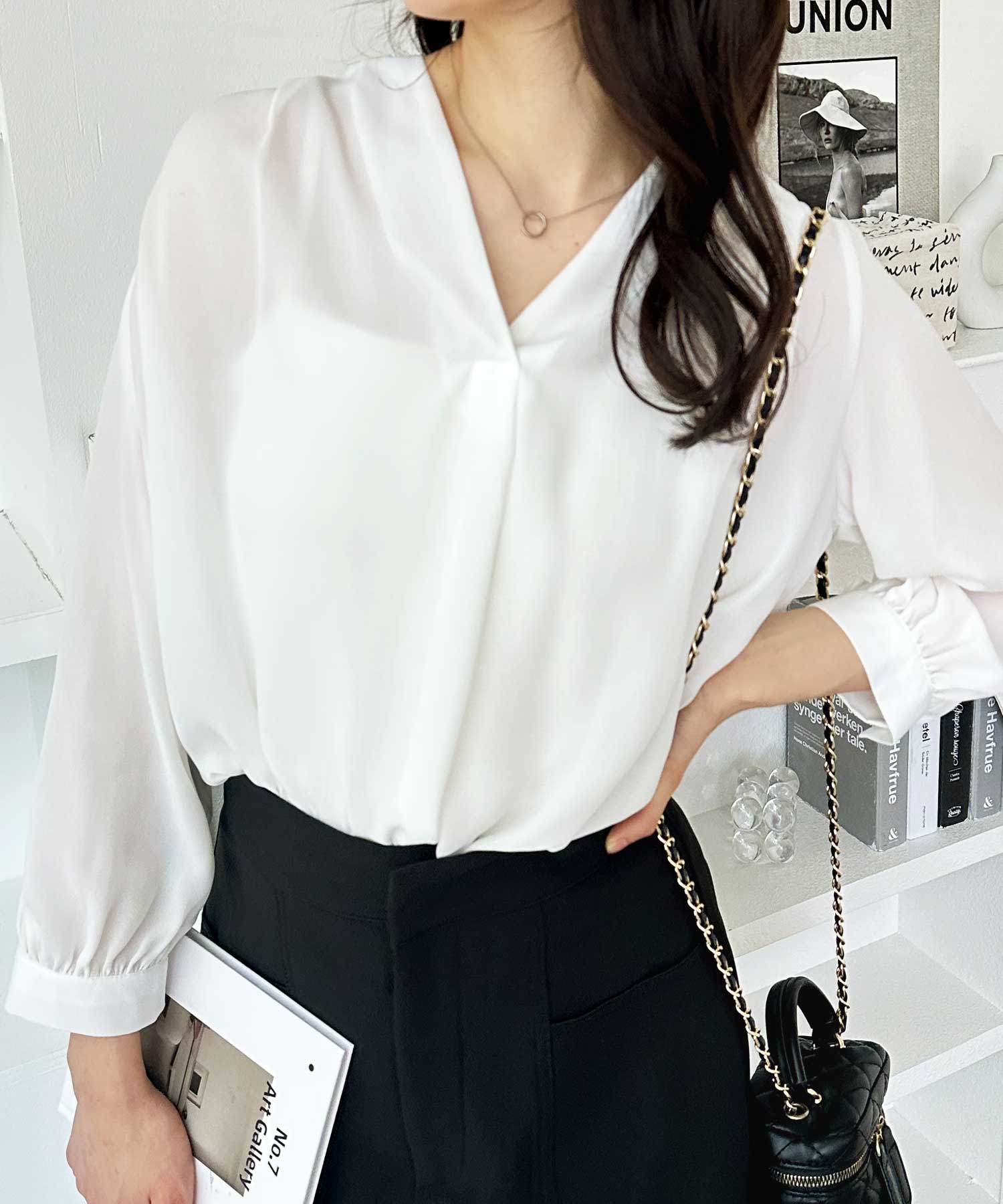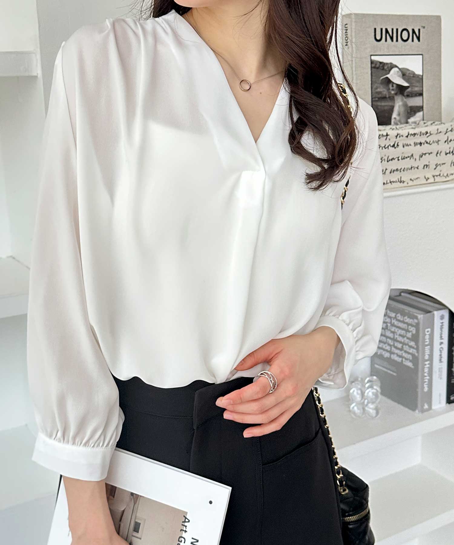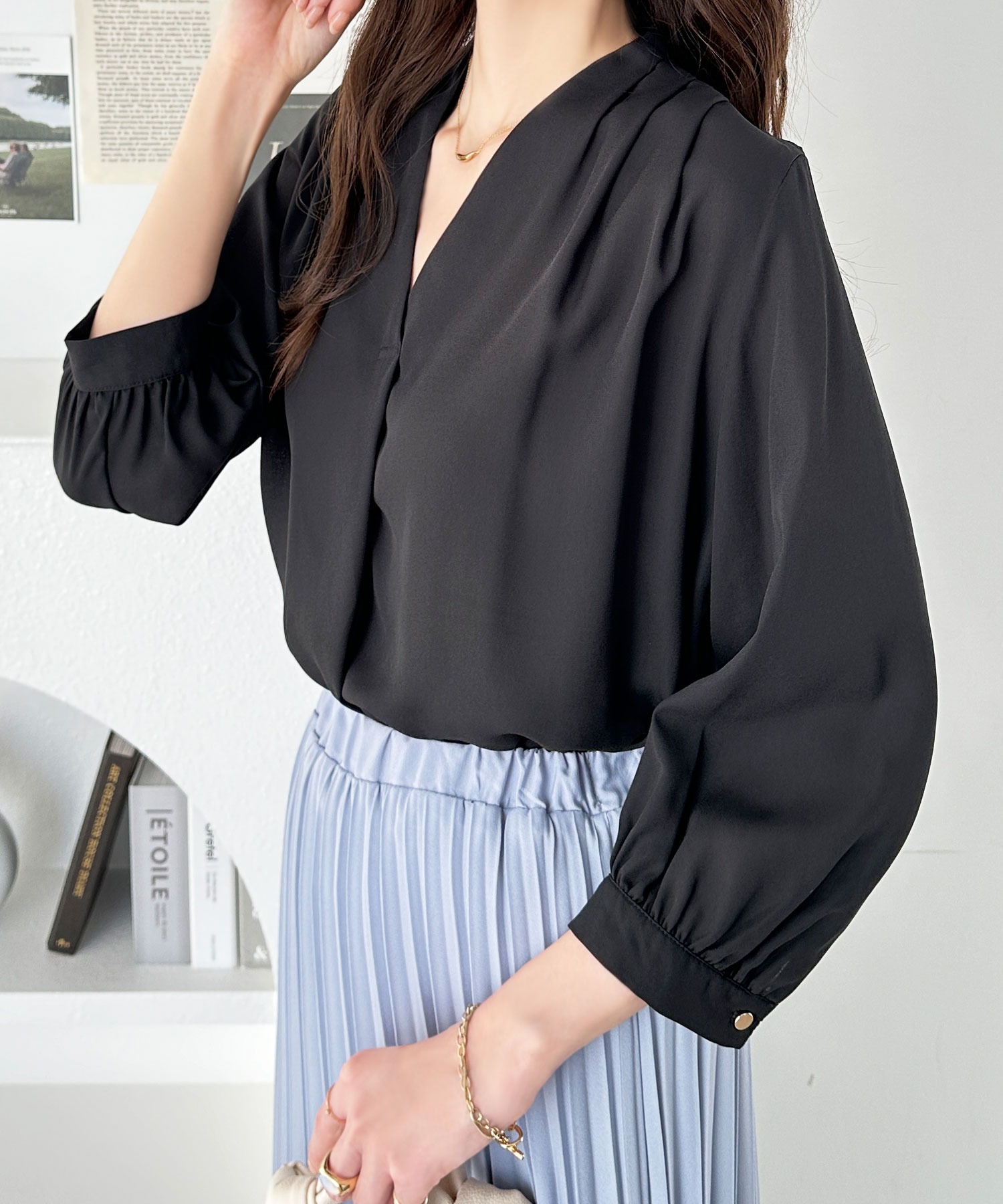 肩に入ったタックが美しいドレープで上品なシルエットのブラウス。