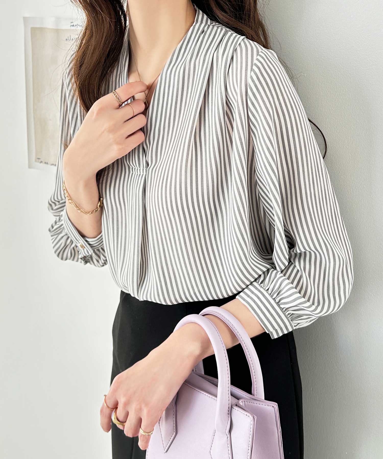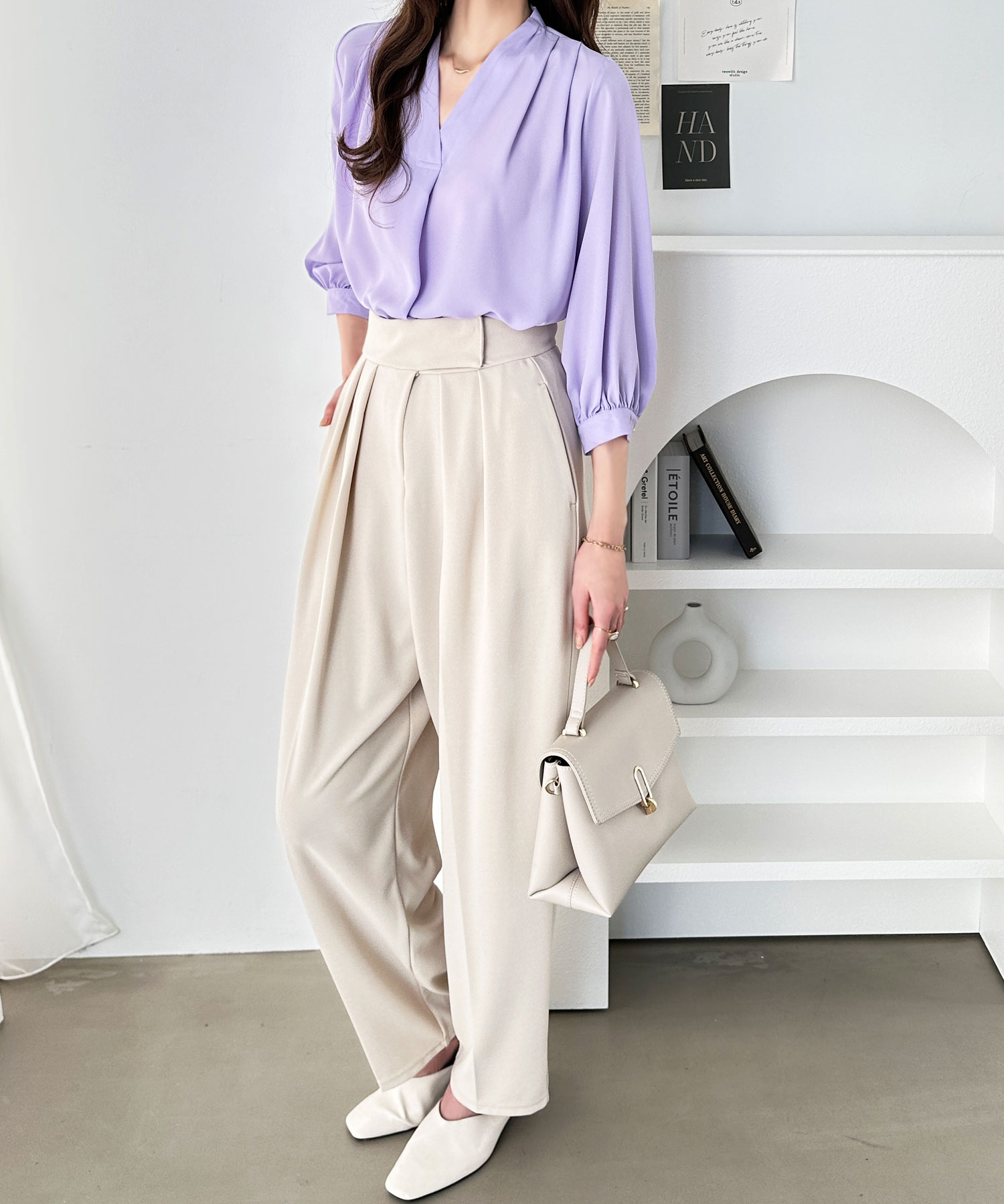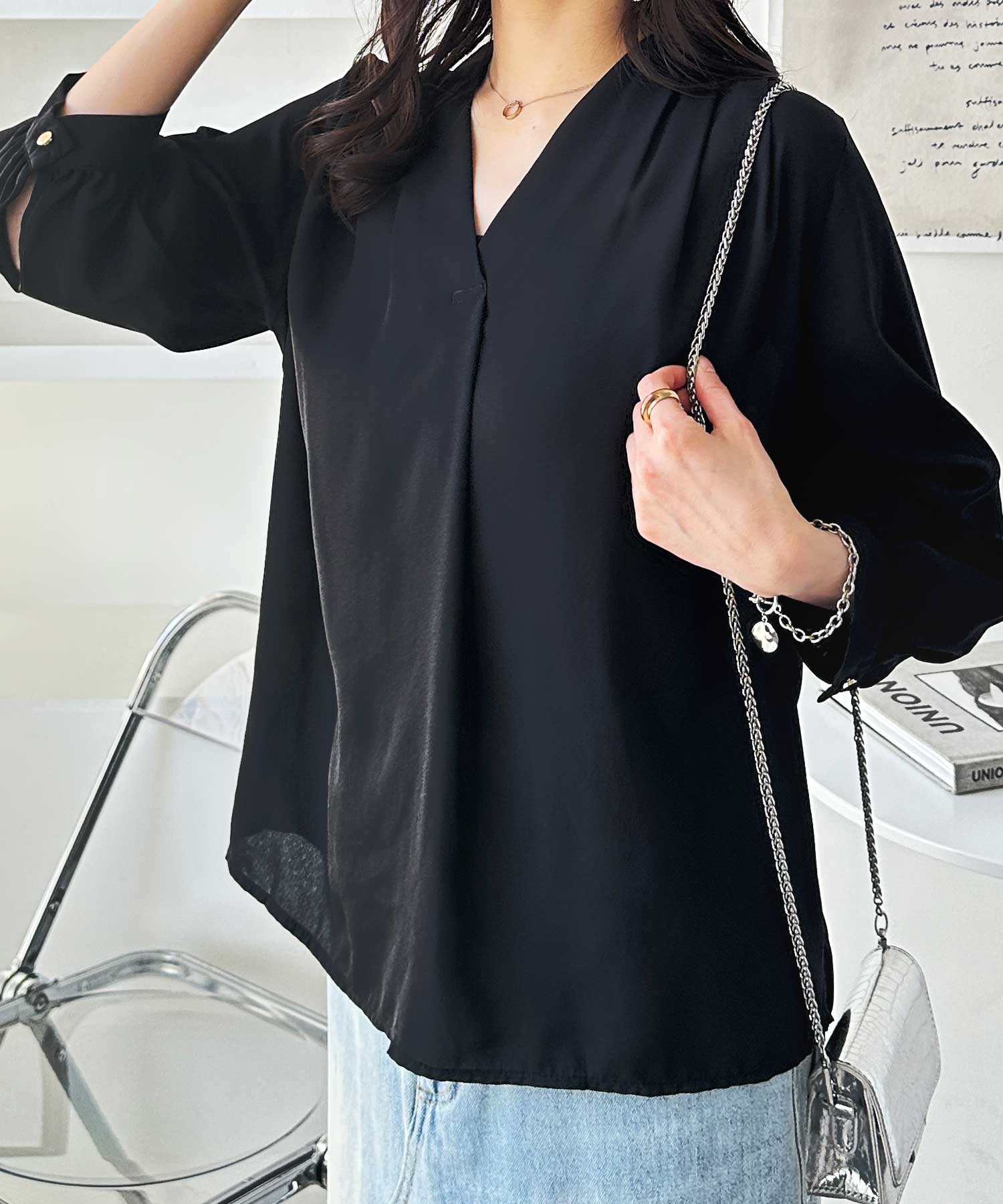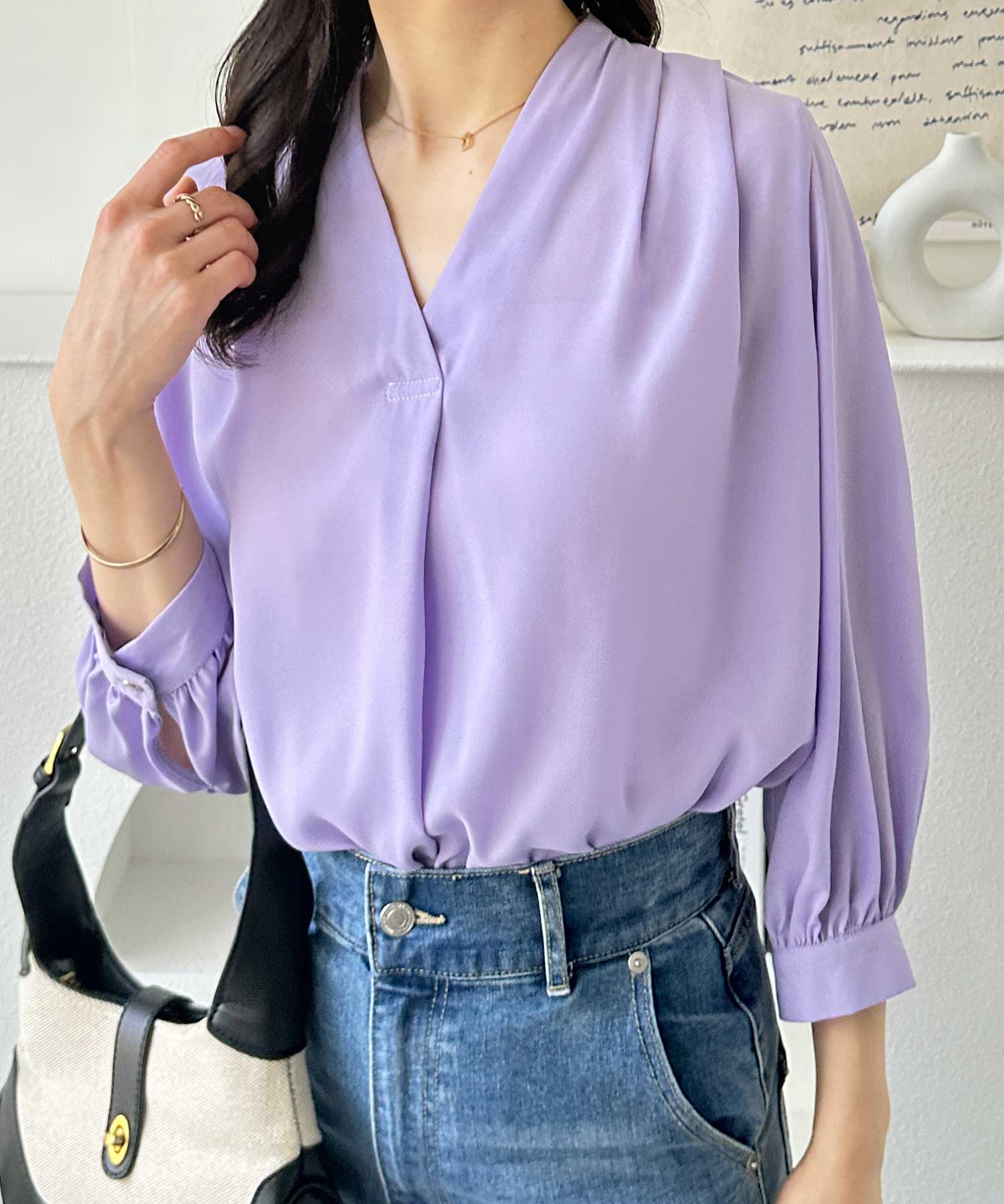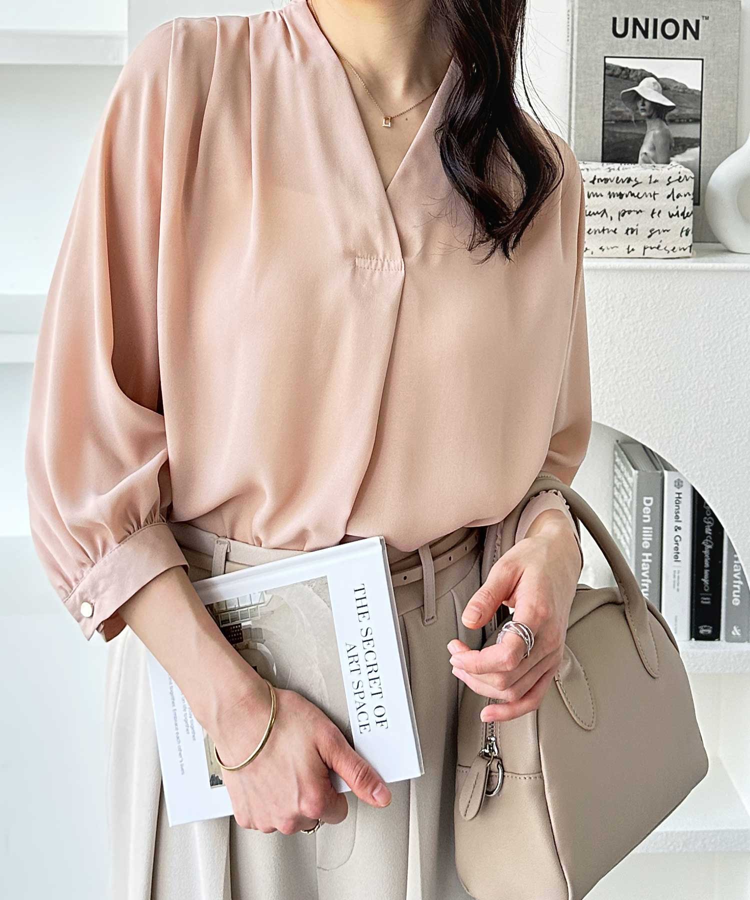 肩に入ったタックが美しいドレープで上品なシルエットのブラウス。