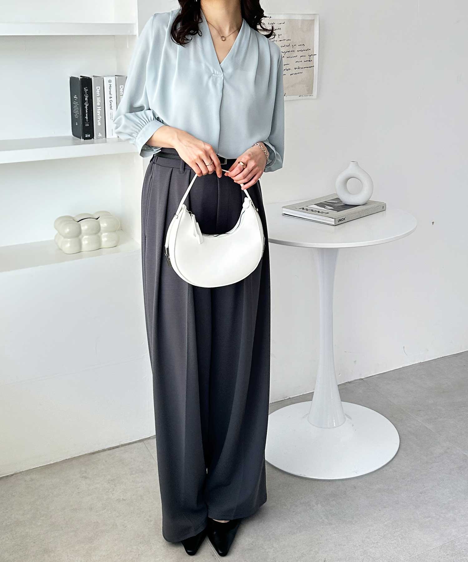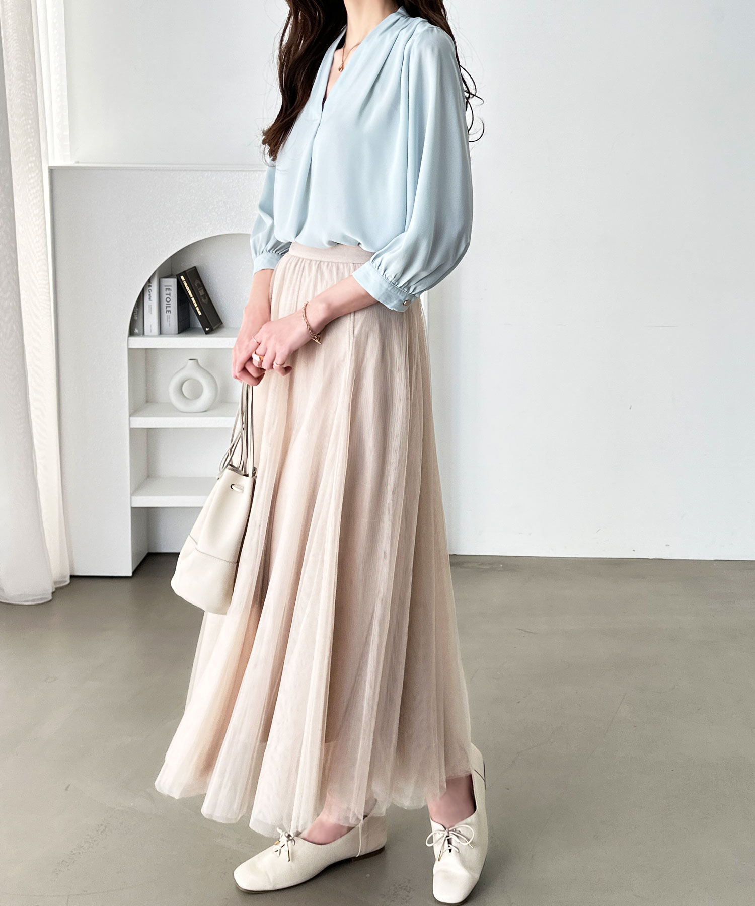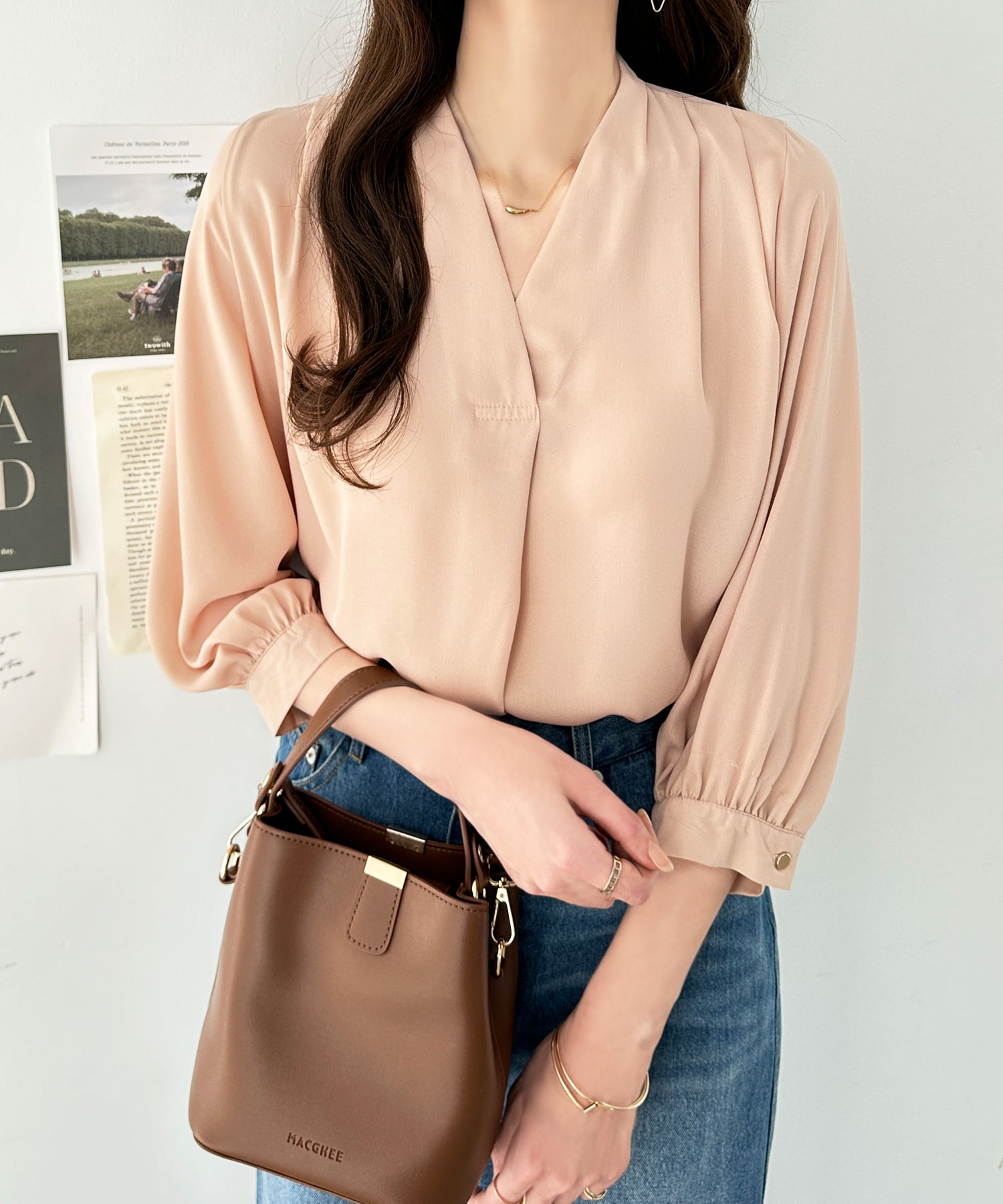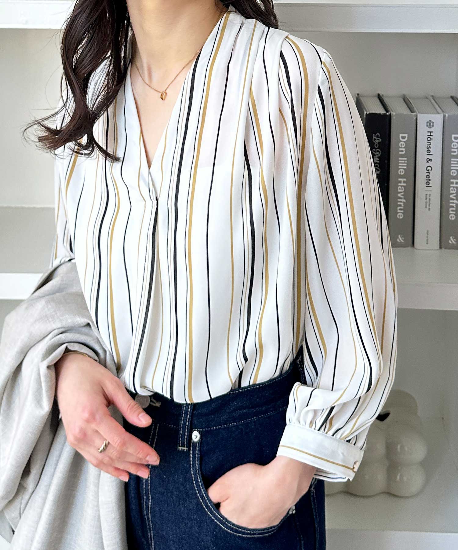 肩に入ったタックが美しいドレープで上品なシルエットのブラウス。